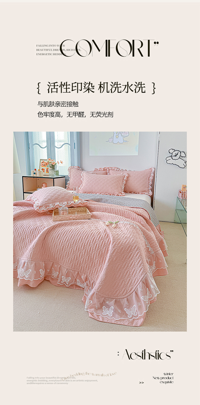(总)源舜家纺 2025新款牛奶婴儿绒米粒绣韩系花边床盖三件套,婴儿草绿,婴儿豆沙,婴儿粉,婴儿灰,婴儿灰蓝,婴儿蓝,婴儿深绿,婴儿紫