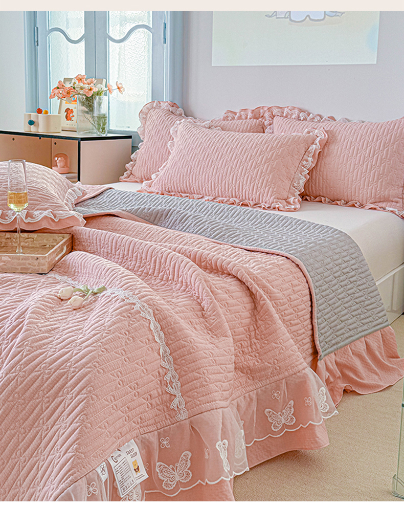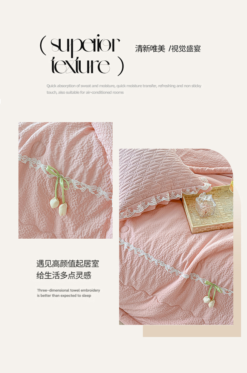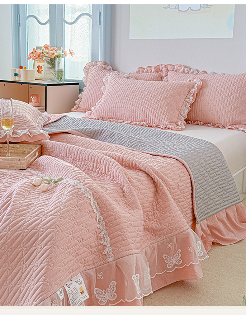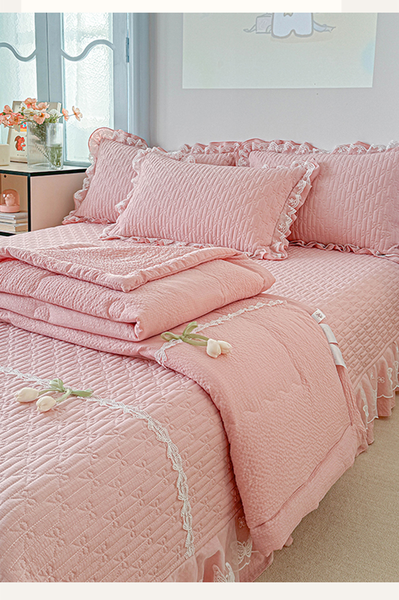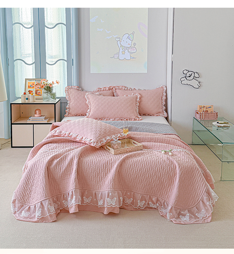 源舜家纺 2025新款郁金蝶香皱皱纱床盖夏被四件套 粉色