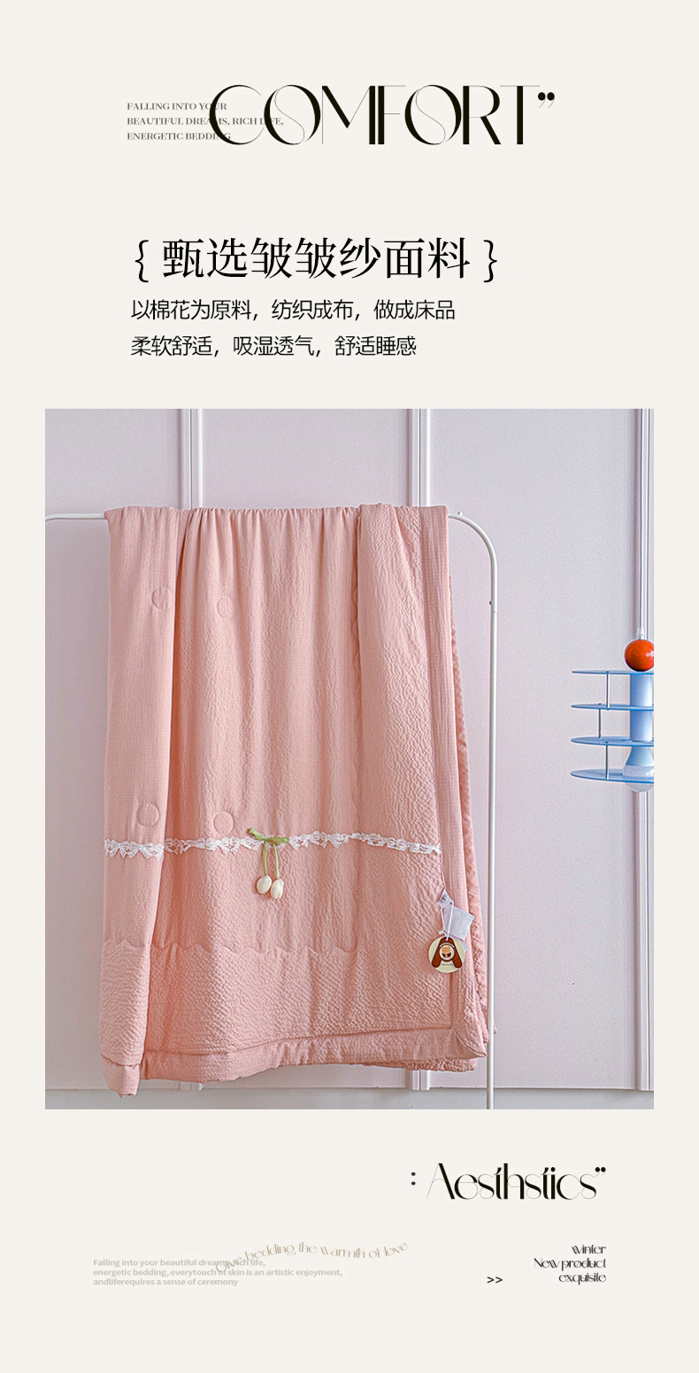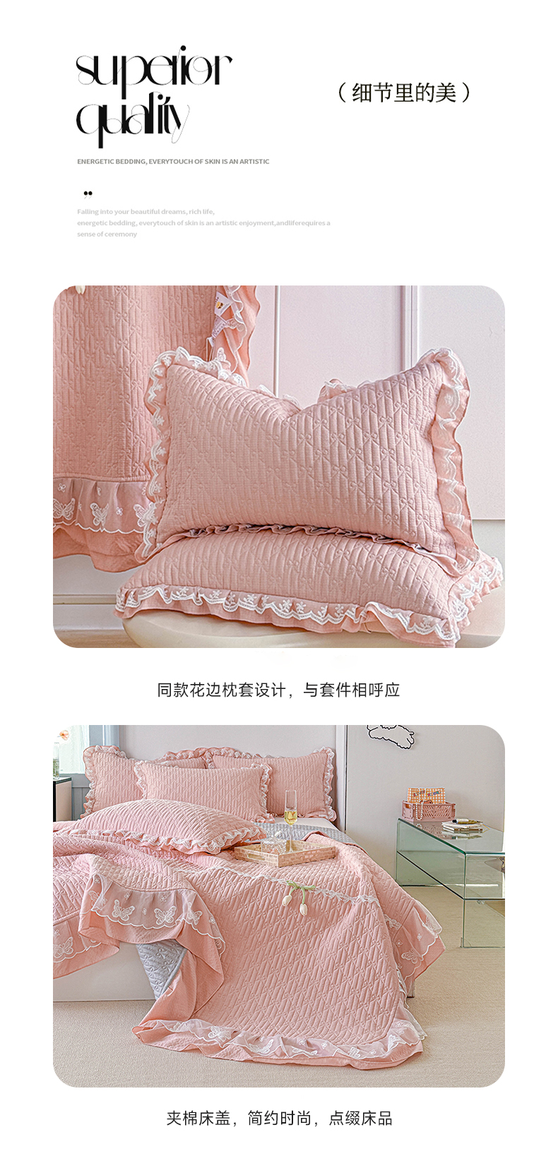 商品名称:源舜家纺 2025新款郁金蝶香皱皱纱床盖夏被四件套 粉色