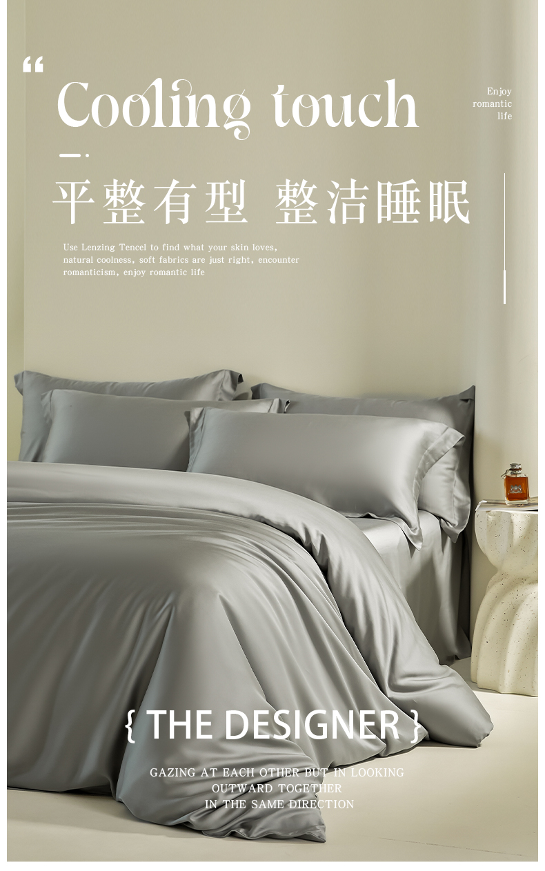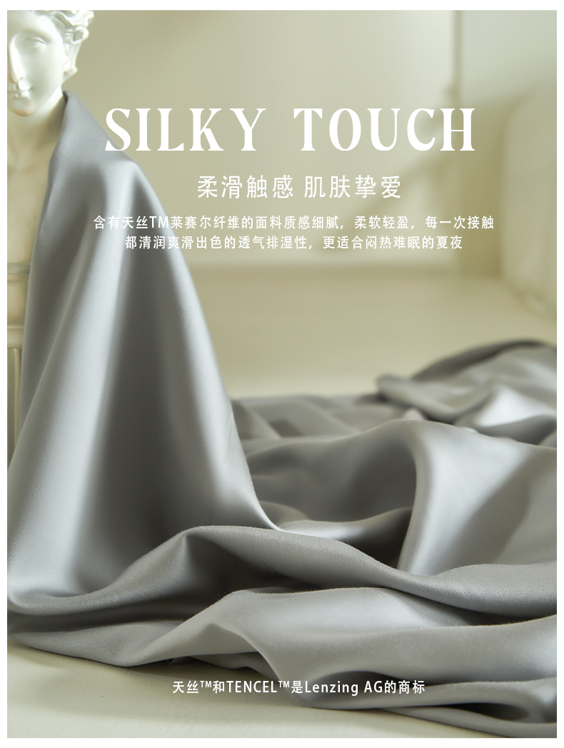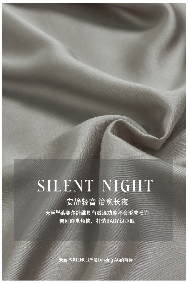 商品名称:618家纺 2025新款60S100支兰精天丝单品-枕套 天丝雅士灰
