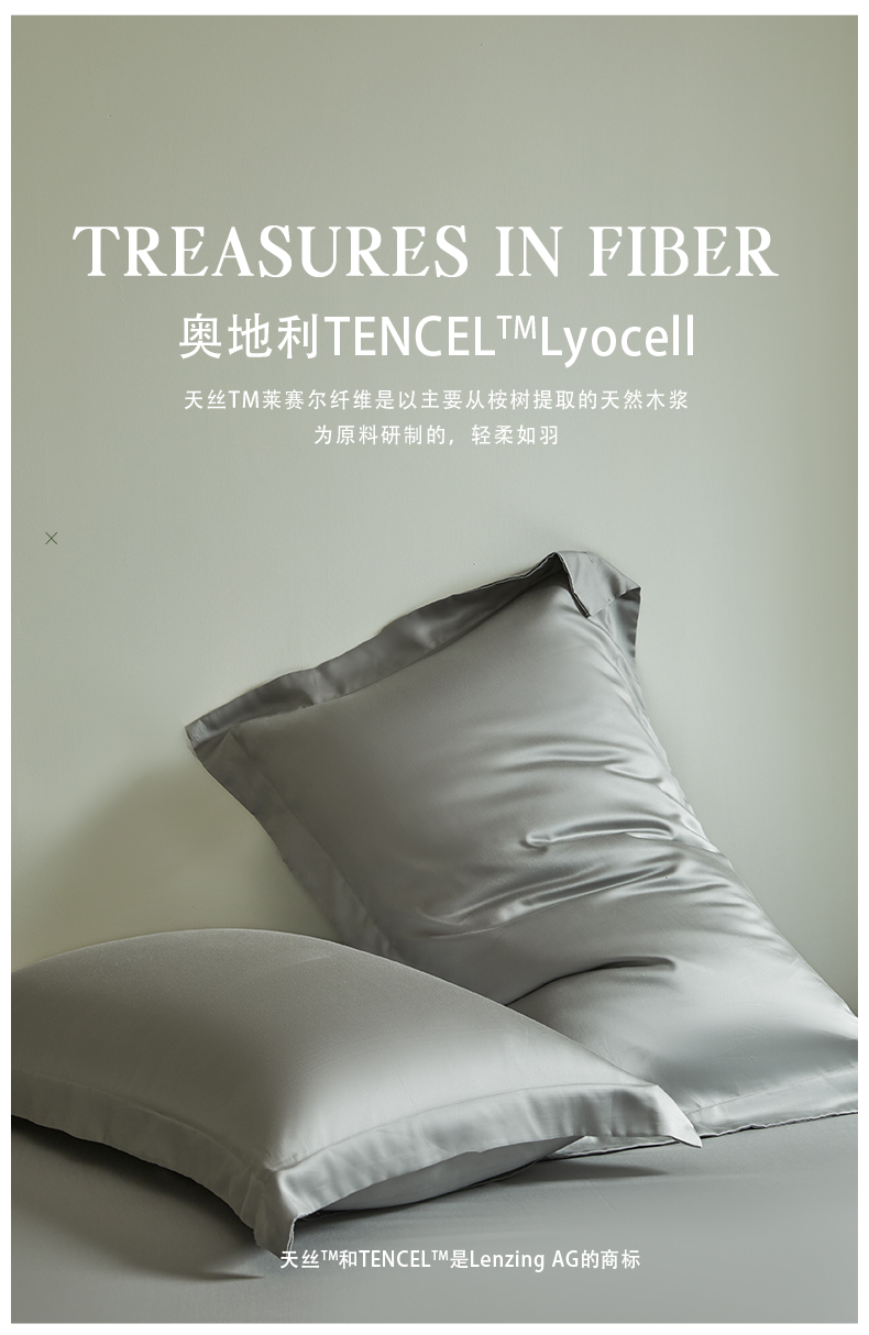 618家纺 2025新款60S100支兰精天丝单品-枕套 天丝雅士灰