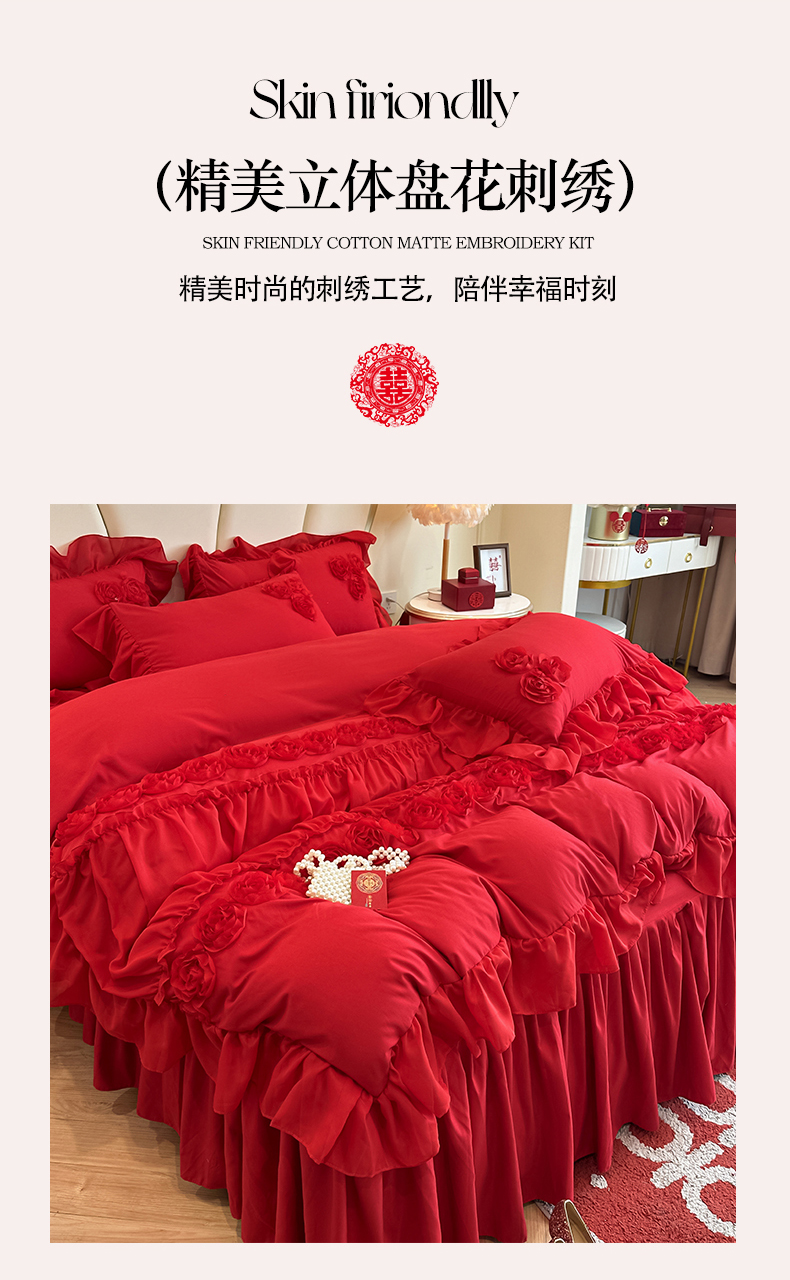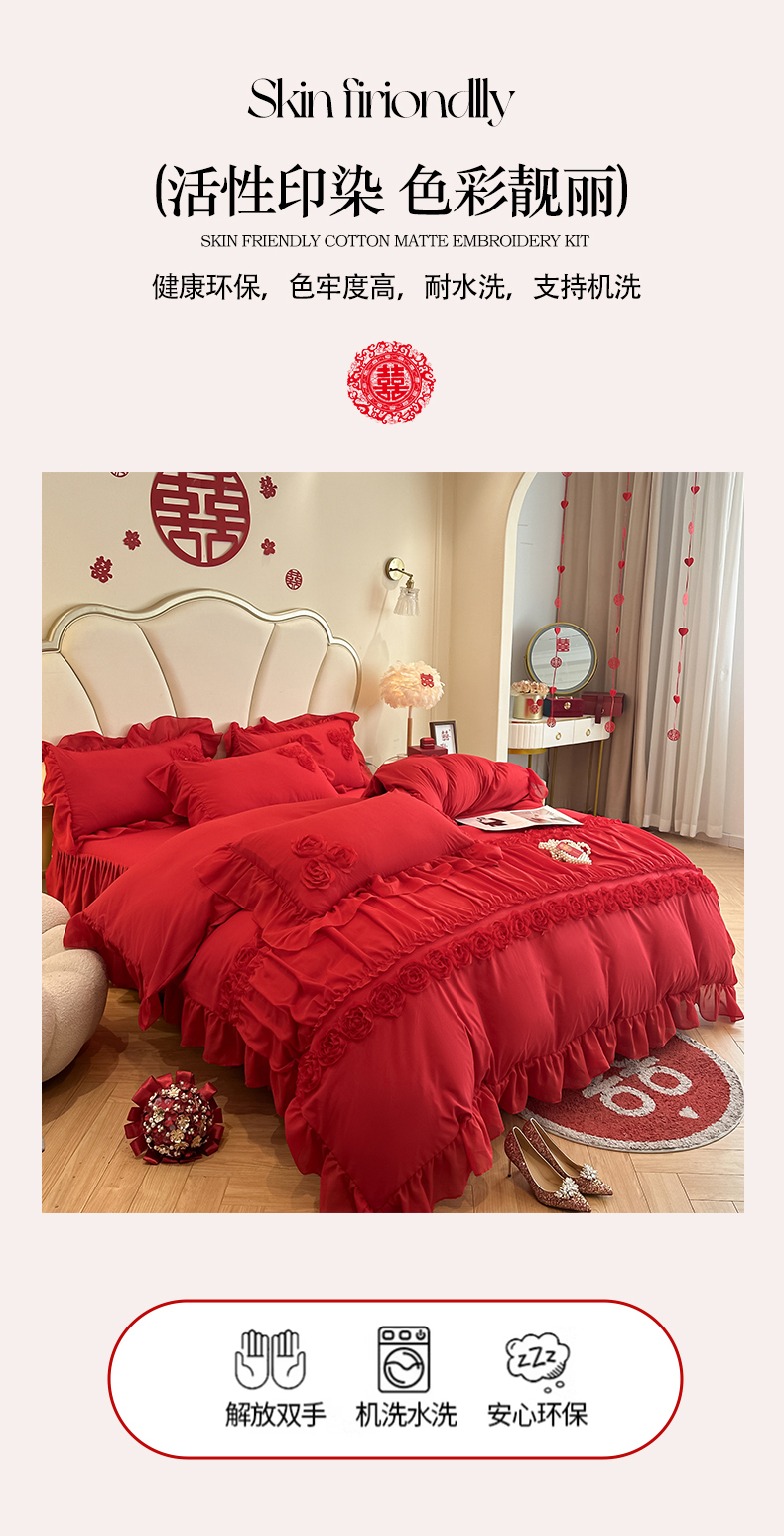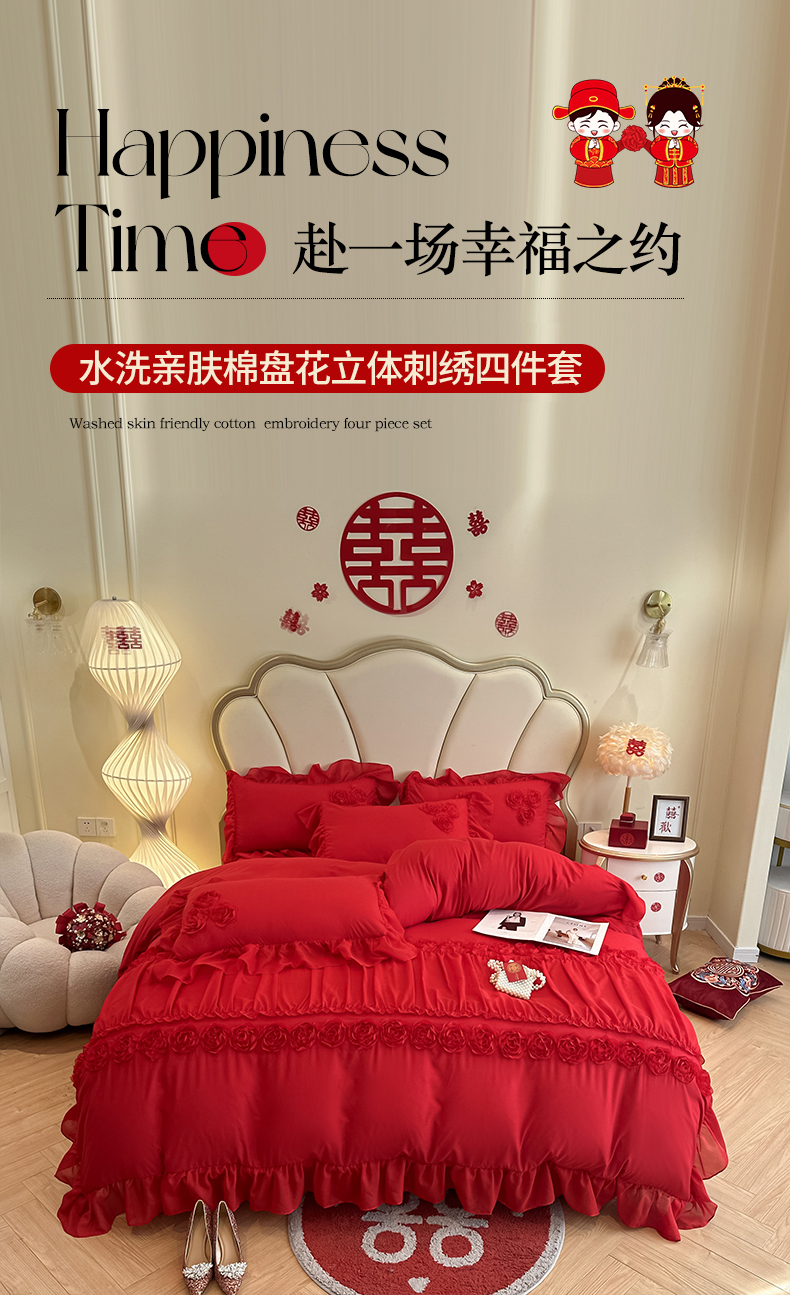 当前位置: 91家纺网 > 商品网购 > 床品套件 > 四件套 > 普通磨毛四件套 > 富盛家纺2025新款婚庆亲肤棉磨毛刺绣四件套 喜庆—甜蜜蜜