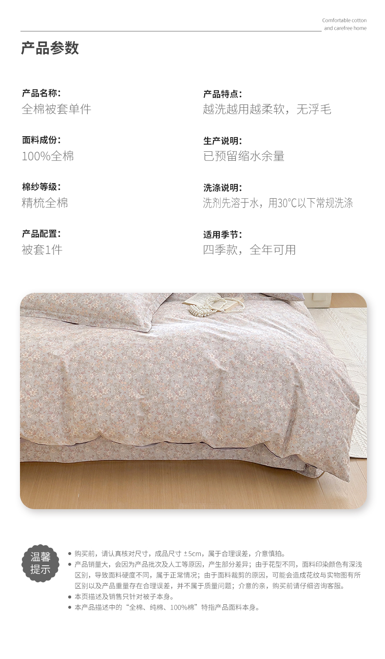 商品名称:元元被芯 2025新款40支13372全棉印花全棉被套 茉莉