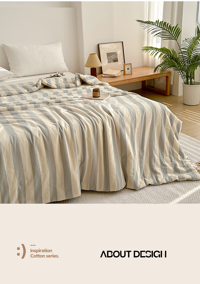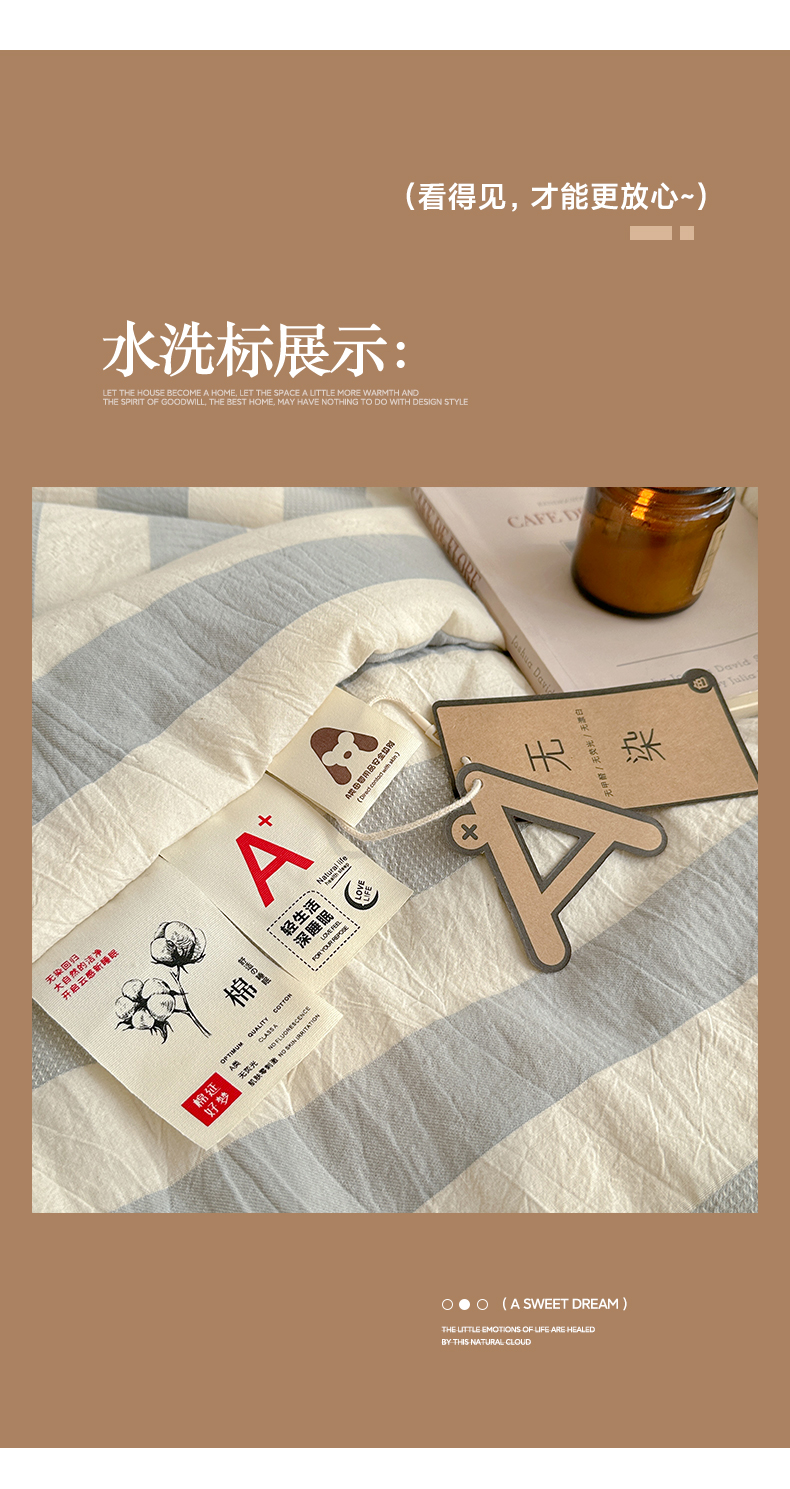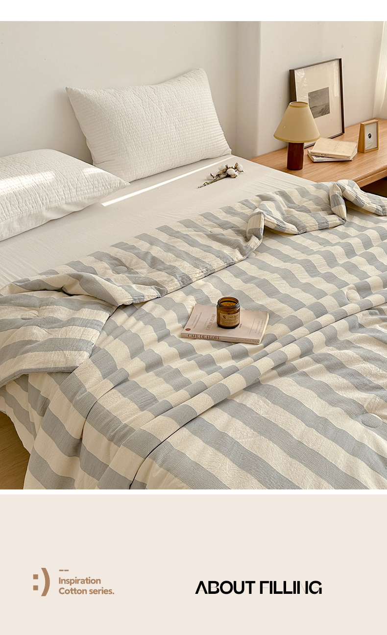 心悦家纺 2025新款无印良品风100%全棉A类色织水洗条纹原棉大豆夏被春秋被冬被 原棉条纹-水蓝