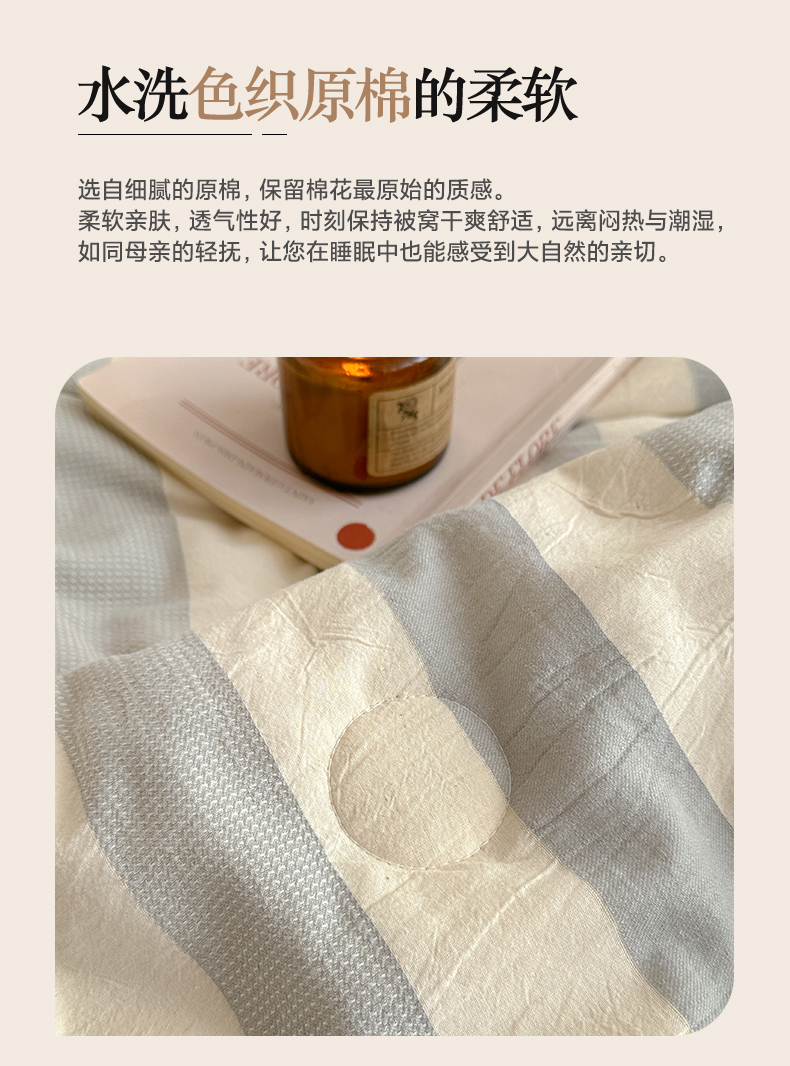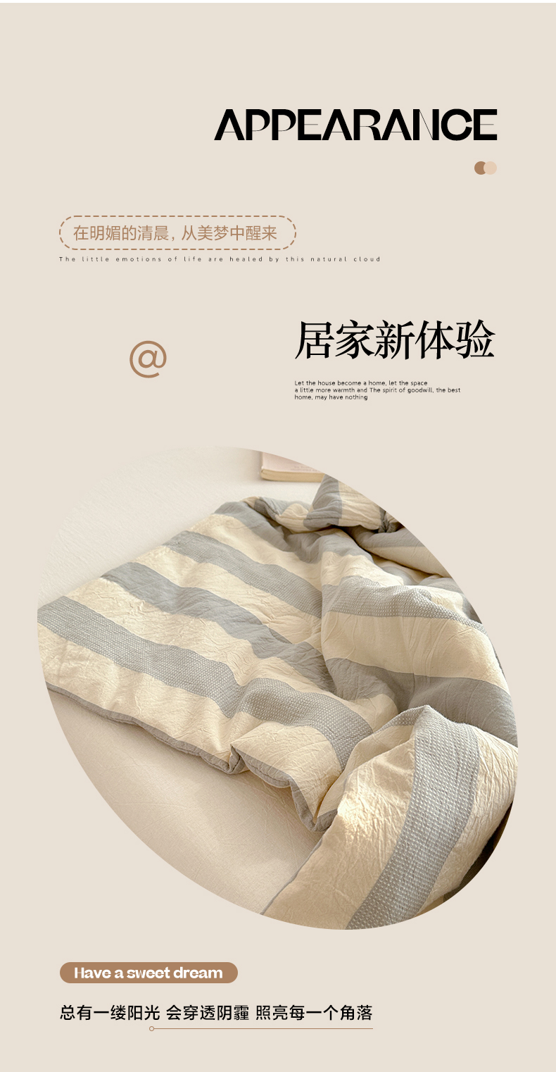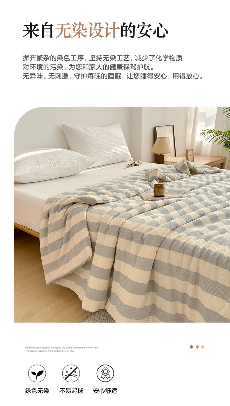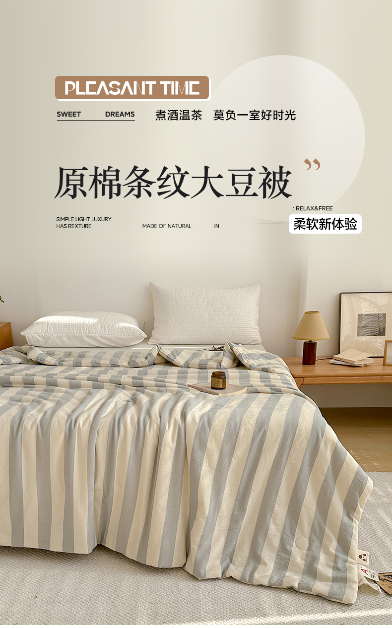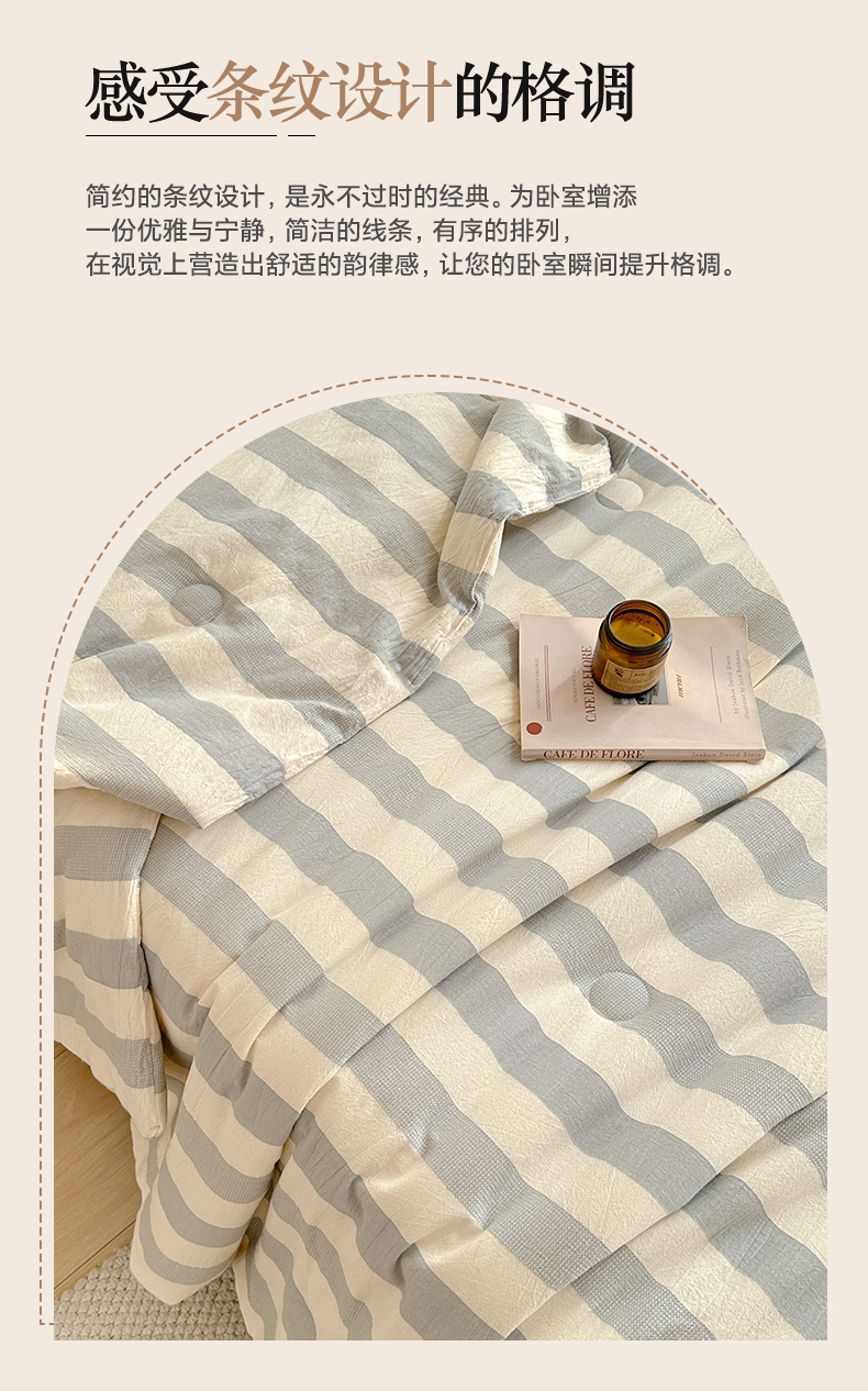 当前位置: 91家纺网 > 商品网购 > 被子 > 夏被 > 心悦家纺 2025新款无印良品风100%全棉A类色织水洗条纹原棉大豆夏被春秋被冬被 原棉条纹-水蓝