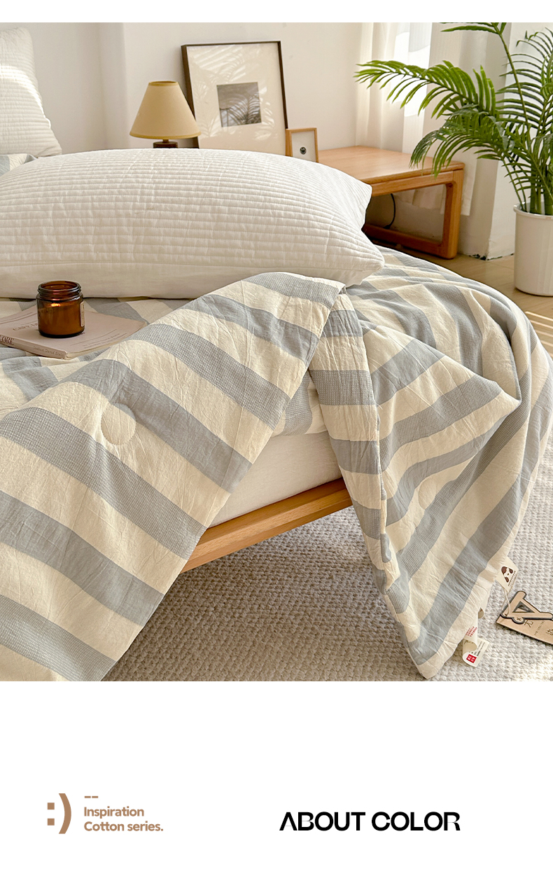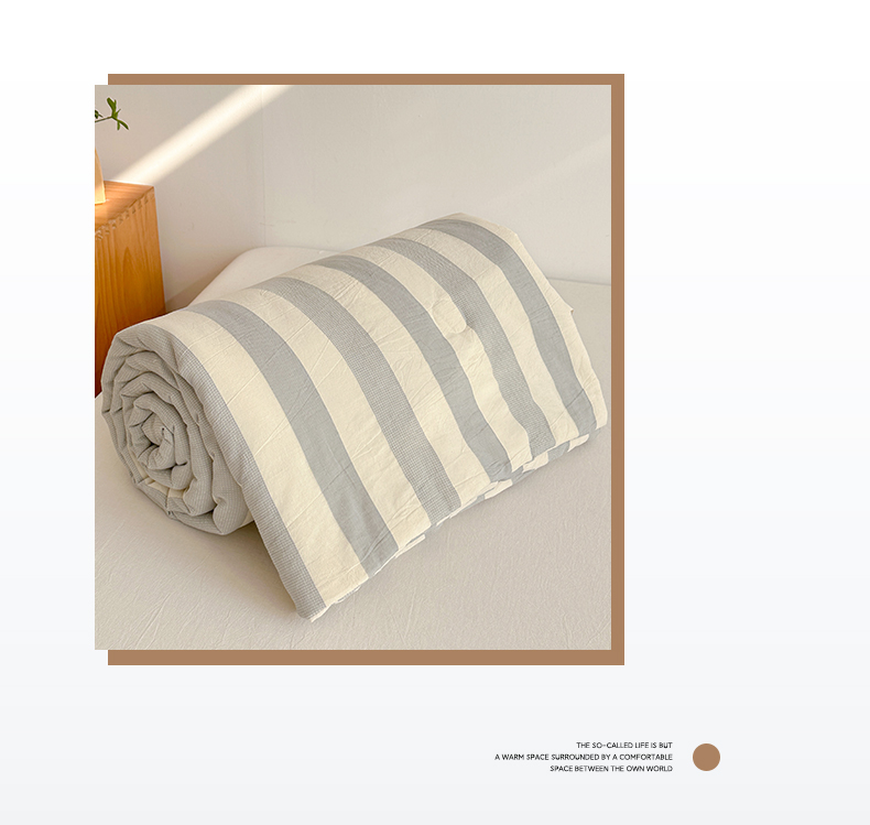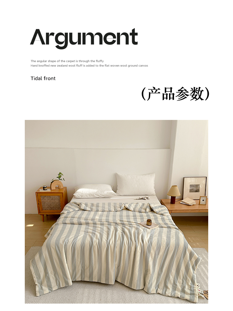 • 91家纺网 家纺一手货源 找家纺 心悦家纺  2025新款无印良品风100%全棉A类色织水洗条纹原棉大豆夏被春秋被冬被 原棉条纹-水蓝