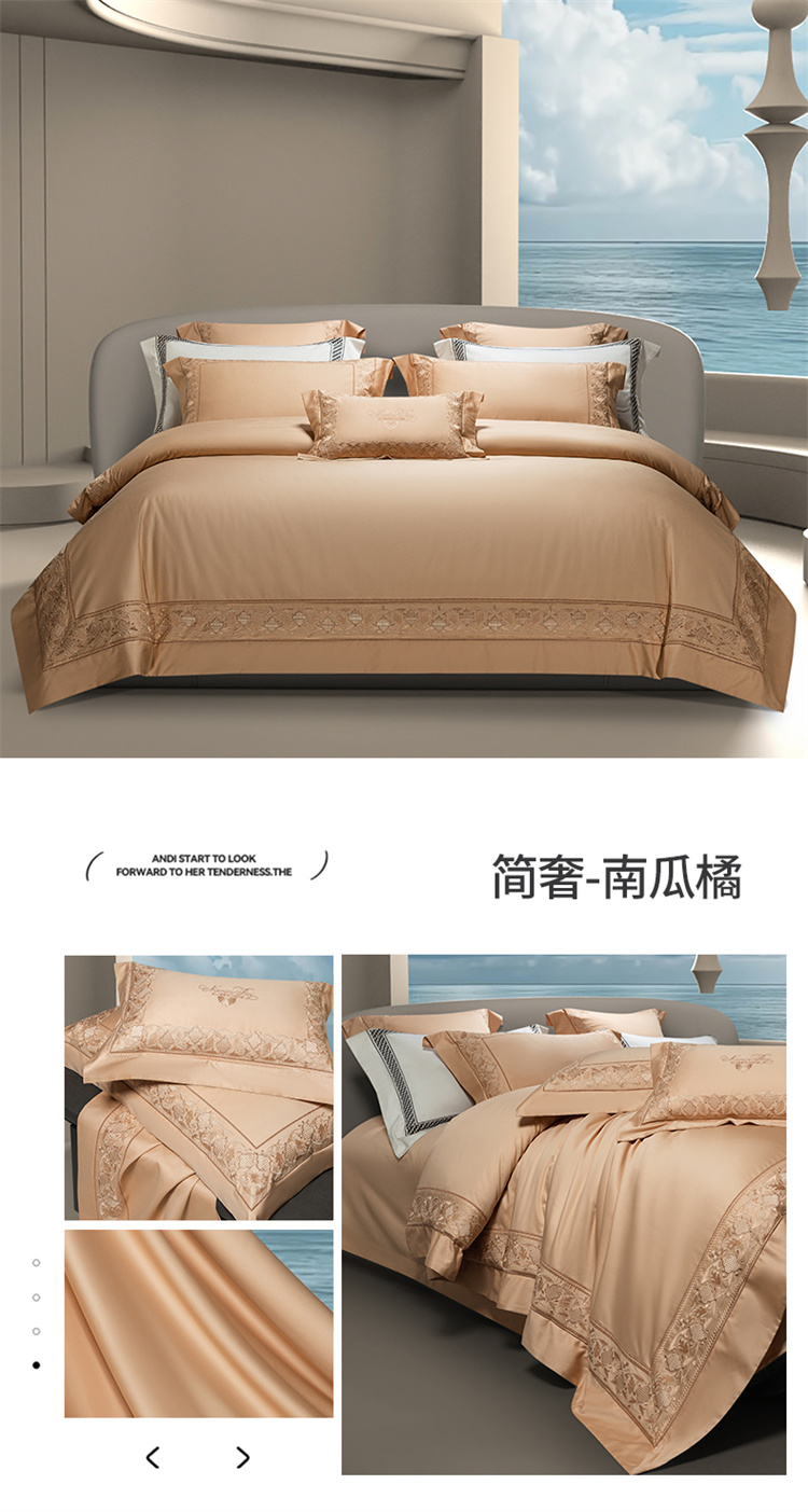 商品名称:高大尚婚庆馆 2025新款长绒棉四件套-简奢 简奢-南瓜橘