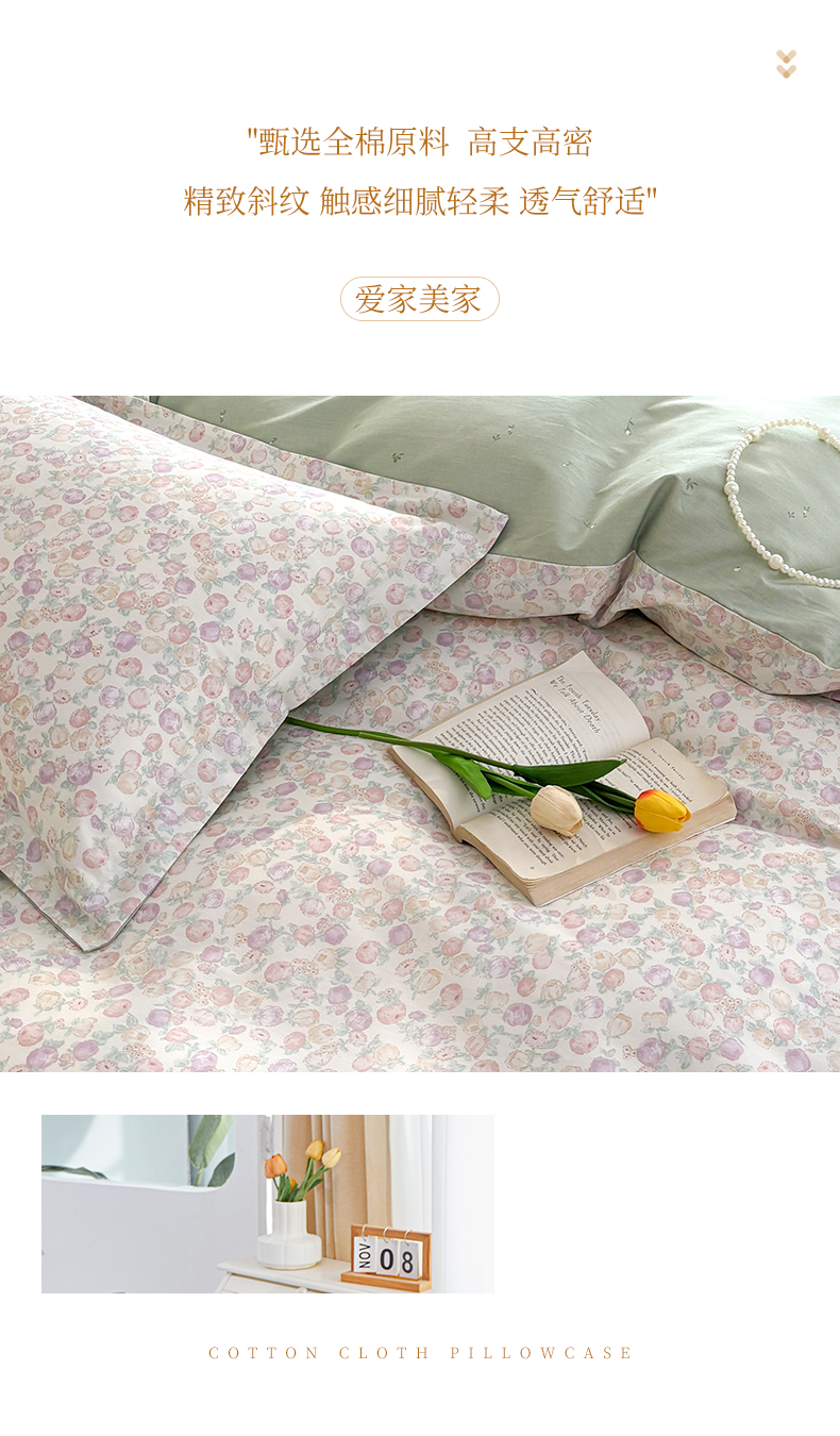 元元被芯 2025新款40支13372全棉印花全棉枕套 蔓羽