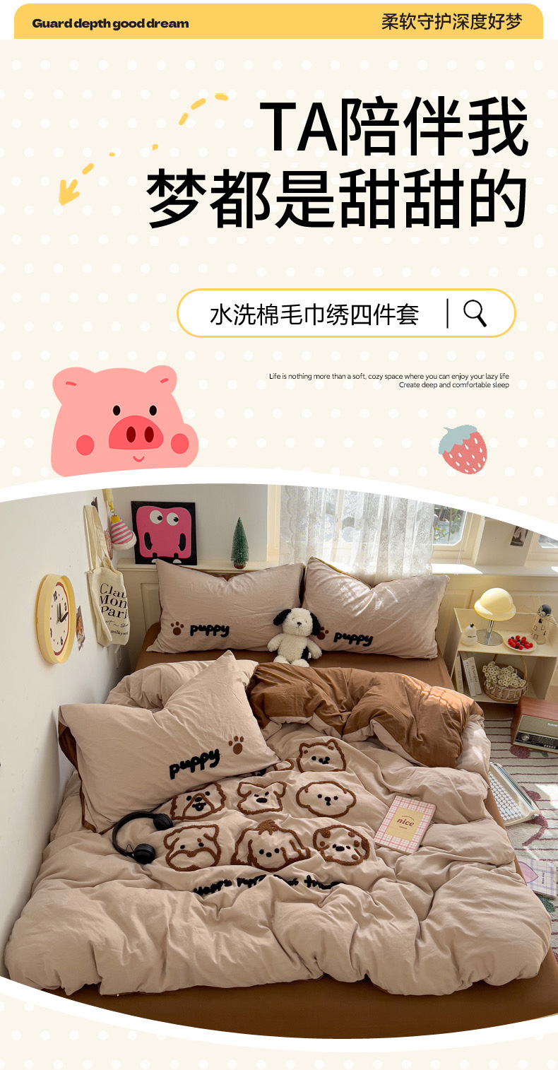 当前位置: 91家纺网 > 商品网购 > 床品套件 > 四件套 > 毛巾绣四件套 > 花伞家居 2025新款精灵水洗棉毛巾绣四件套含买家秀 精灵-奶茶焦糖