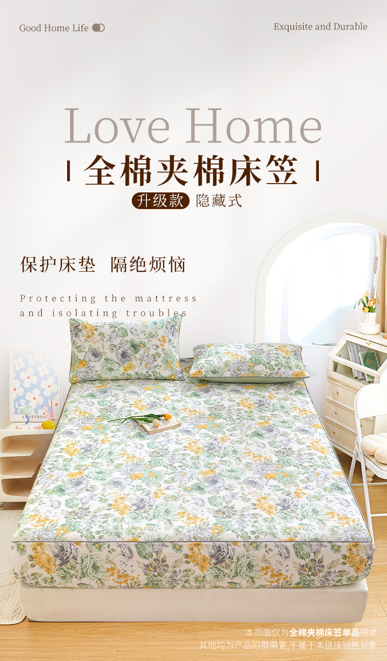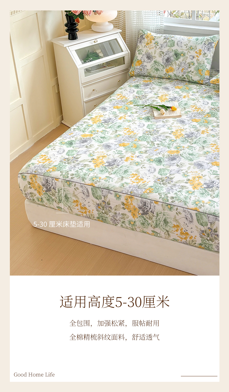 商品名称:元元被芯 2025新款40支13372全棉印花全棉隐藏式夹棉床笠 诗雨