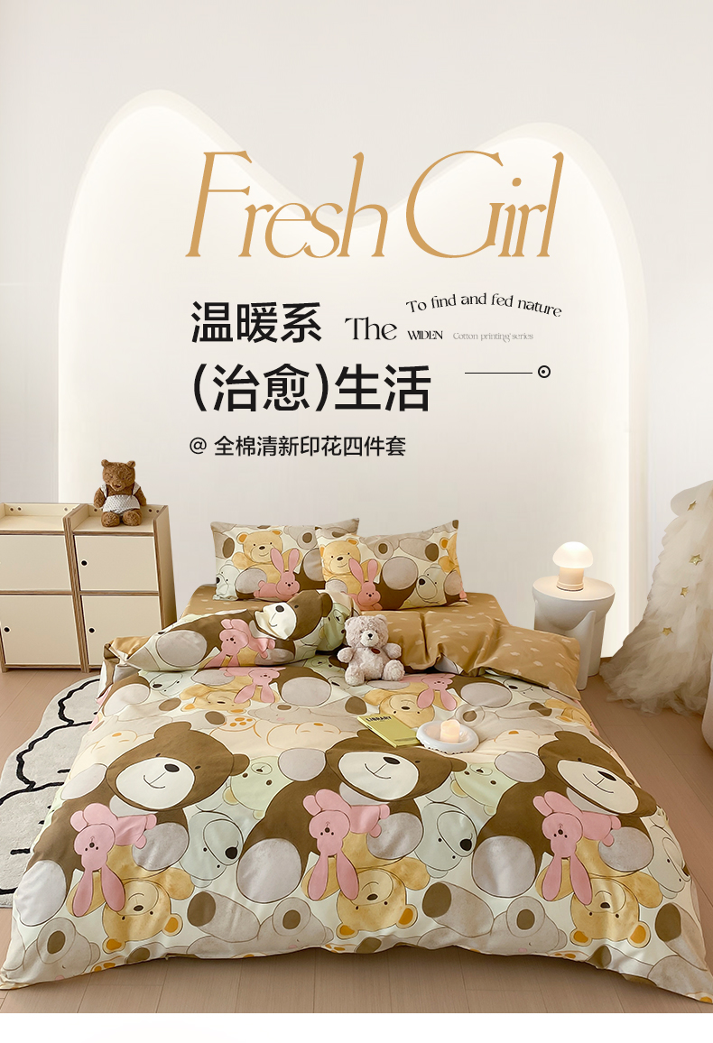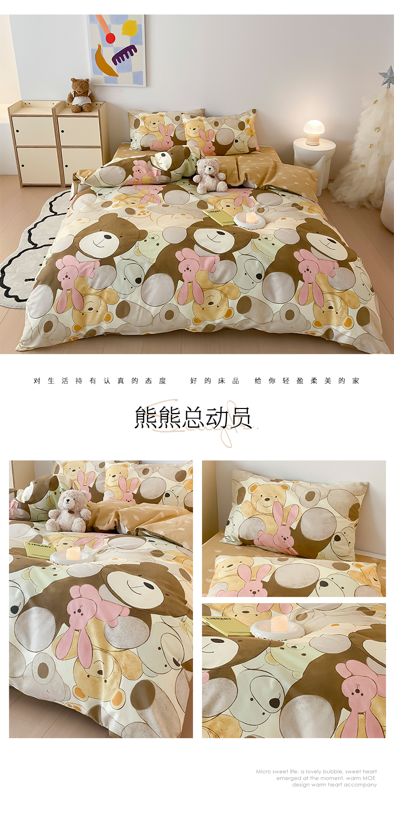 慕希家纺 2025新款全棉13372印花四件套 熊熊总动员