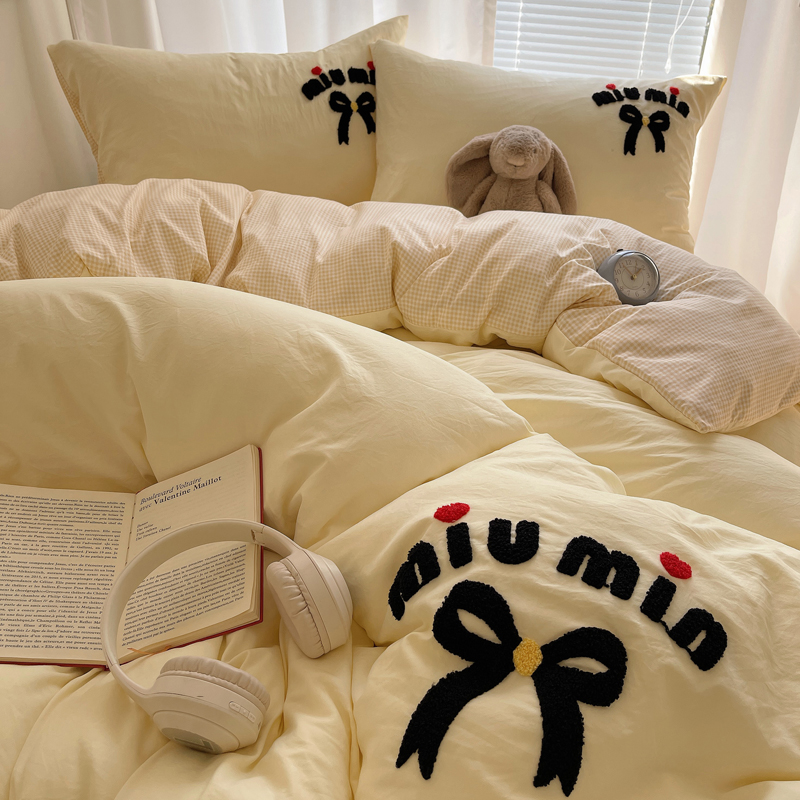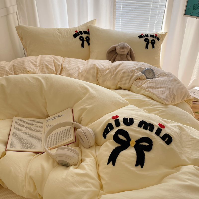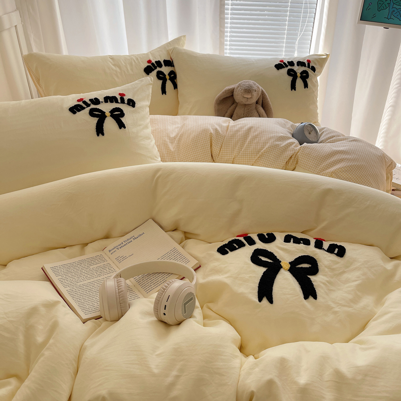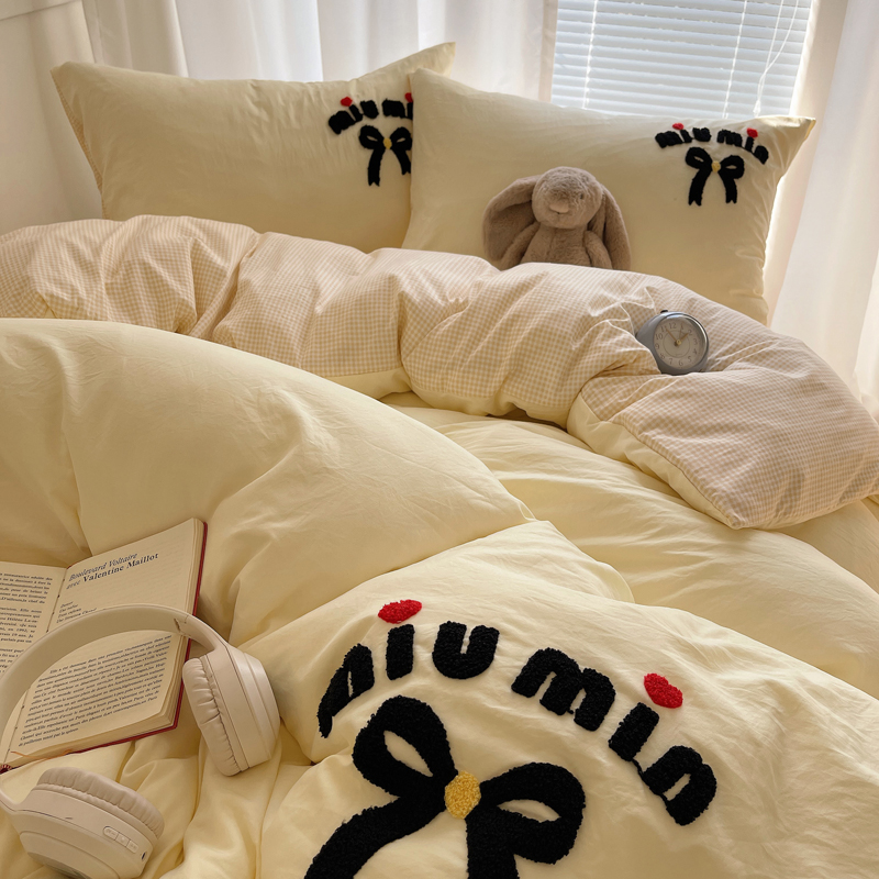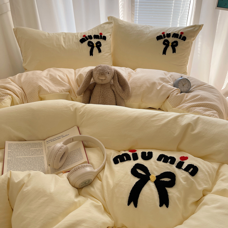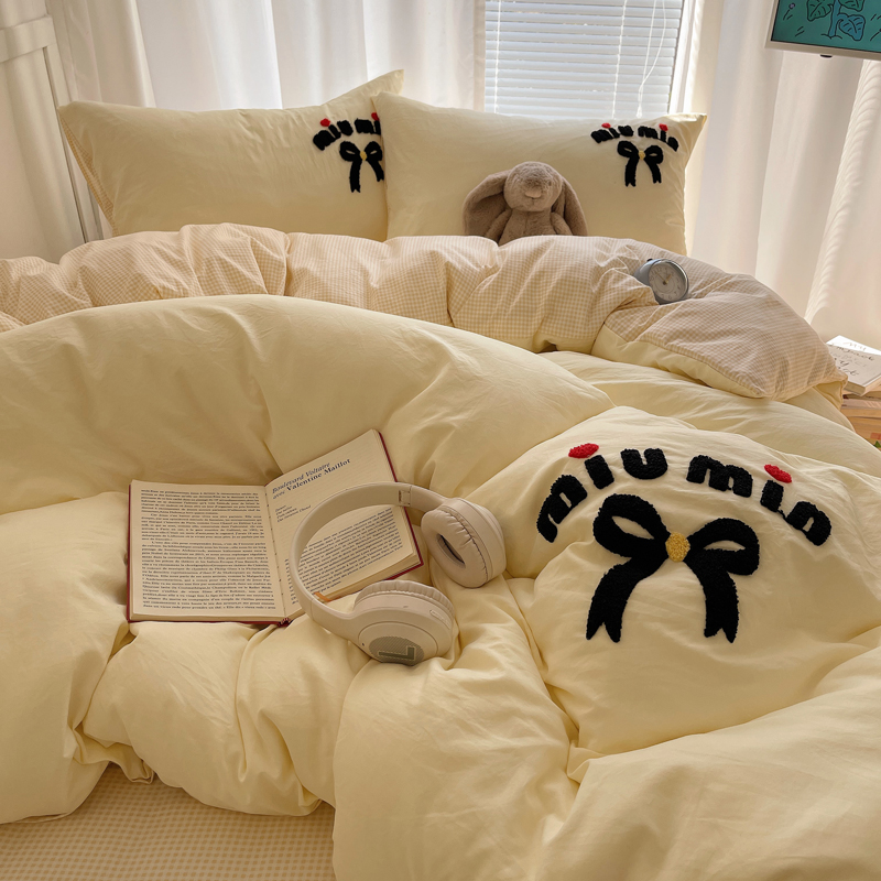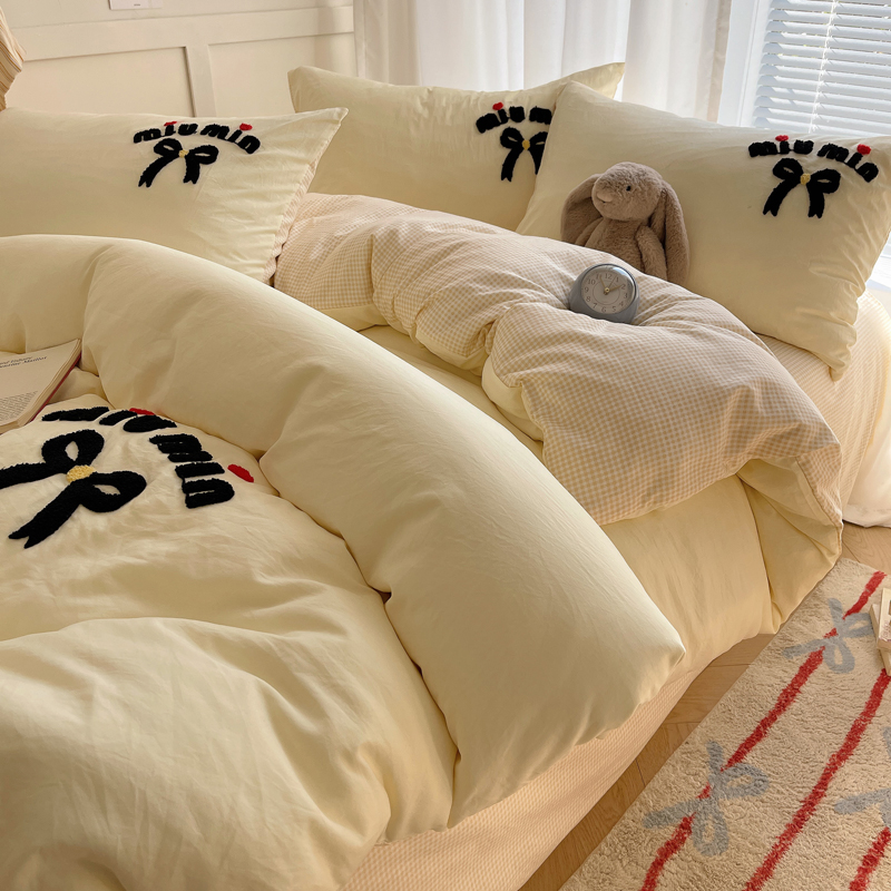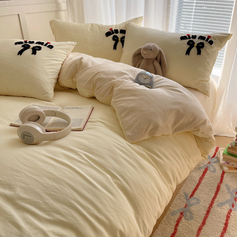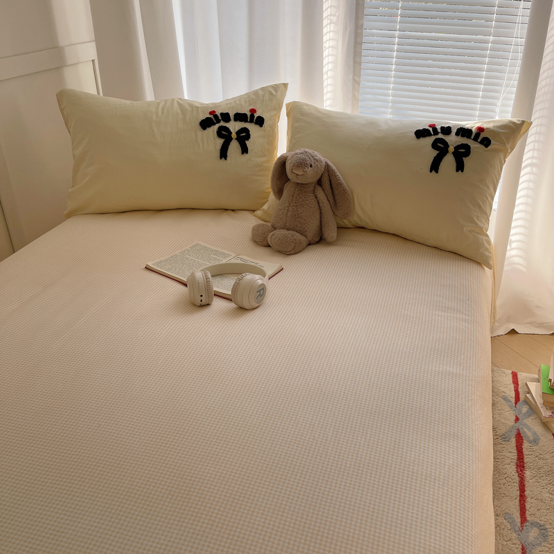当前位置: 91家纺网 > 商品网购 > 床品套件 > 四件套 > 毛巾绣四件套 > 凯洛奇 2025新款1格子水洗棉卡通毛巾绣四件套 蝴蝶结-奶黄