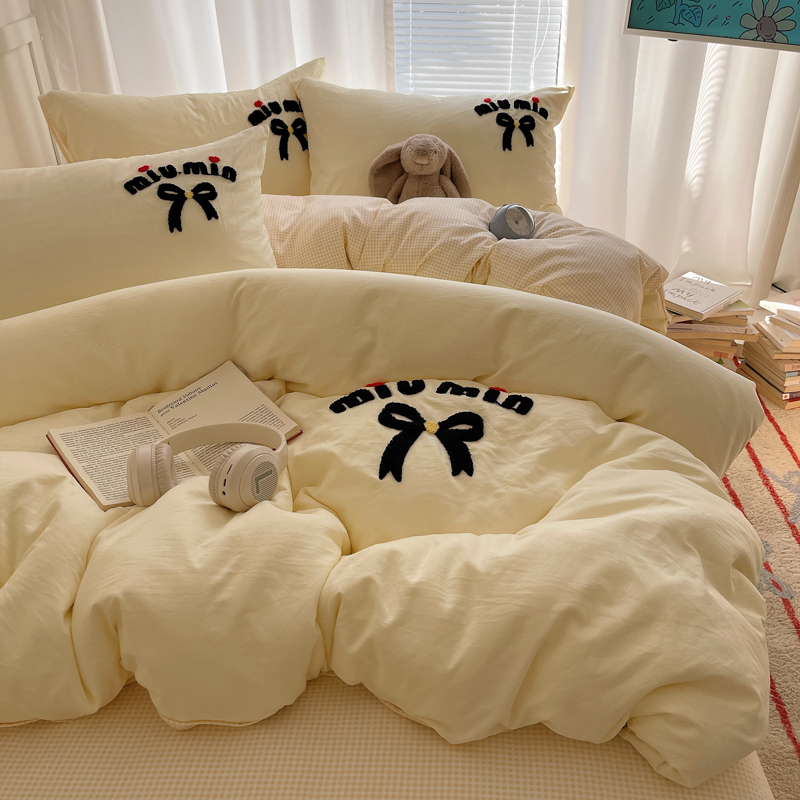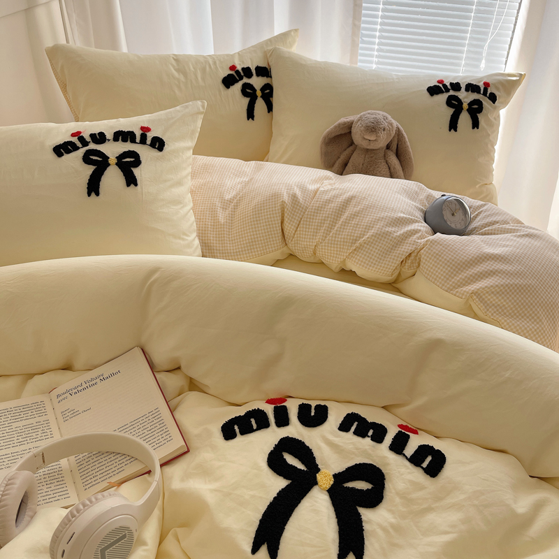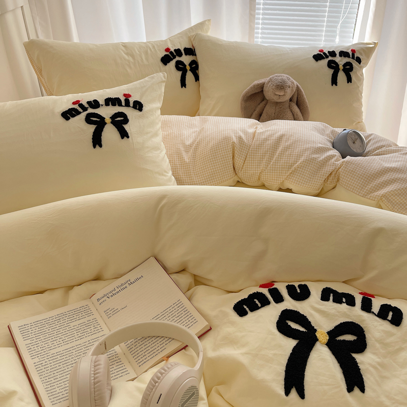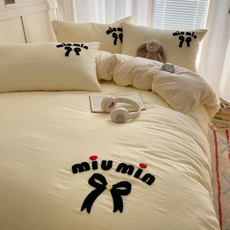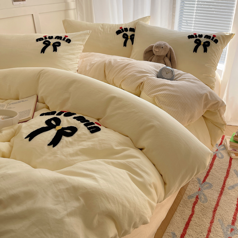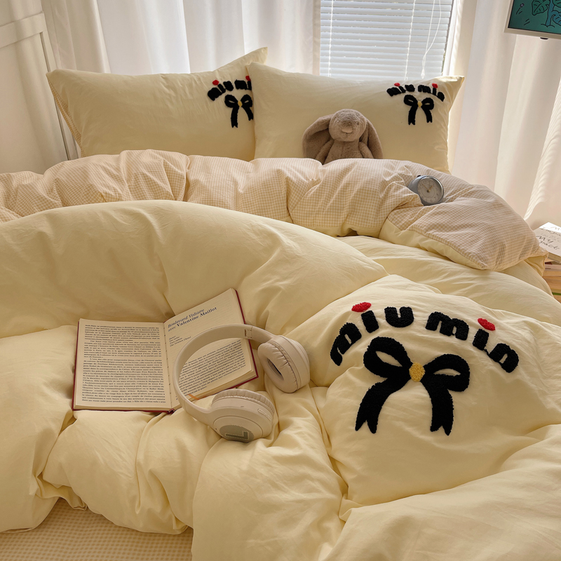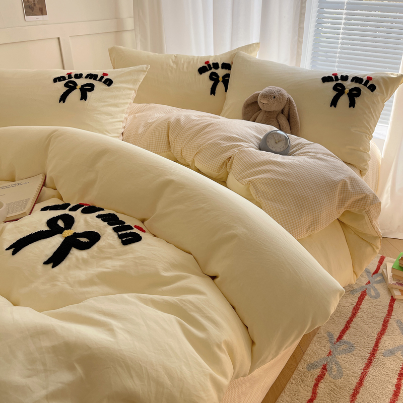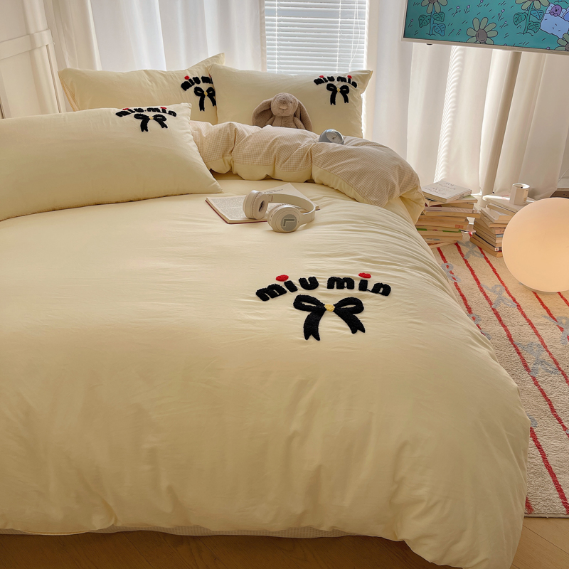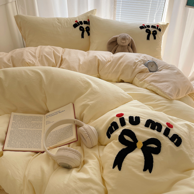 当前位置: 91家纺网 > 商品网购 > 床品套件 > 四件套 > 毛巾绣四件套 > 凯洛奇 2025新款1格子水洗棉卡通毛巾绣四件套 蝴蝶结-奶黄