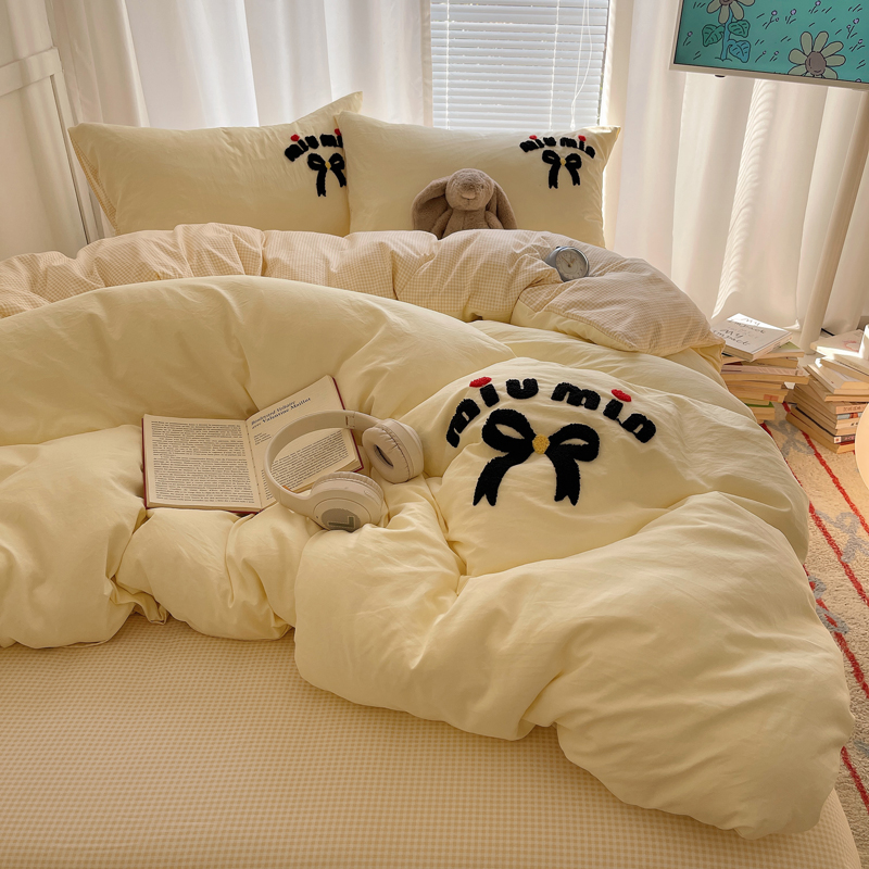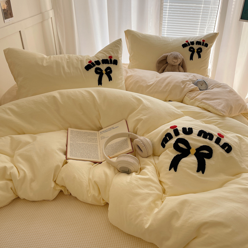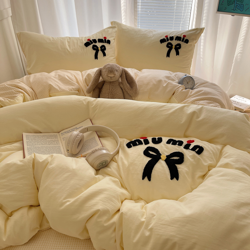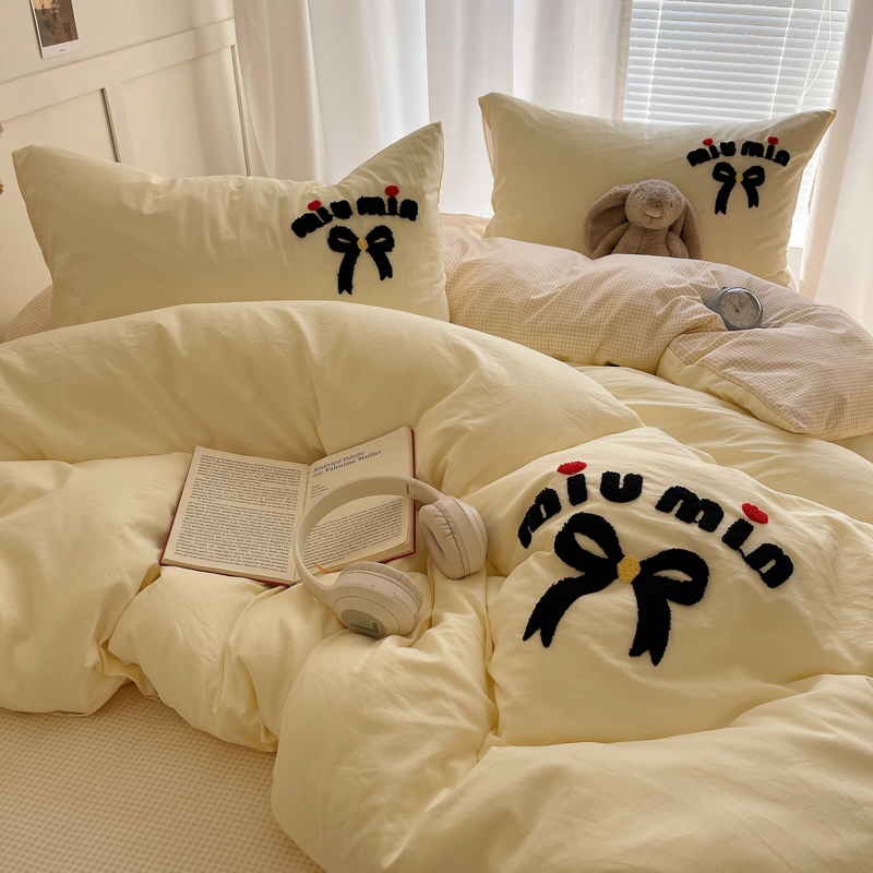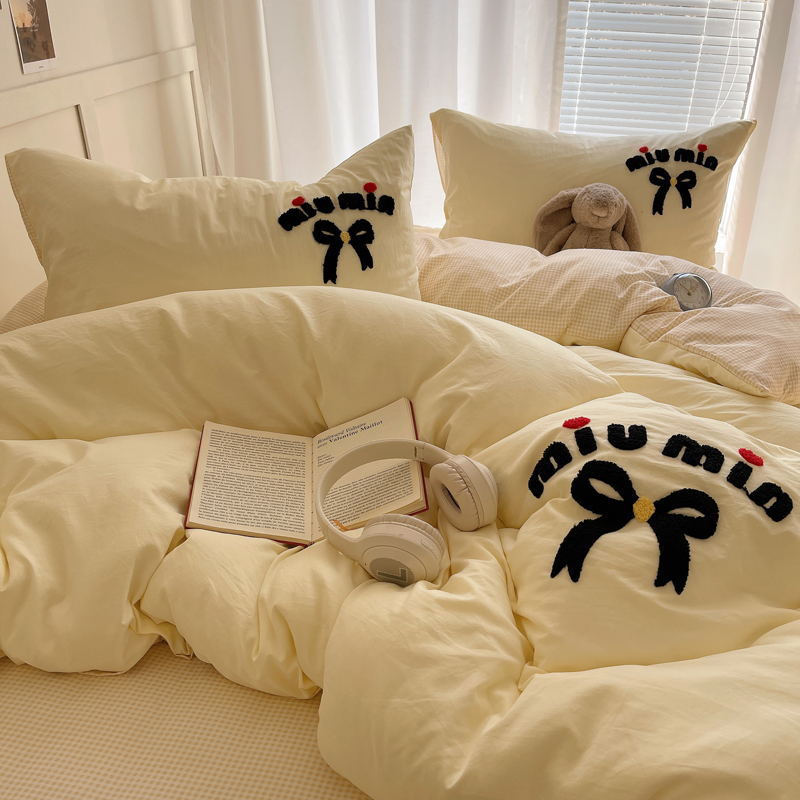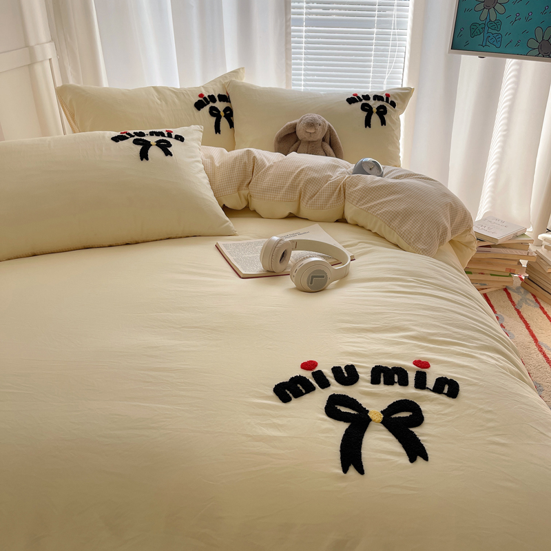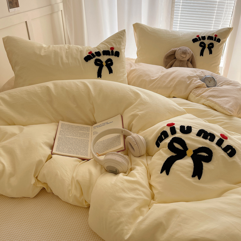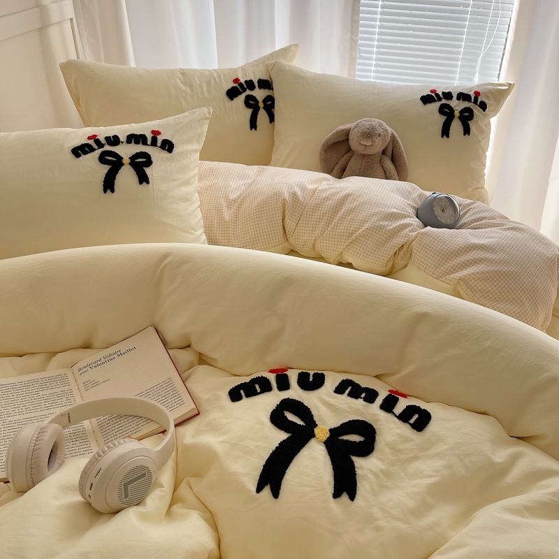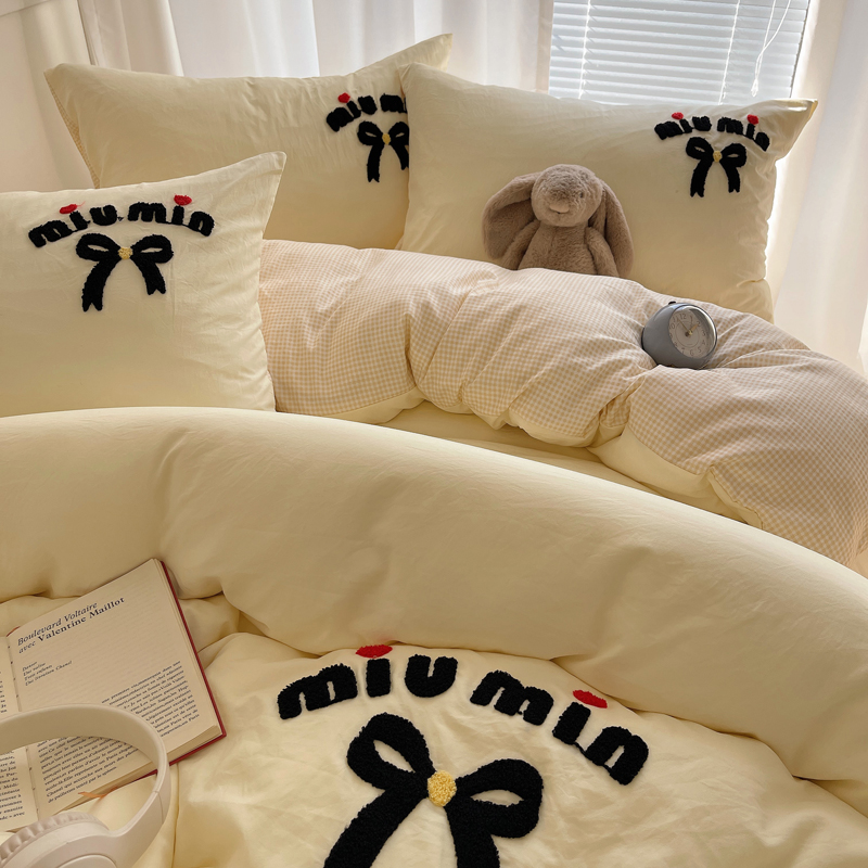当前位置: 91家纺网 > 商品网购 > 床品套件 > 四件套 > 毛巾绣四件套 > 凯洛奇 2025新款1格子水洗棉卡通毛巾绣四件套 蝴蝶结-奶黄