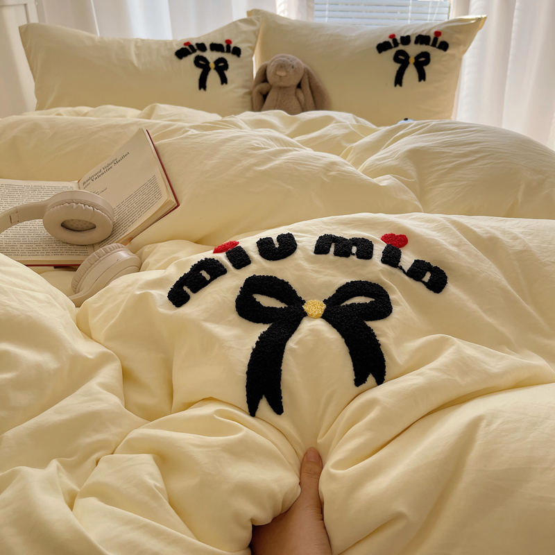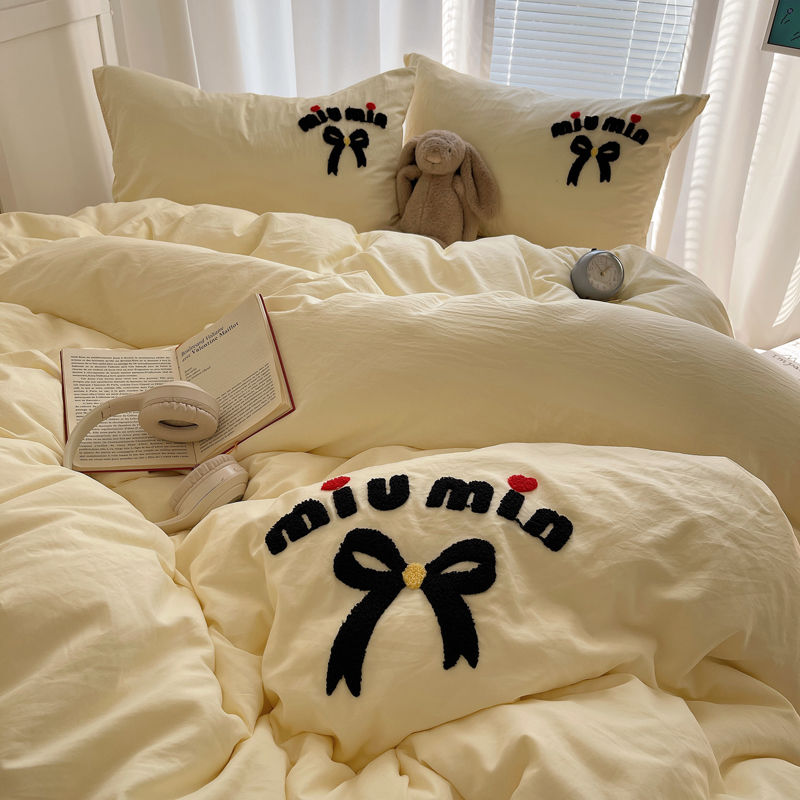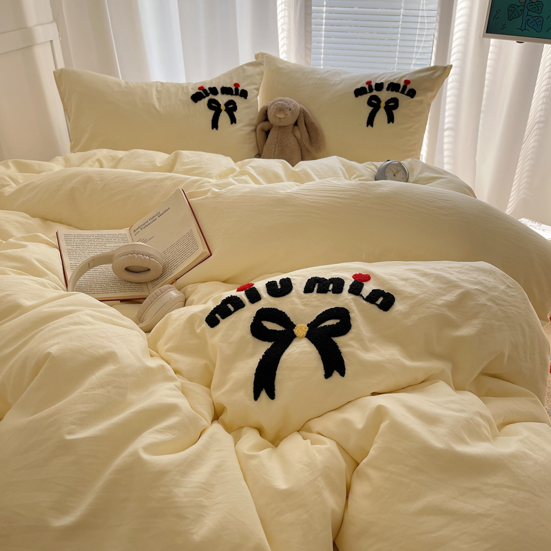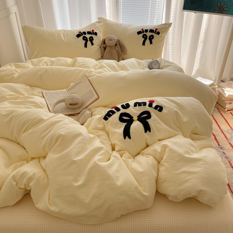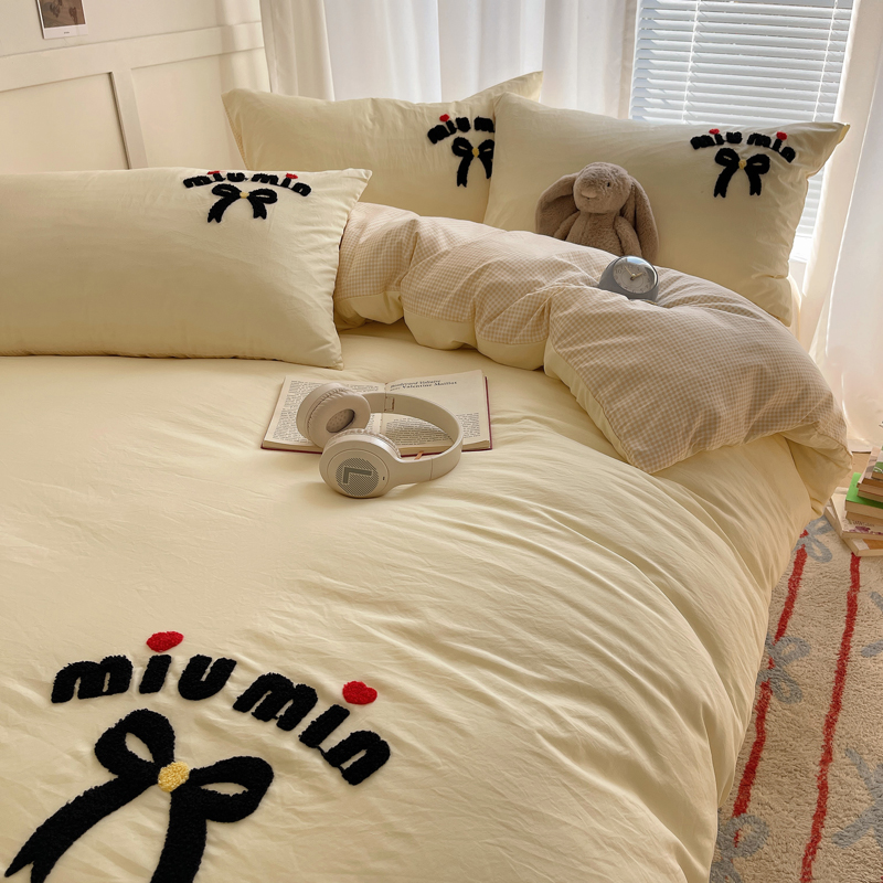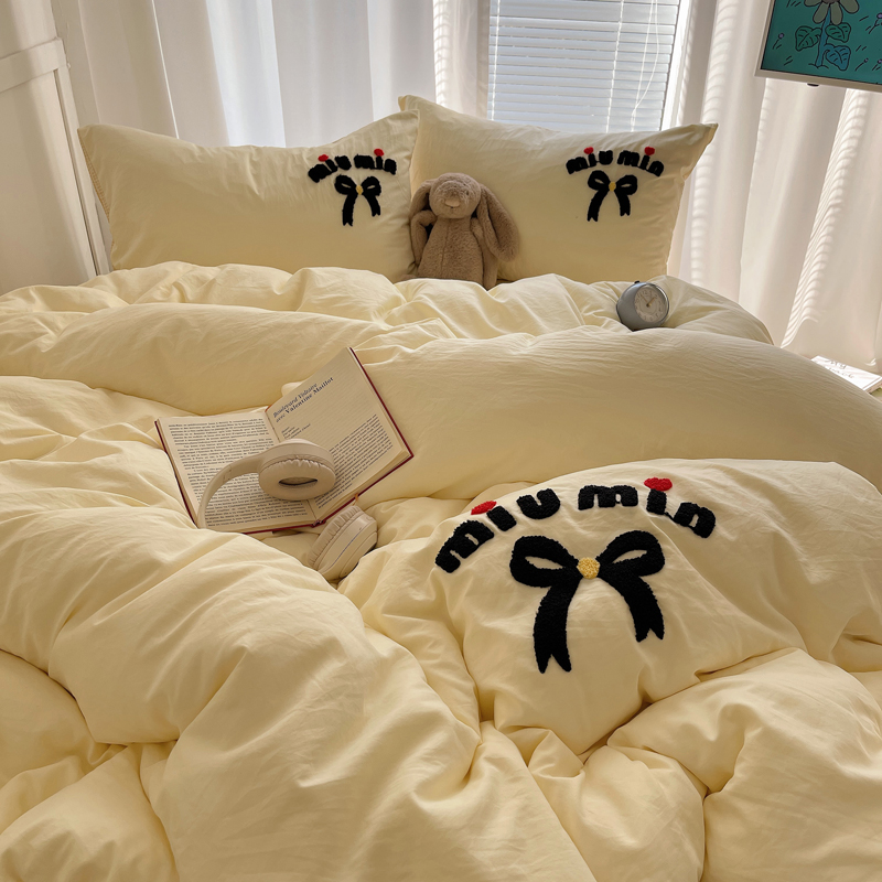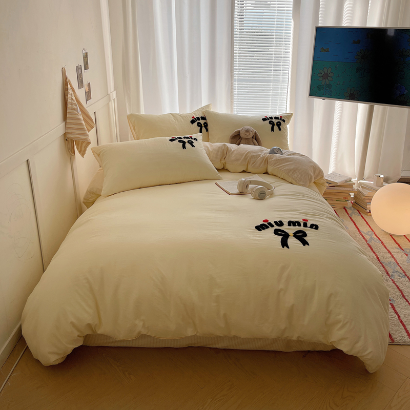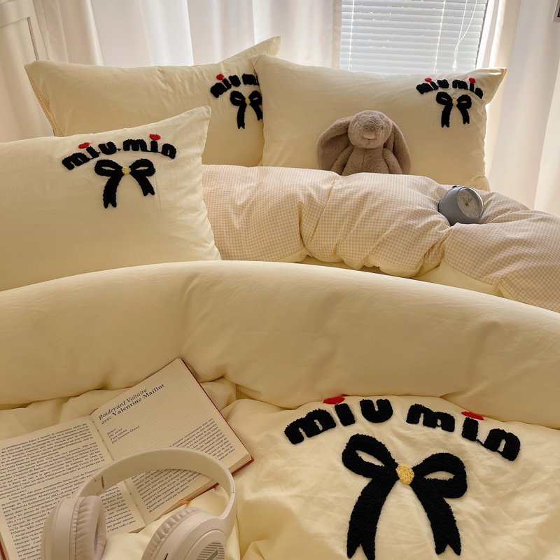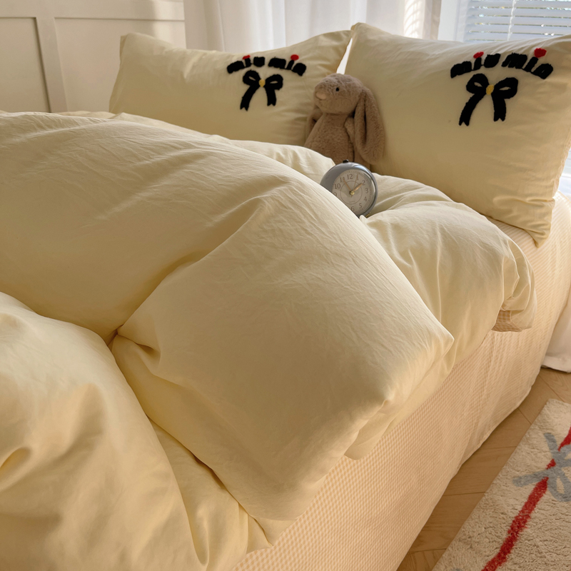当前位置: 91家纺网 > 商品网购 > 床品套件 > 四件套 > 毛巾绣四件套 > 凯洛奇 2025新款1格子水洗棉卡通毛巾绣四件套 蝴蝶结-奶黄