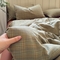 萝莉家纺 2025新款复古全棉A类色织双层纱皱皱纱格子四件套 浮生湖蓝