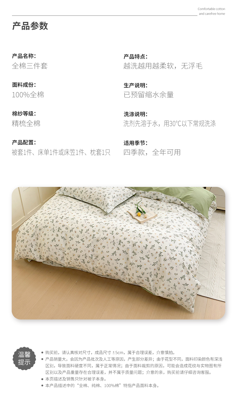 当前位置: 91家纺网 > 商品网购 > 床品套件 > 三件套 > 元元被芯 2025新款40支13372全棉印花全棉三件套 颂雅