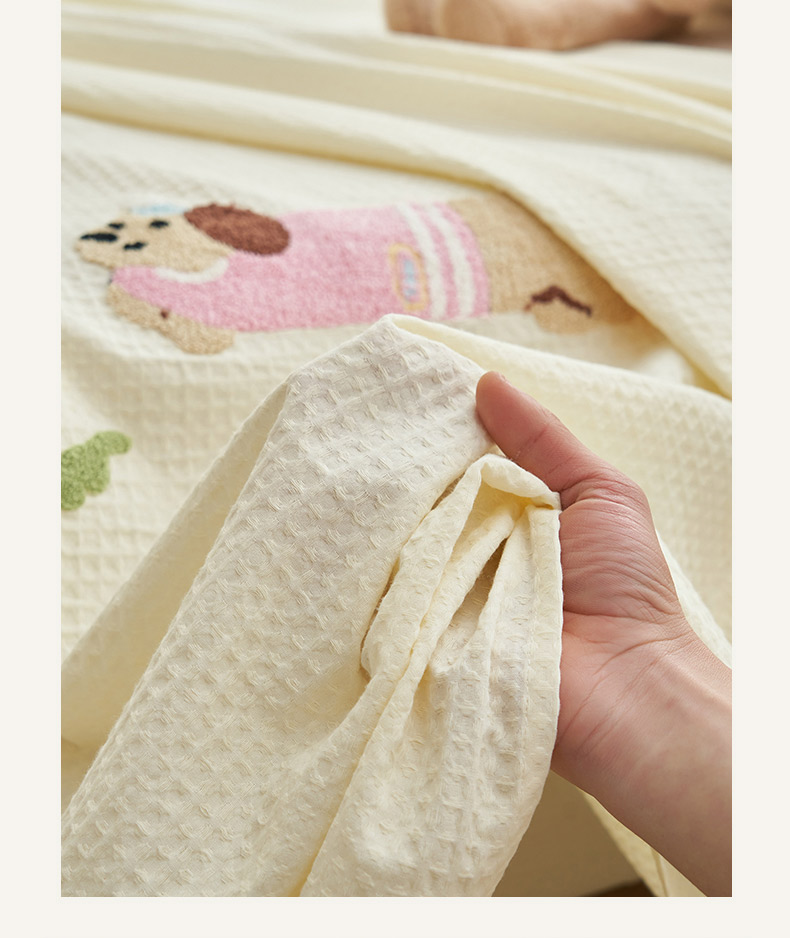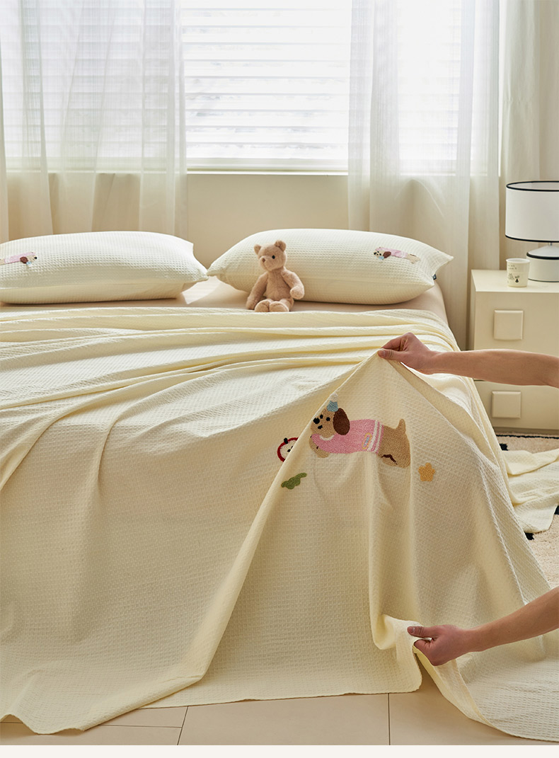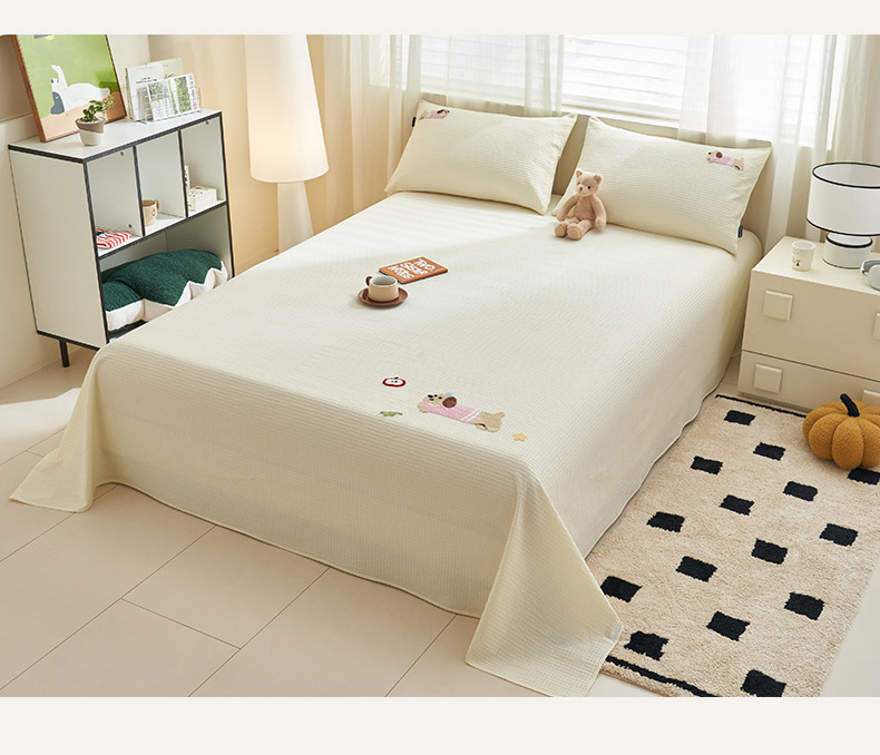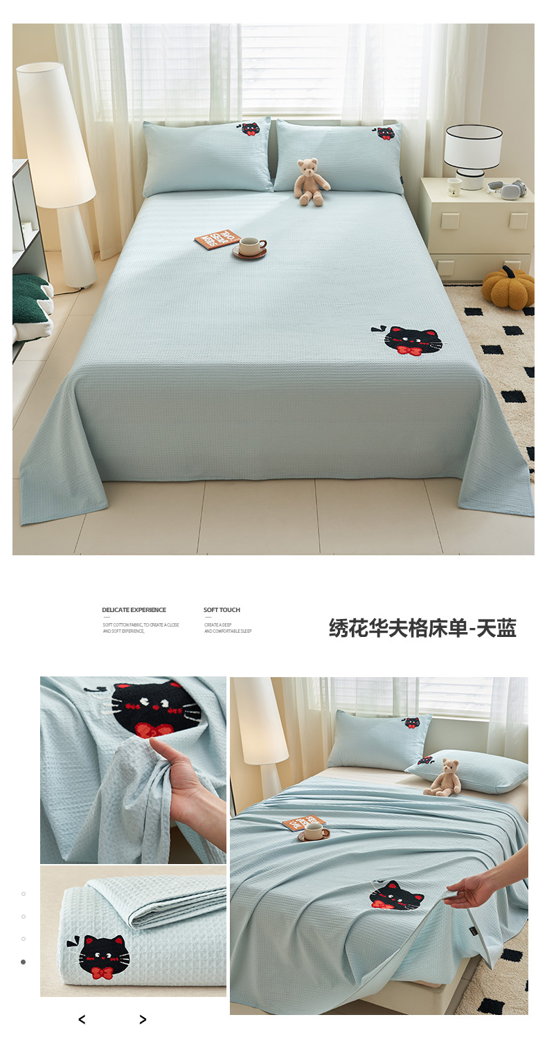 (总)寐绸家纺 2025新款纯棉华夫格毛巾绣单床单