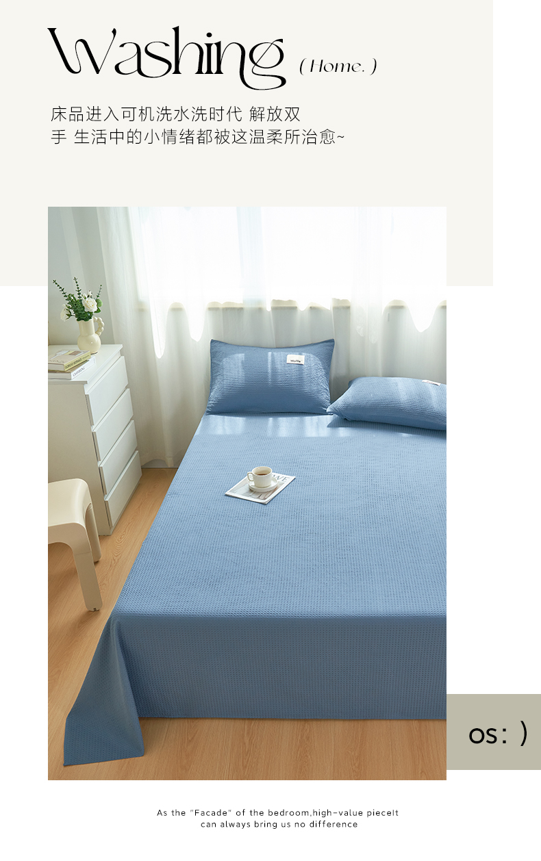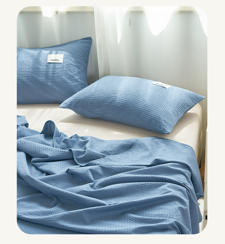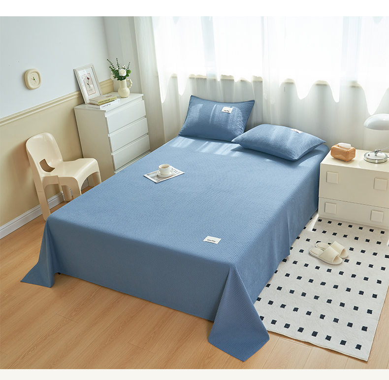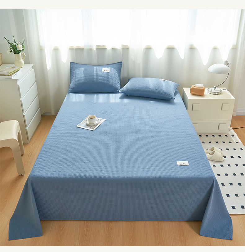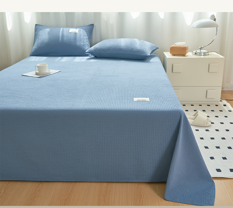 寐绸家纺 2025新款纯棉华夫格床单 纯棉华夫格床单-宾利蓝