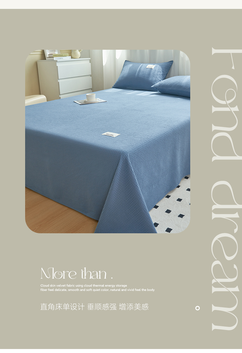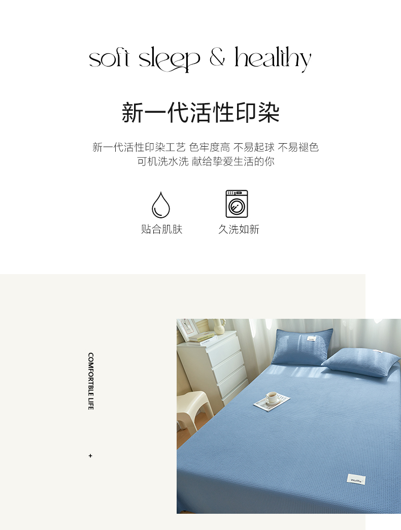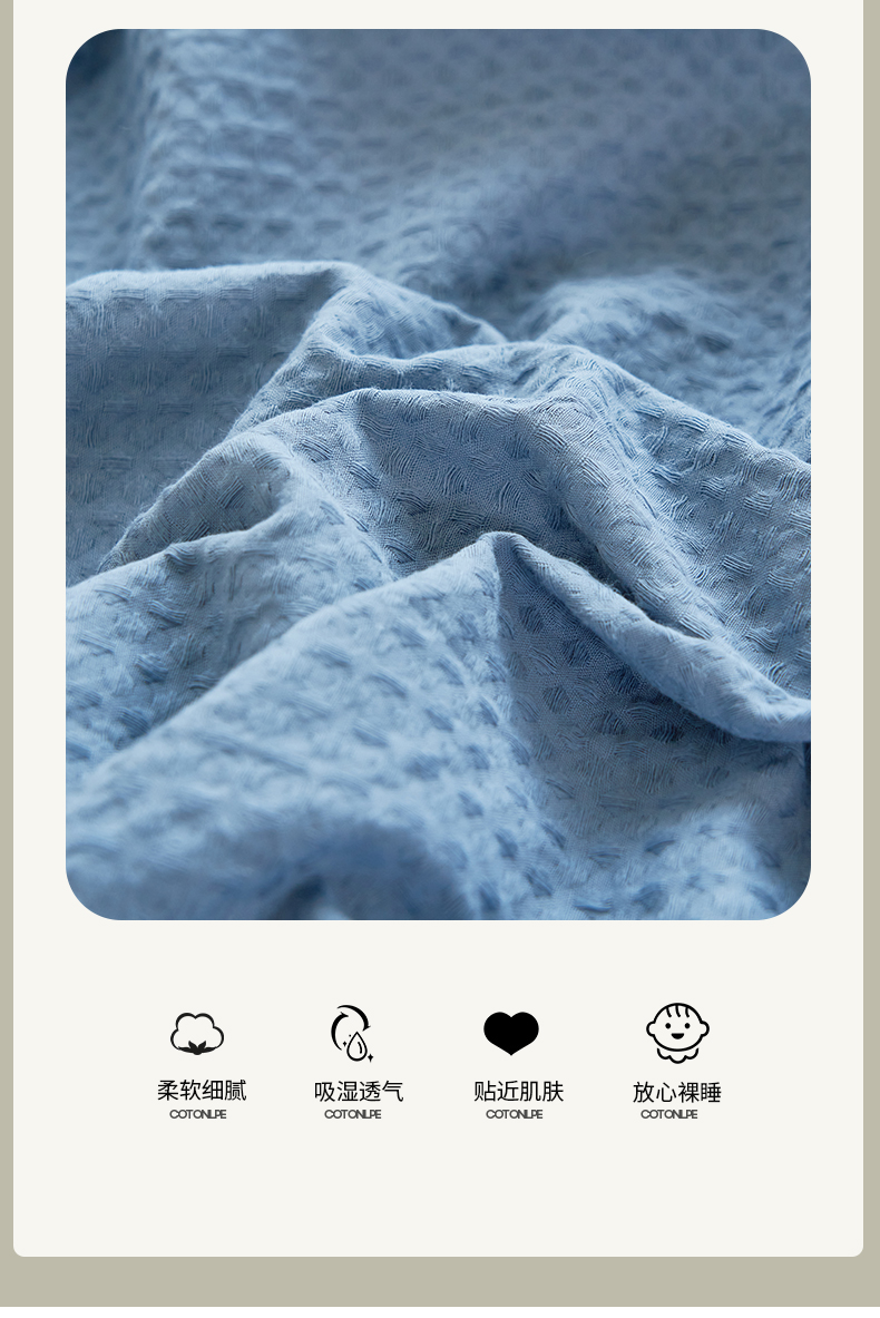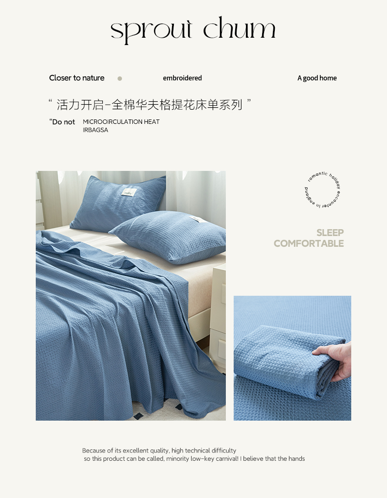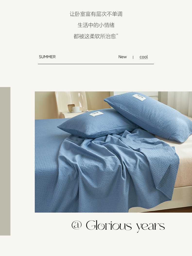 寐绸家纺 2025新款纯棉华夫格床单 纯棉华夫格床单-宾利蓝