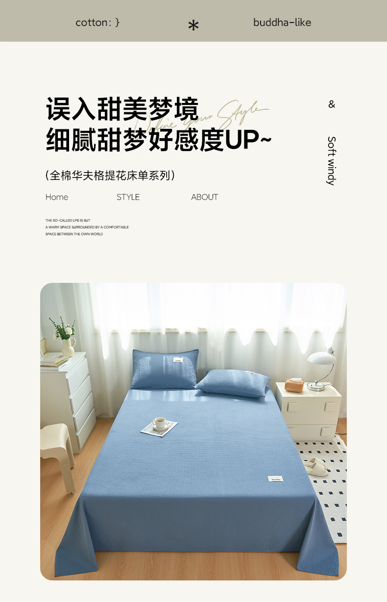 当前位置: 91家纺网 > 商品网购 > 床上用品 > 床单 > 寐绸家纺 2025新款纯棉华夫格床单 纯棉华夫格床单-宾利蓝