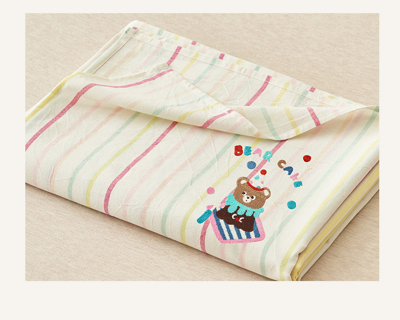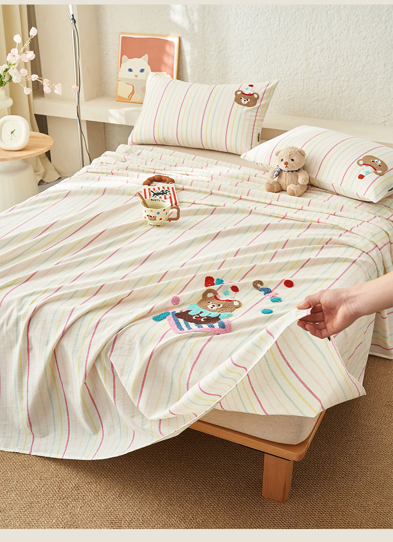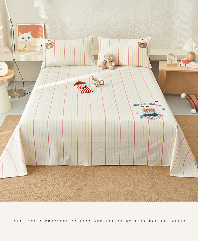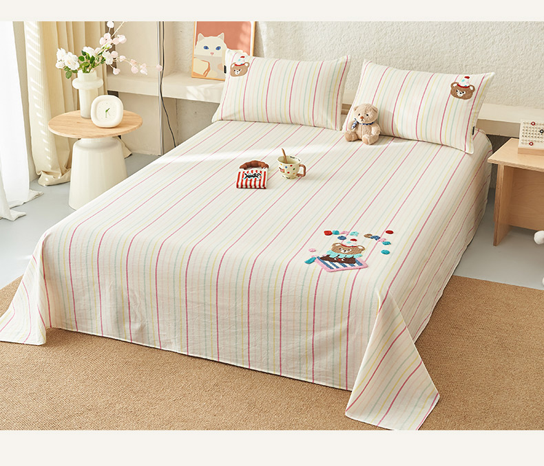寐绸家纺 2025新款纯棉色织水洗棉竖条单床单 水洗棉竖条床单-彩条粉