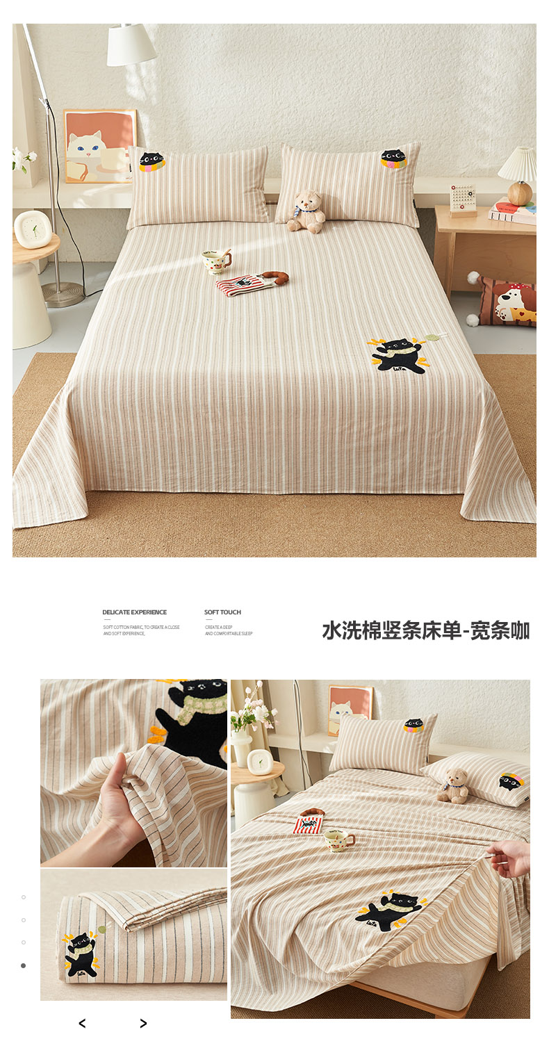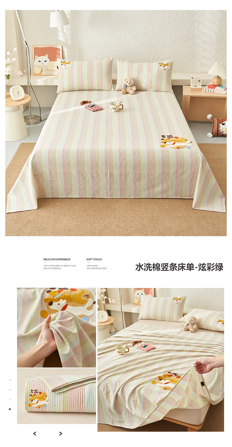 • 91家纺网 家纺一手货源 找家纺 寐绸家纺 2025新款纯棉色织水洗棉竖条单床单 水洗棉竖条床单-彩条粉