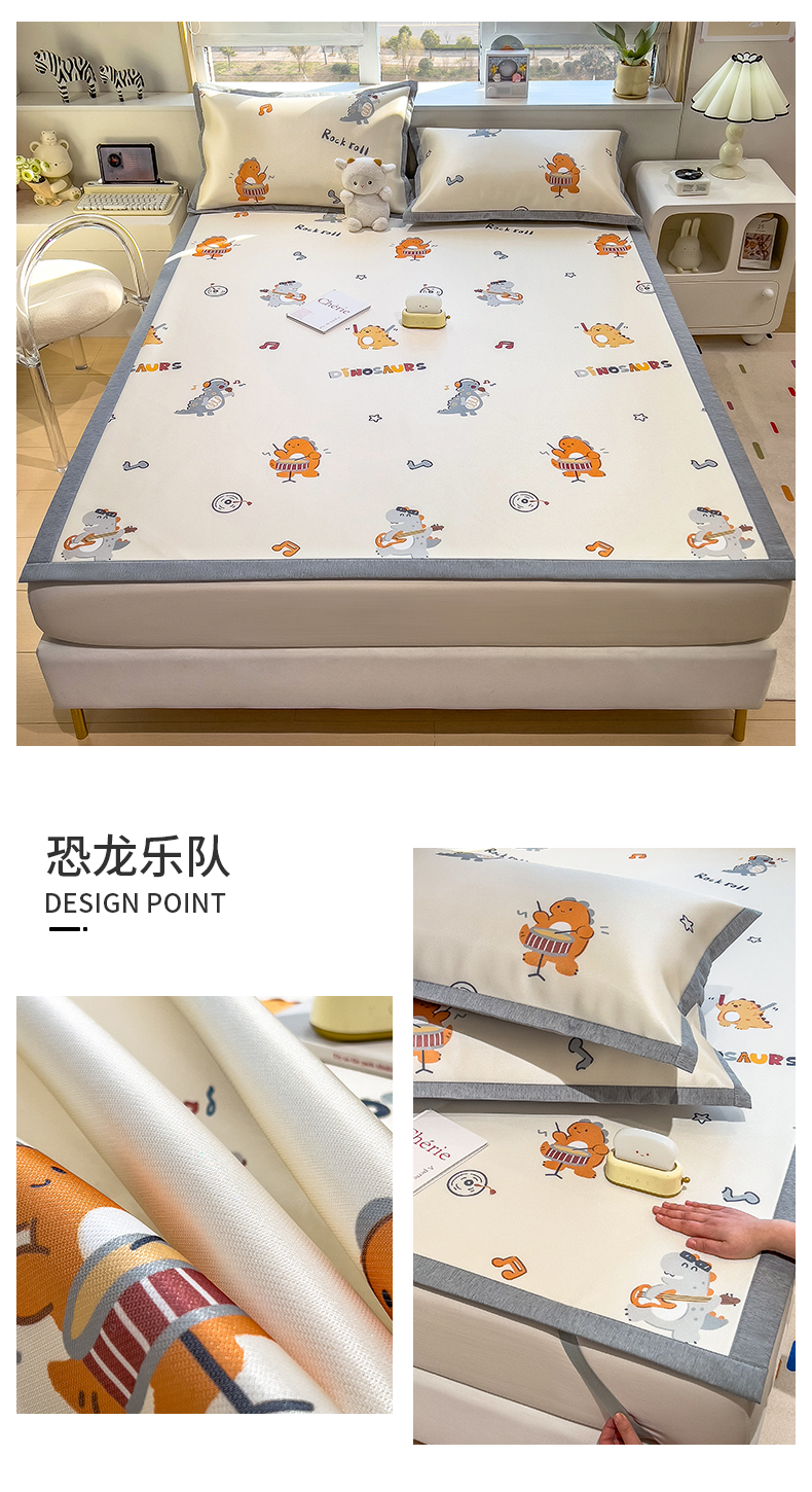 商品名称:兄弟坊 2025新款数码小清新印花冰丝席 恐龙乐队