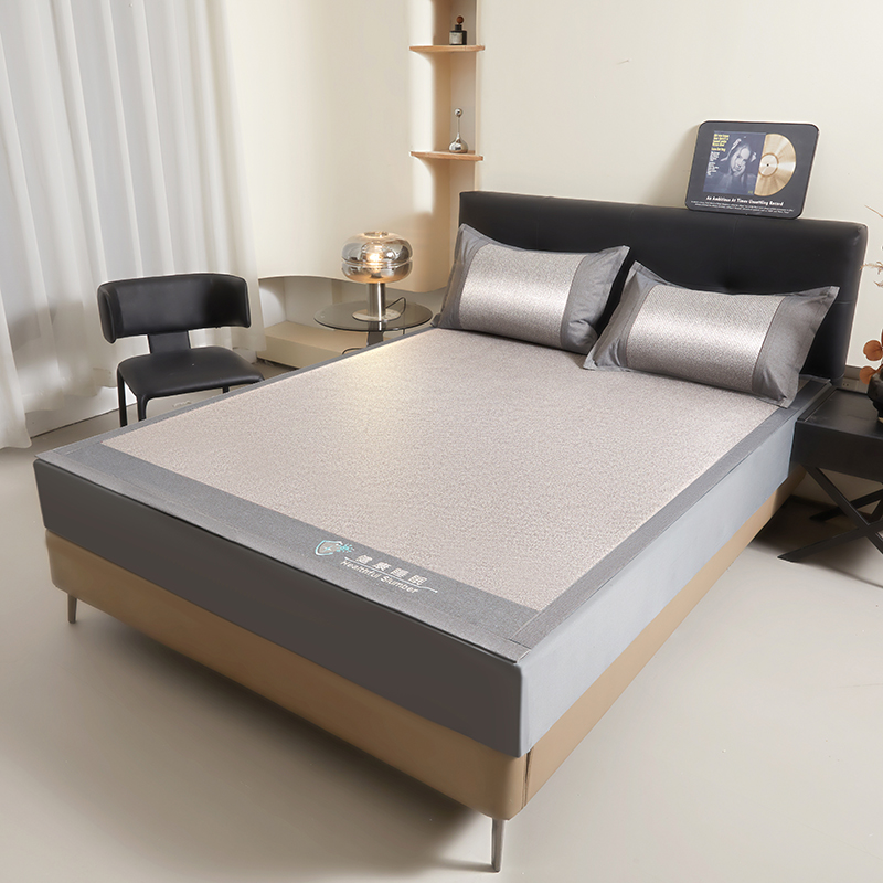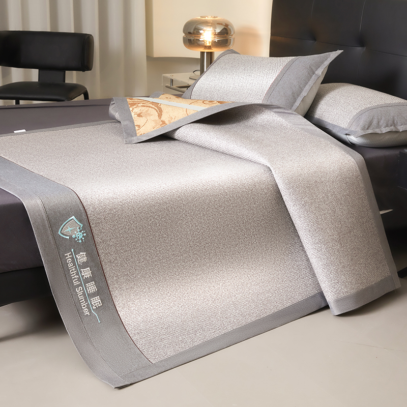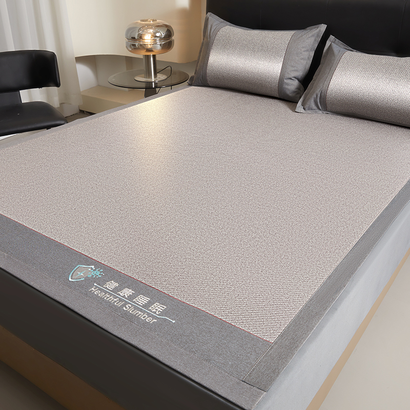 (总)席都 2024新款冰藤席床席三件套-三明治-冰藤席系列,灰,金,绿,粉,蓝