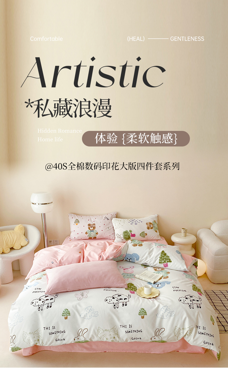 嘉汀兰 2025新款40s全棉纯棉数码印花大版四件套系列 小甜豆