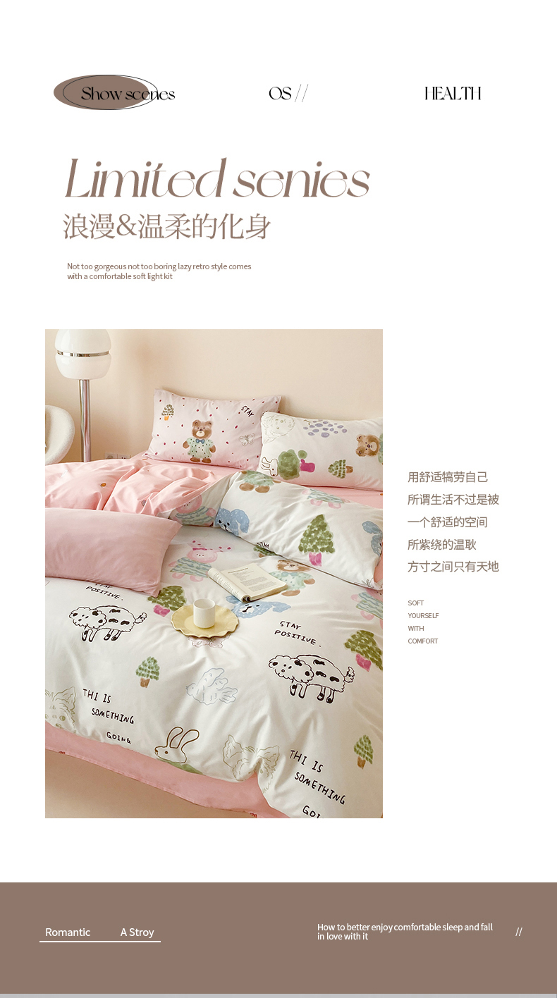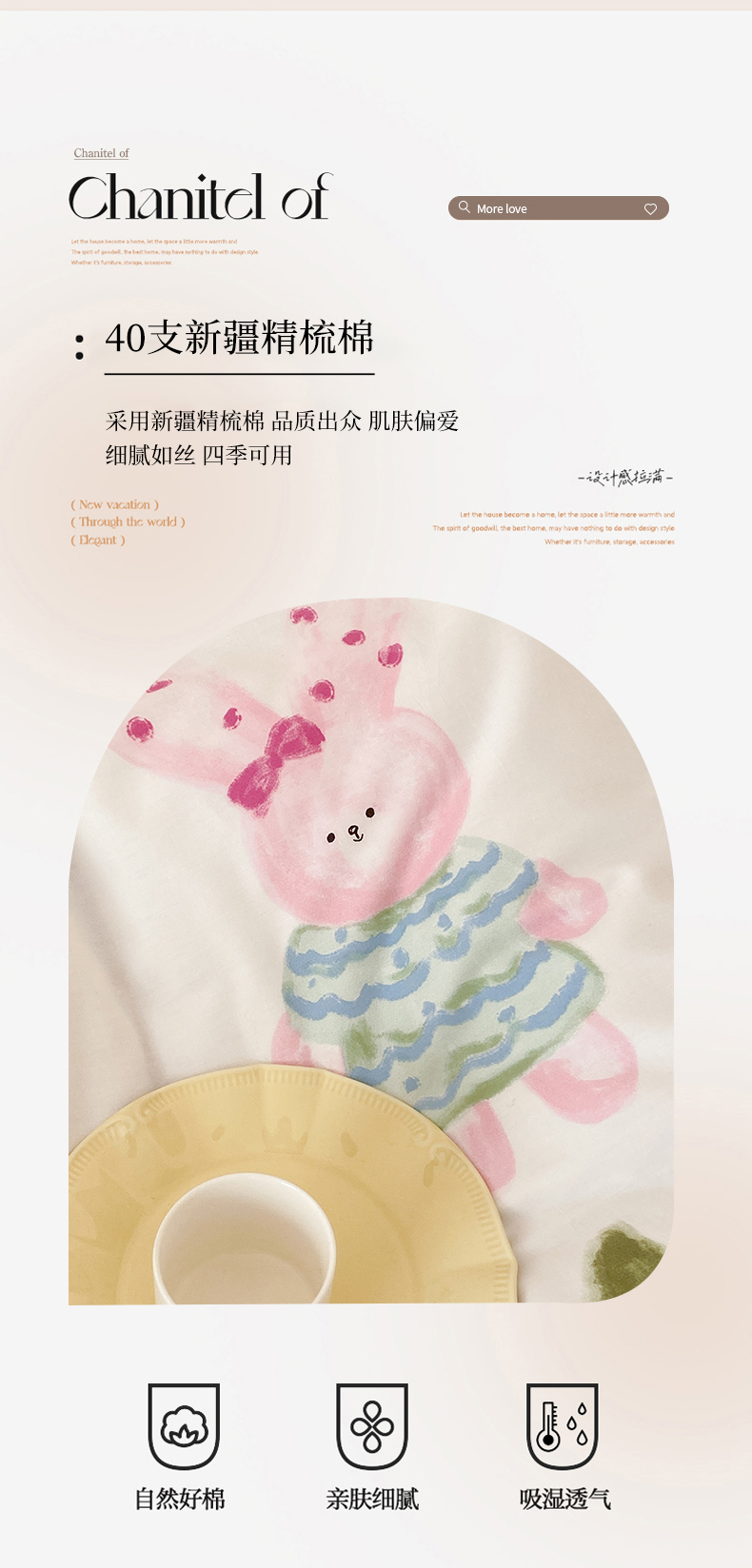 商品名称:嘉汀兰 2025新款40s全棉纯棉数码印花大版四件套系列 小甜豆