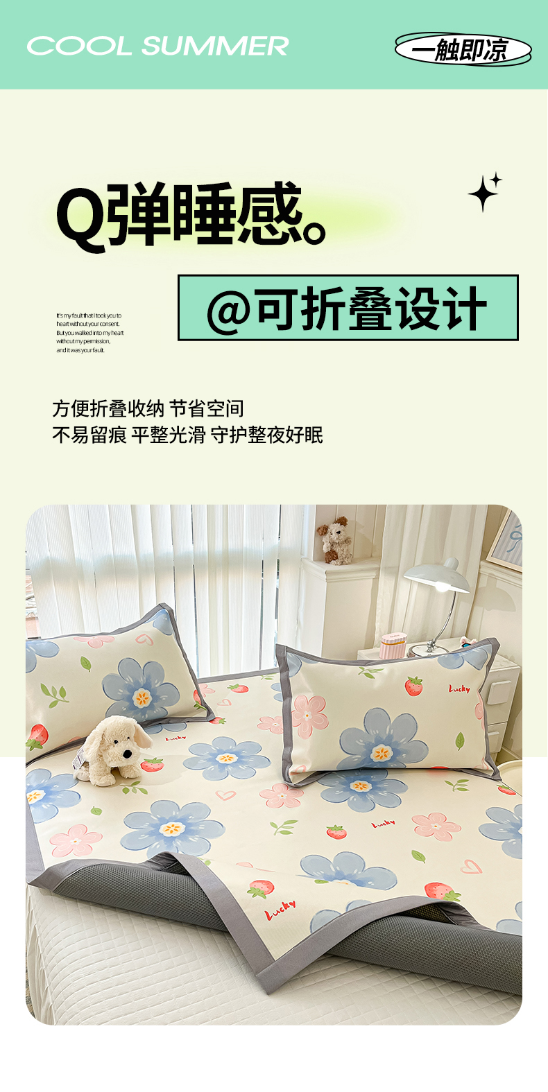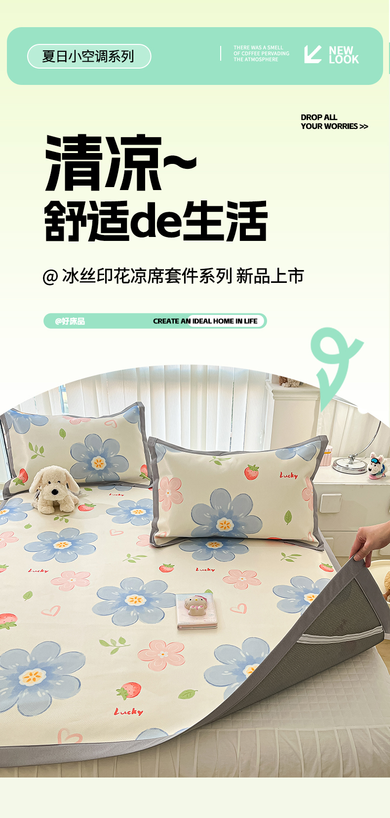 川悦生活 2025新款600D立体宽边冰丝印花凉席 风起幸福
