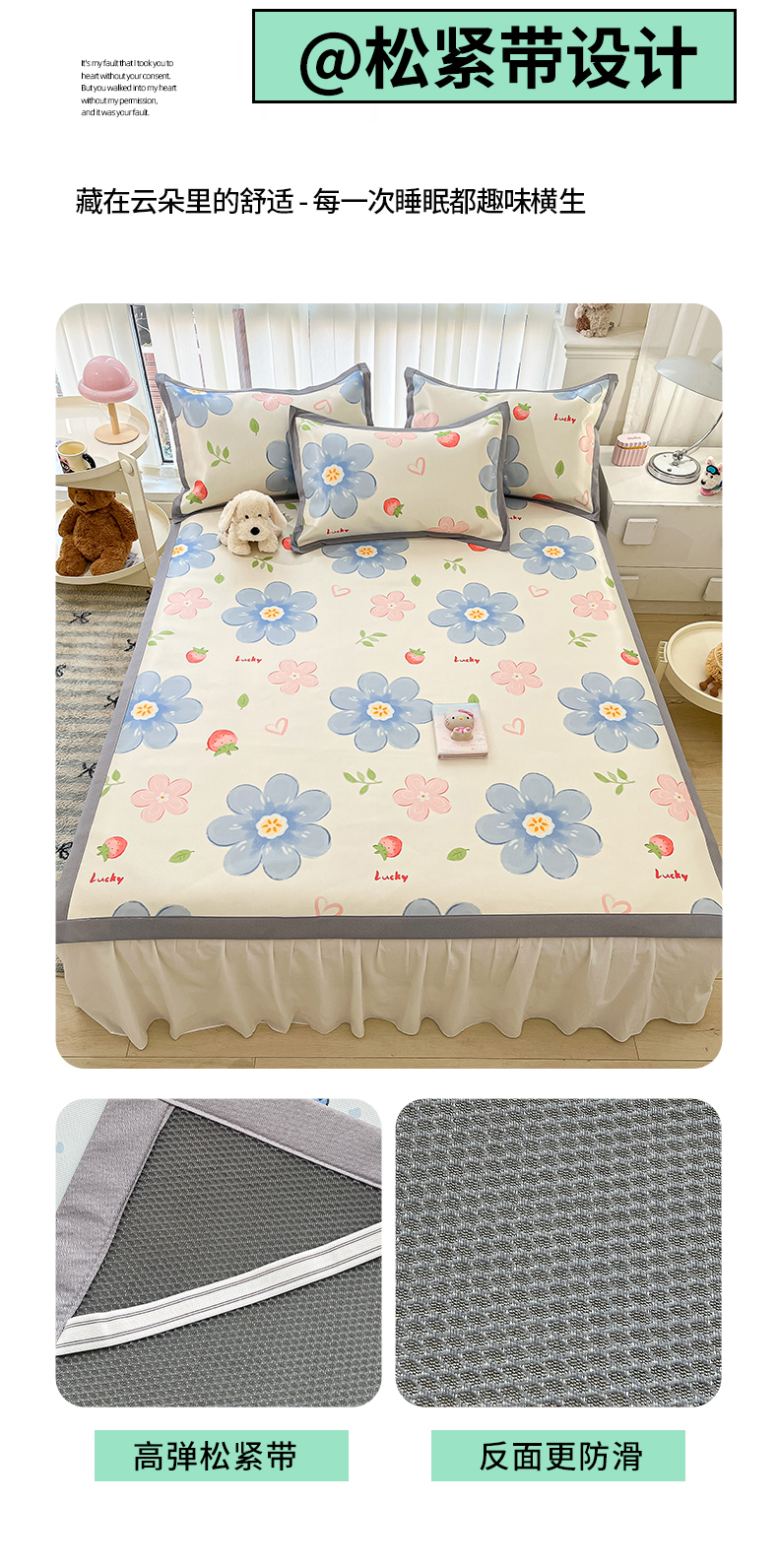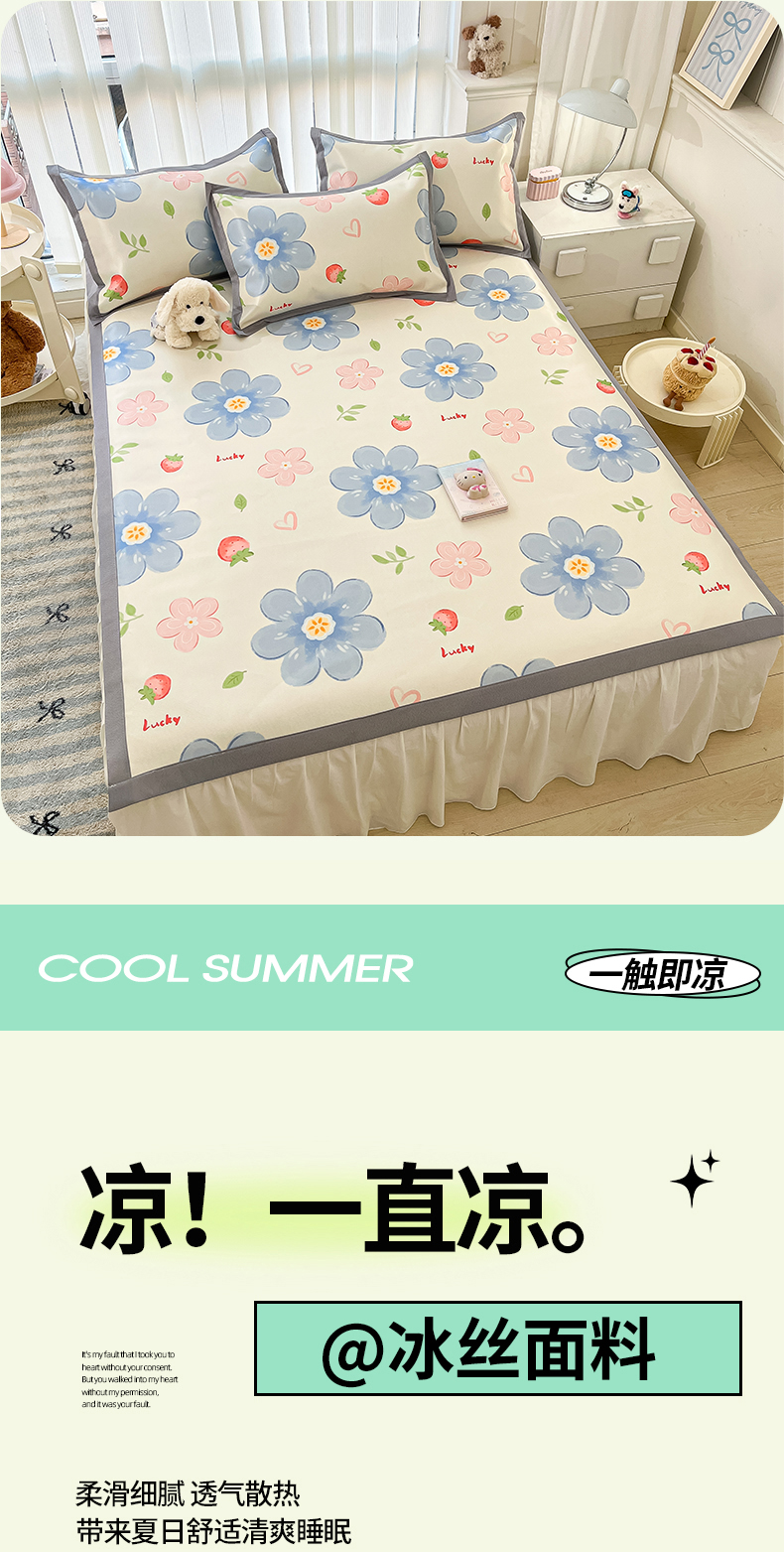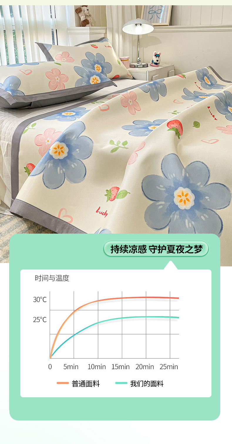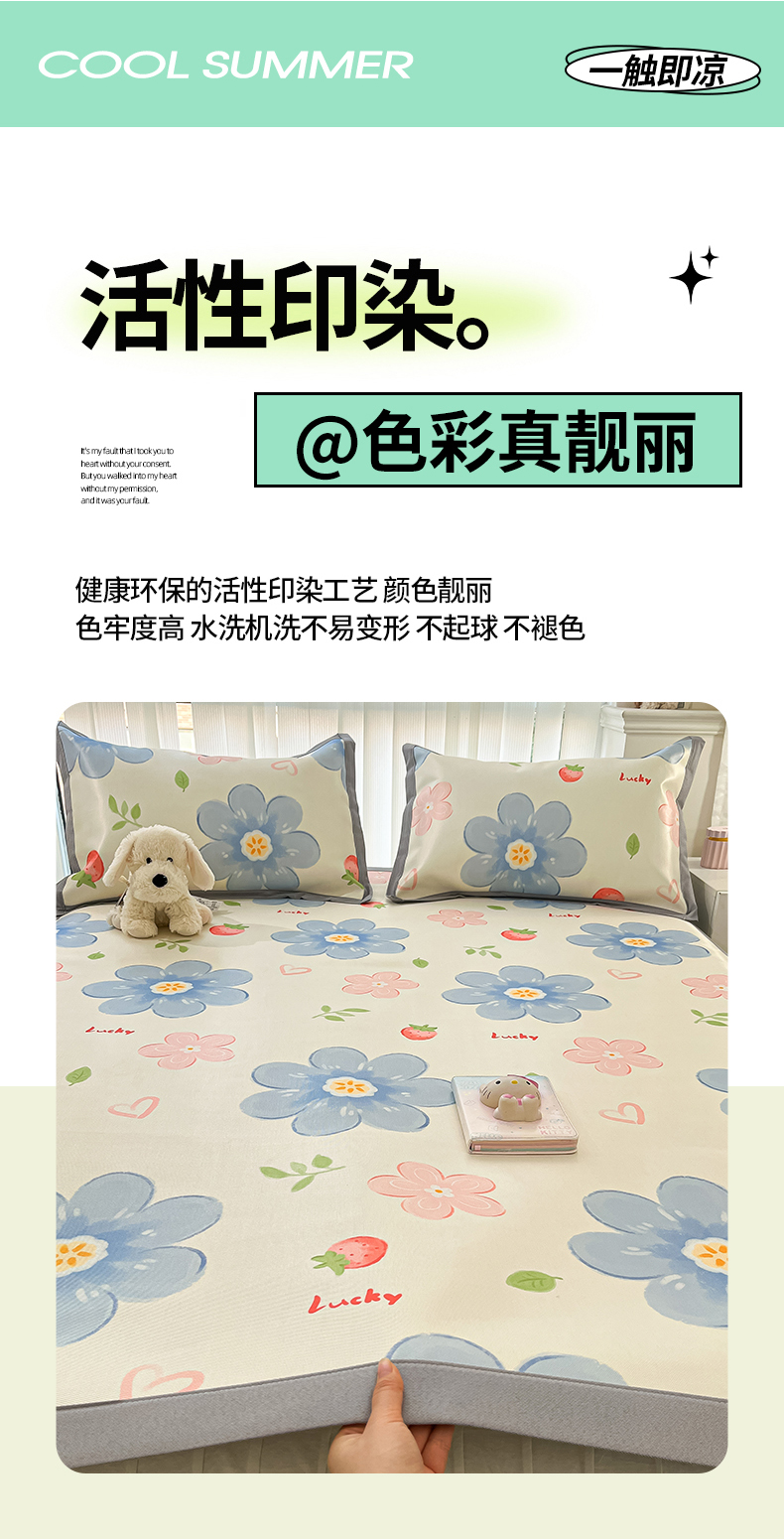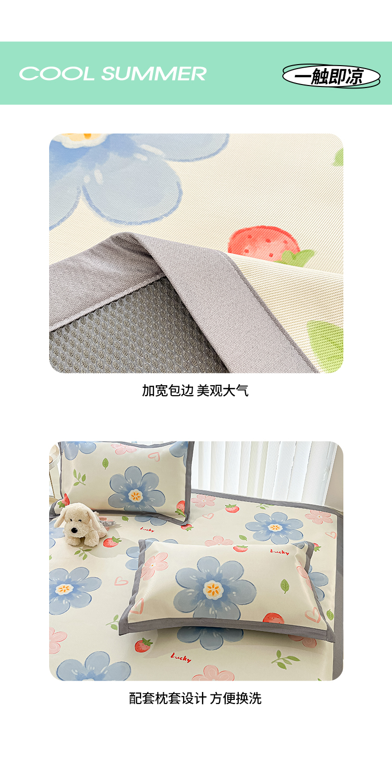 商品名称:川悦生活 2025新款600D立体宽边冰丝印花凉席 风起幸福