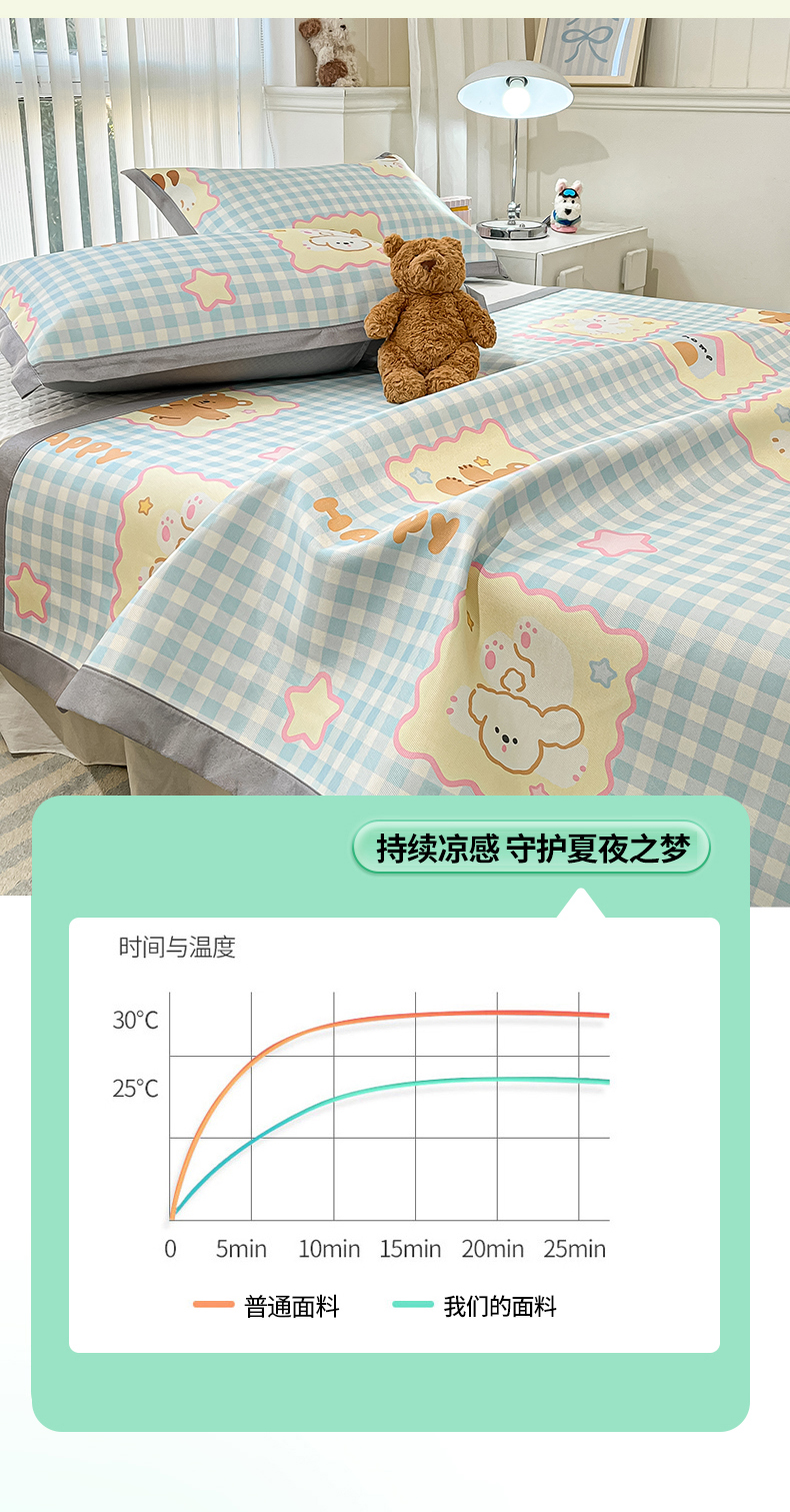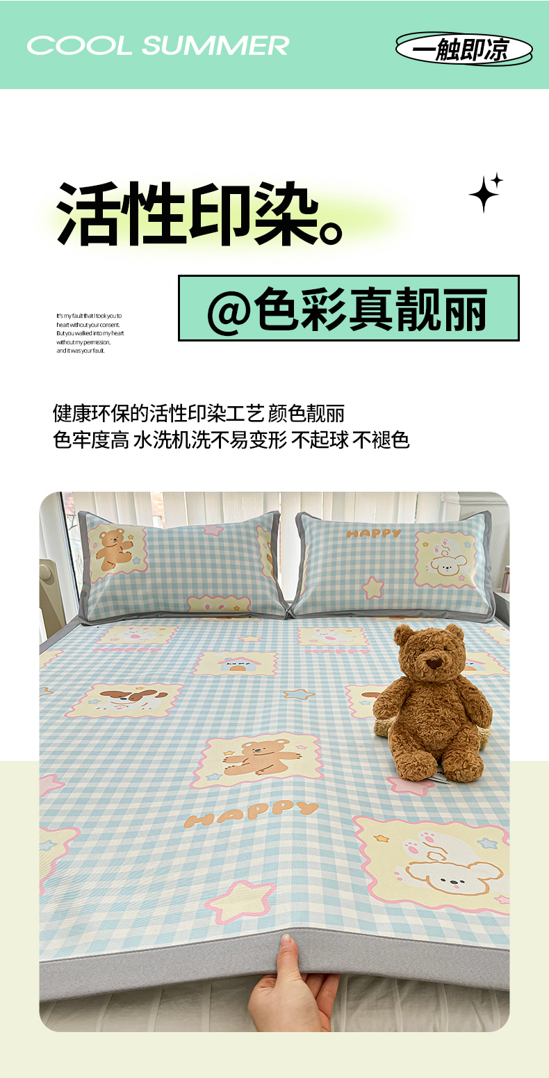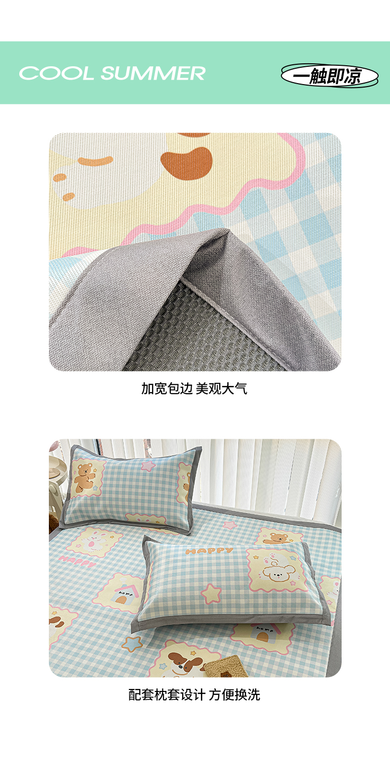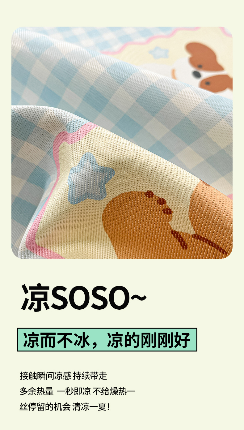 商品名称:川悦生活 2025新款600D立体宽边冰丝印花凉席 趣味Party