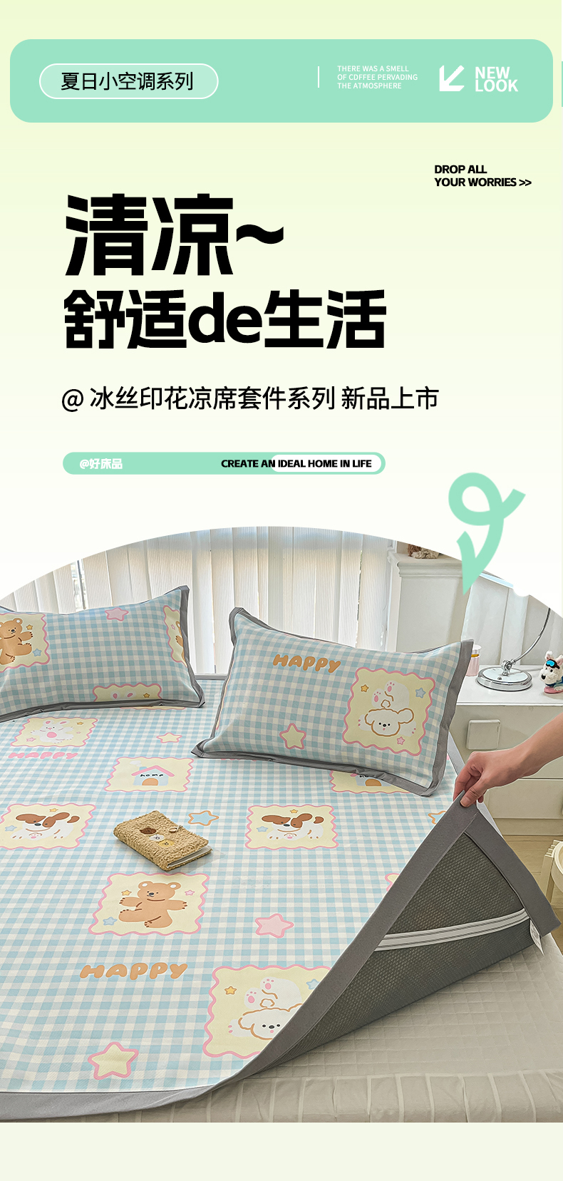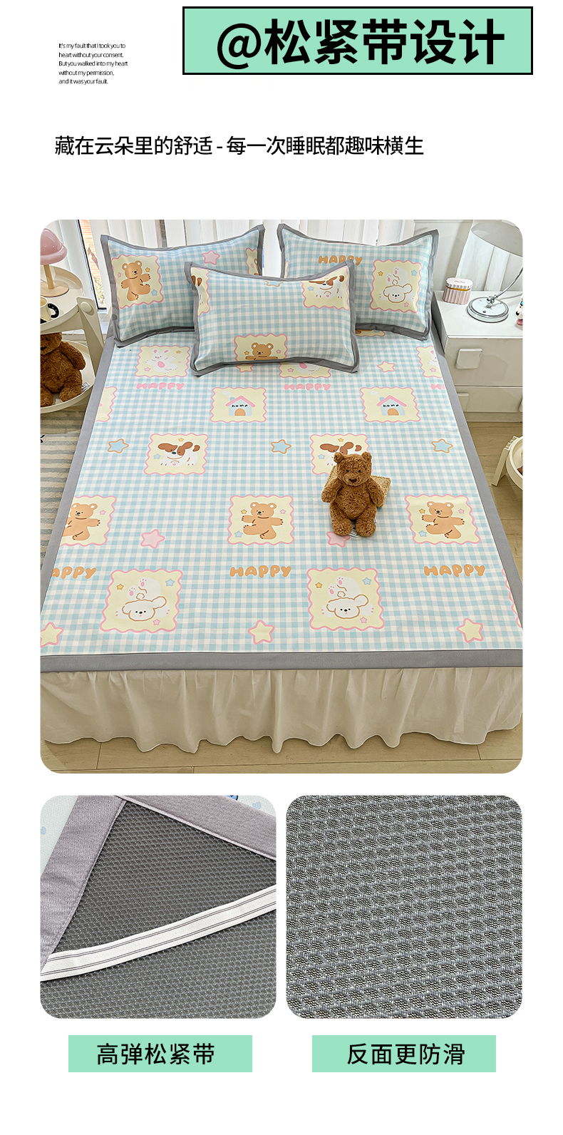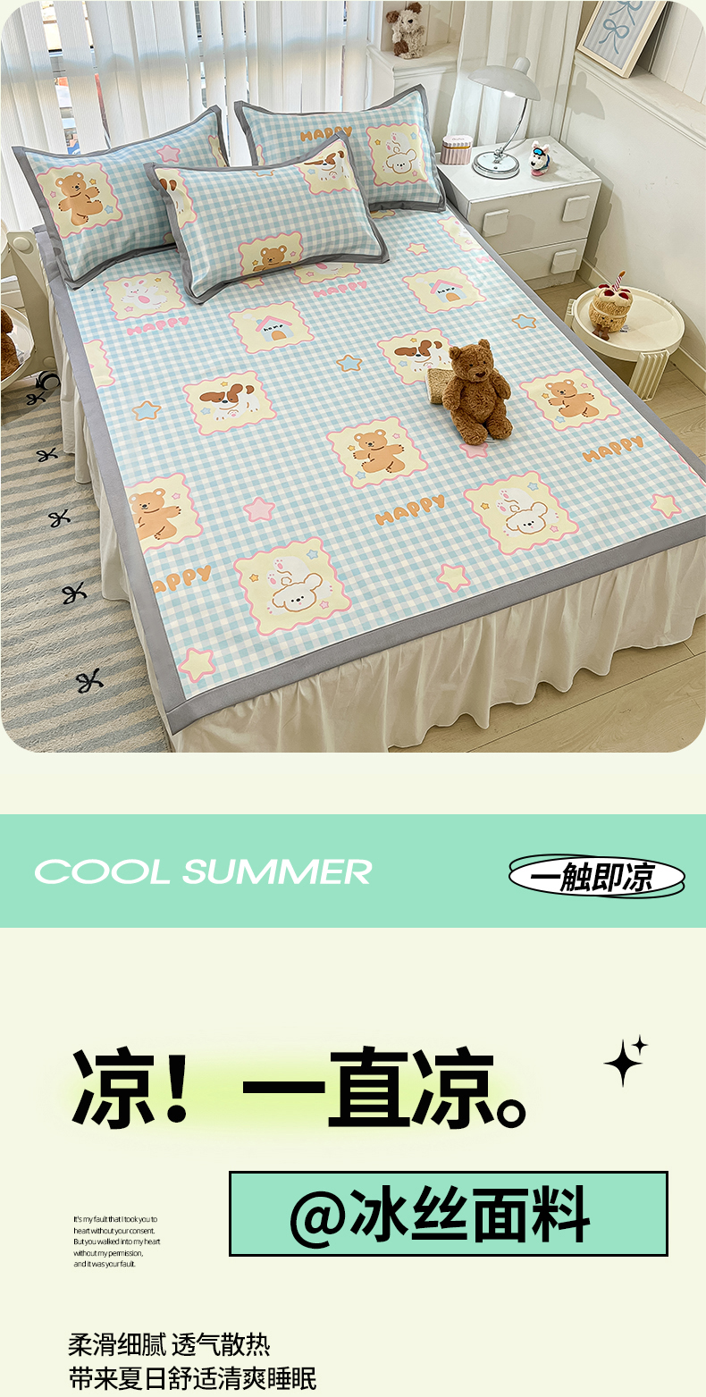 商品名称:川悦生活 2025新款600D立体宽边冰丝印花凉席 趣味Party