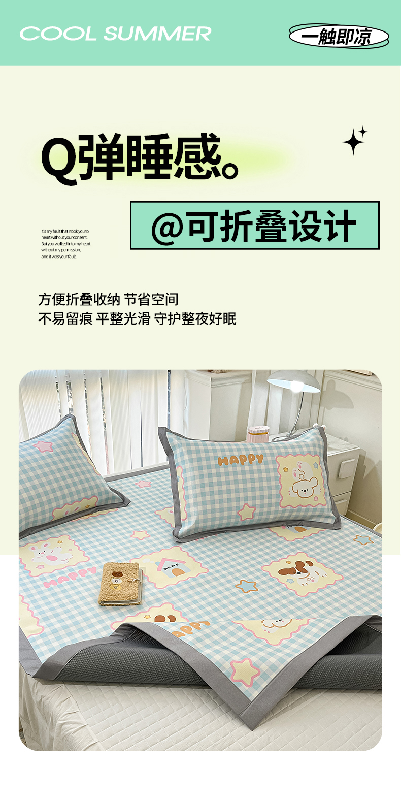 川悦生活 2025新款600D立体宽边冰丝印花凉席 趣味Party