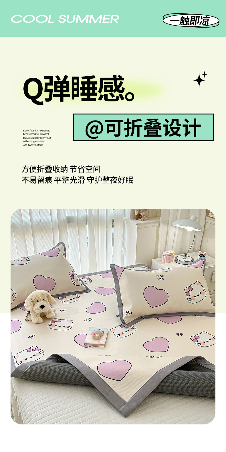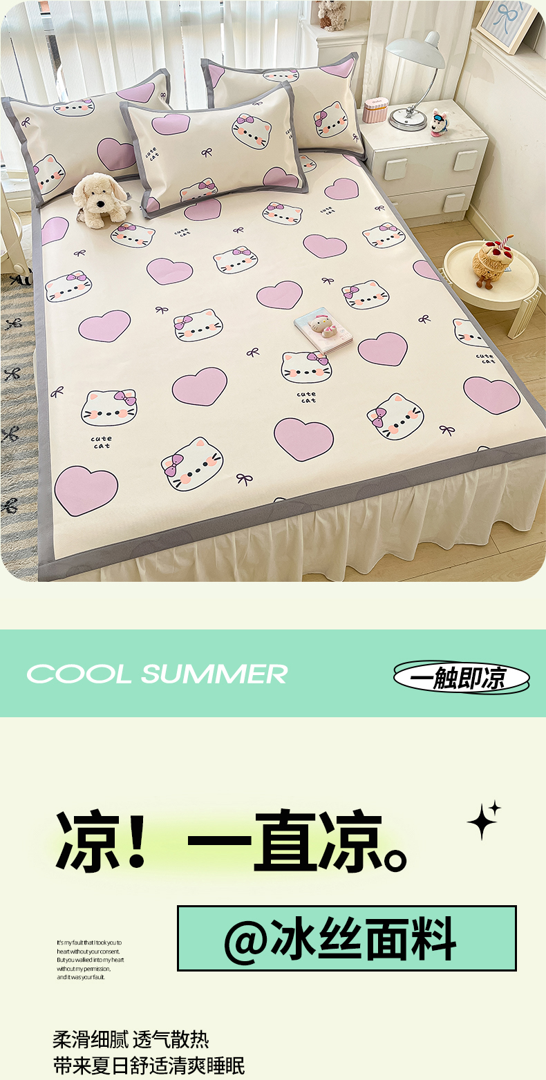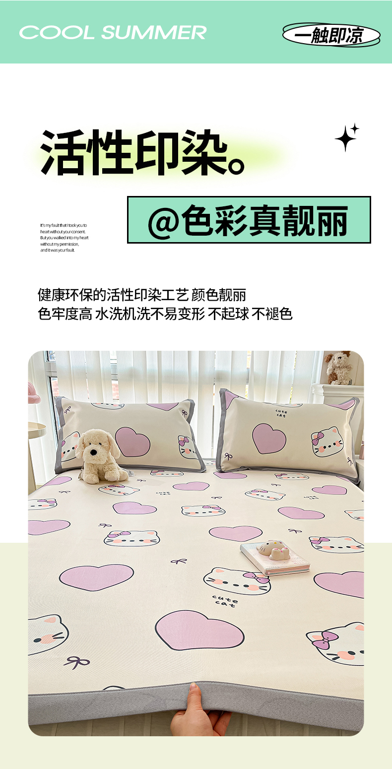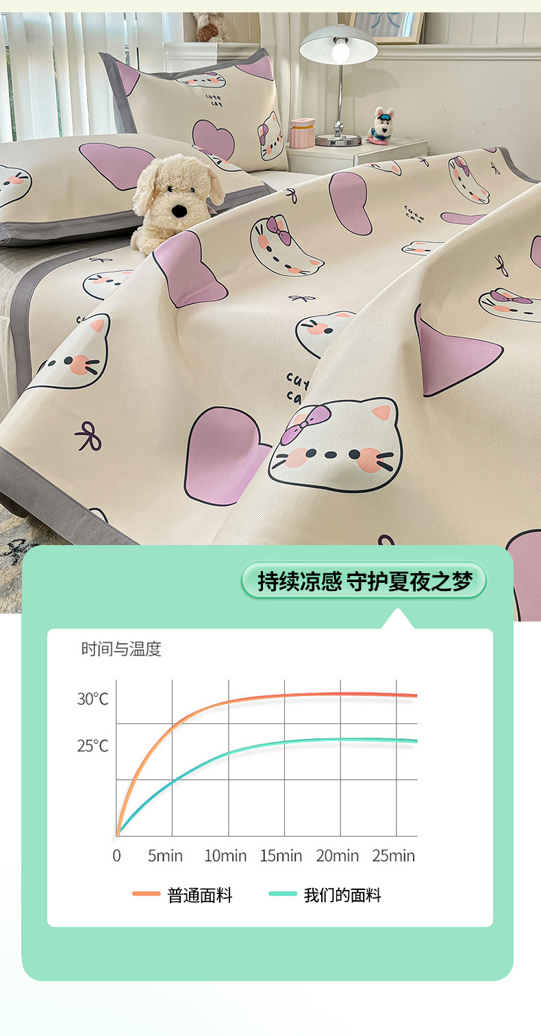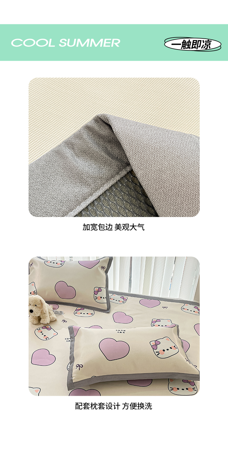 商品名称:川悦生活 2025新款600D立体宽边冰丝印花凉席 晚晚喵喵