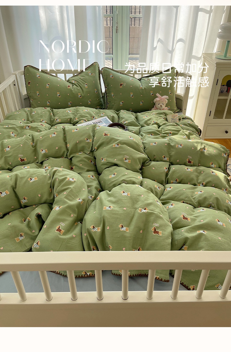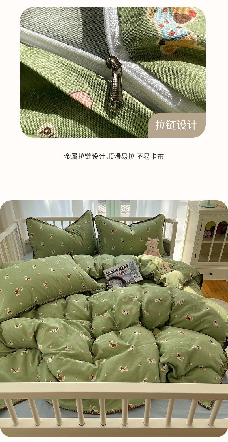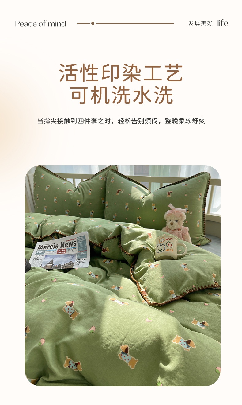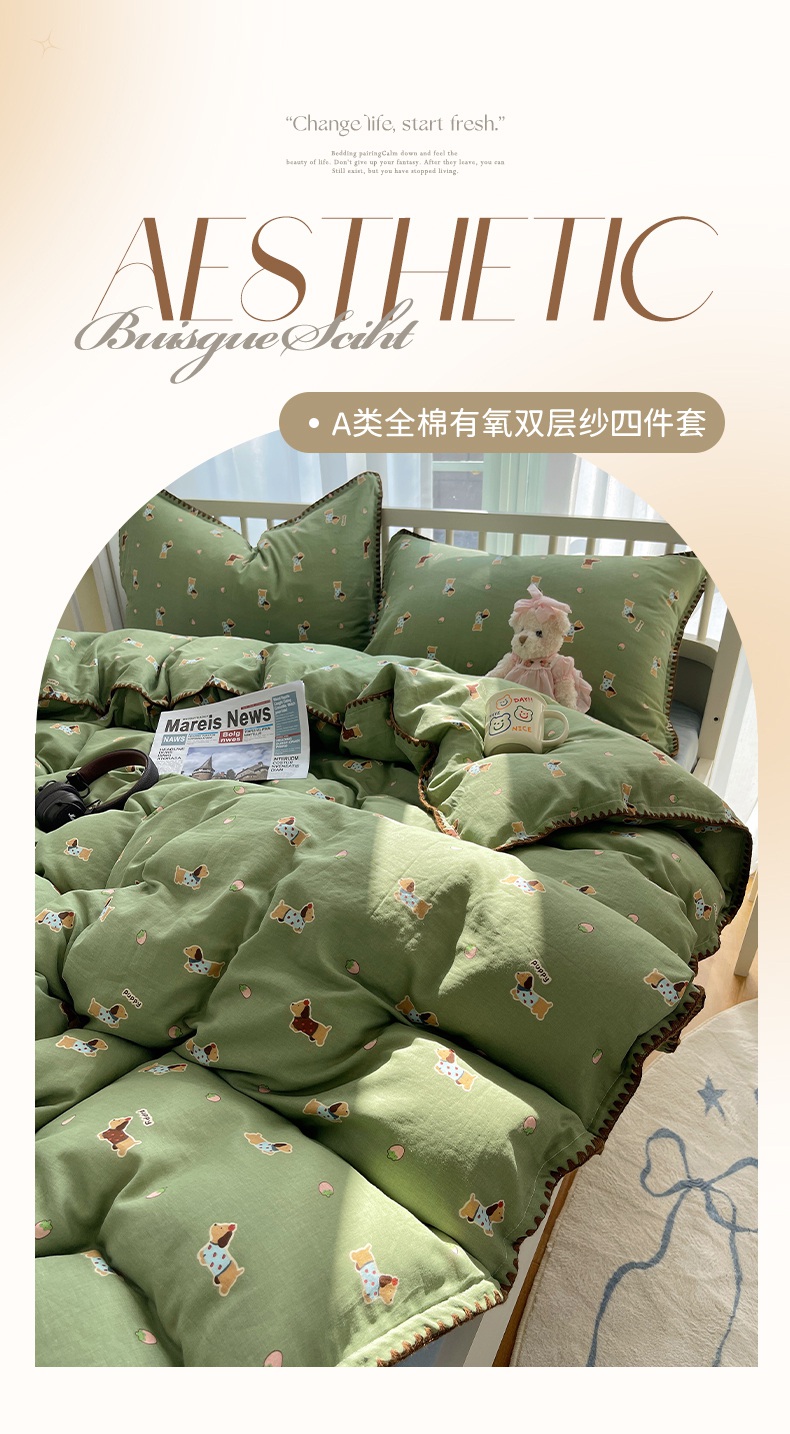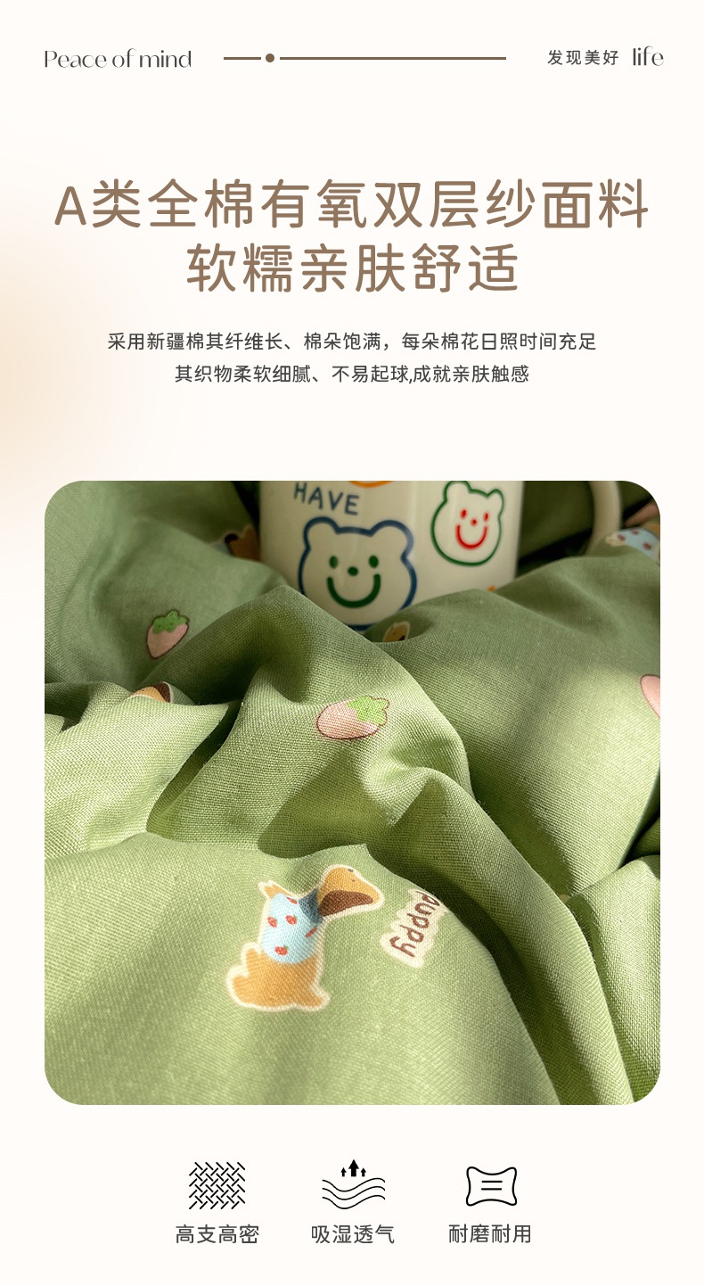 (总)瑞莱 2025夏季新款全棉纯棉有氧双层纱四件套,格子狗(粉),春日女孩,格子狗(蓝),功夫熊猫,何枝小兔,花园小狗,萝莉兔,萌萌狮,梦幻花园兔,少女象(绿),熊孩子,原宿小兔