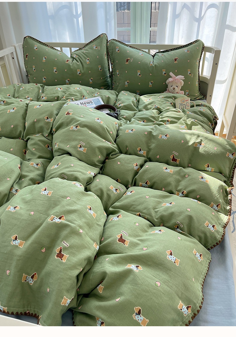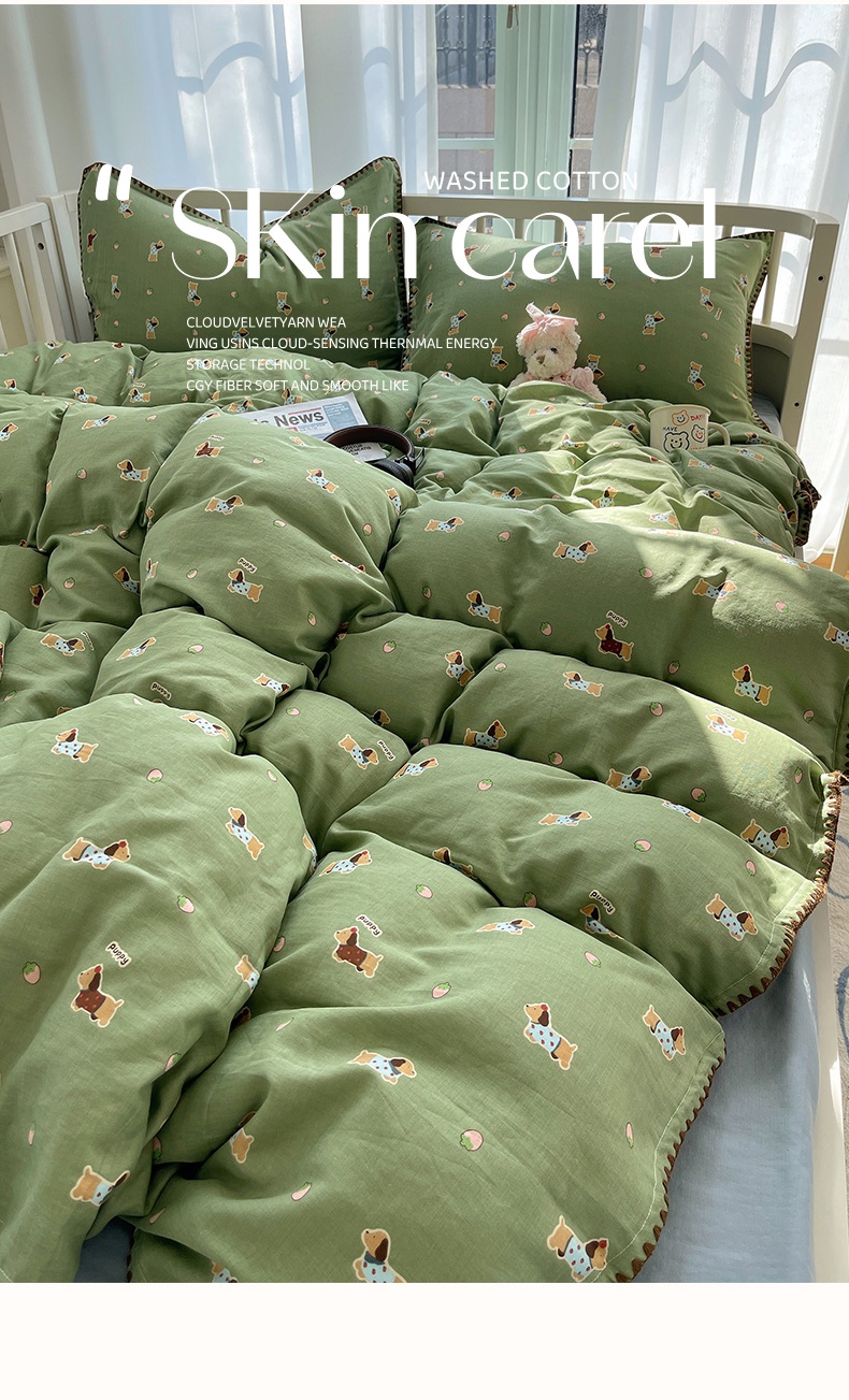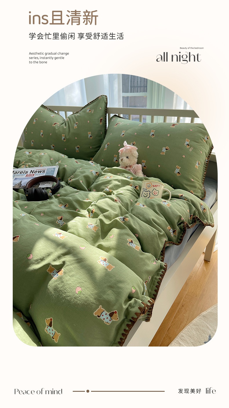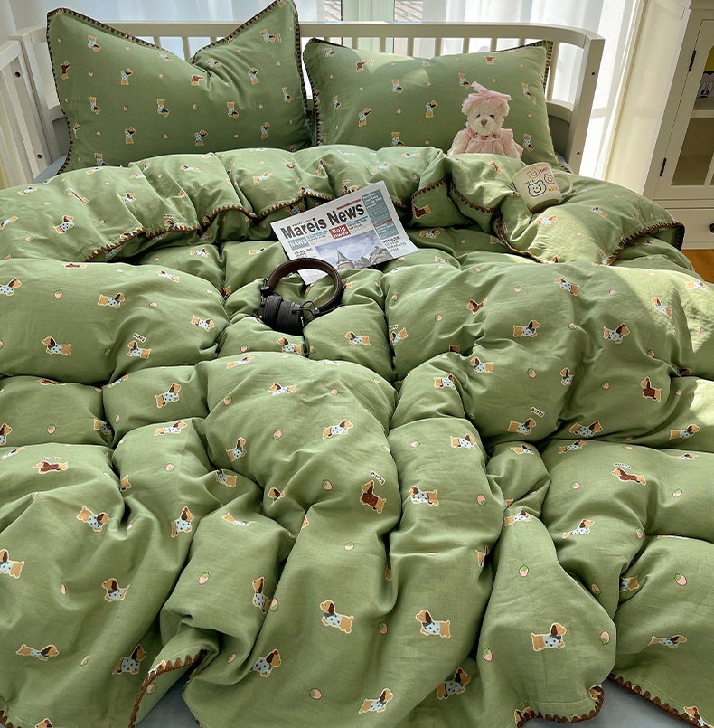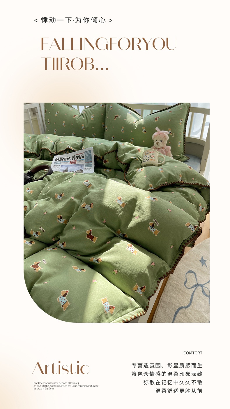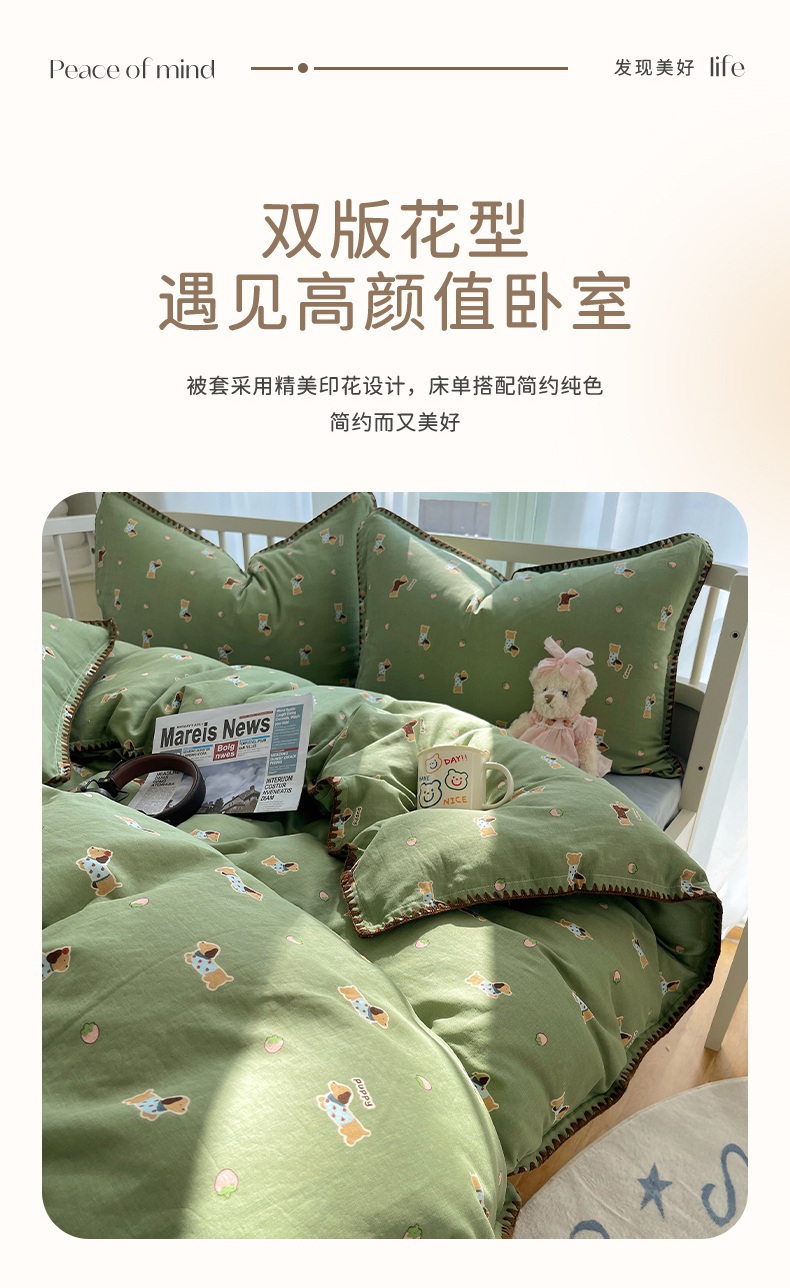 (总)瑞莱 2025夏季新款全棉纯棉有氧双层纱四件套,格子狗(粉),春日女孩,格子狗(蓝),功夫熊猫,何枝小兔,花园小狗,萝莉兔,萌萌狮,梦幻花园兔,少女象(绿),熊孩子,原宿小兔