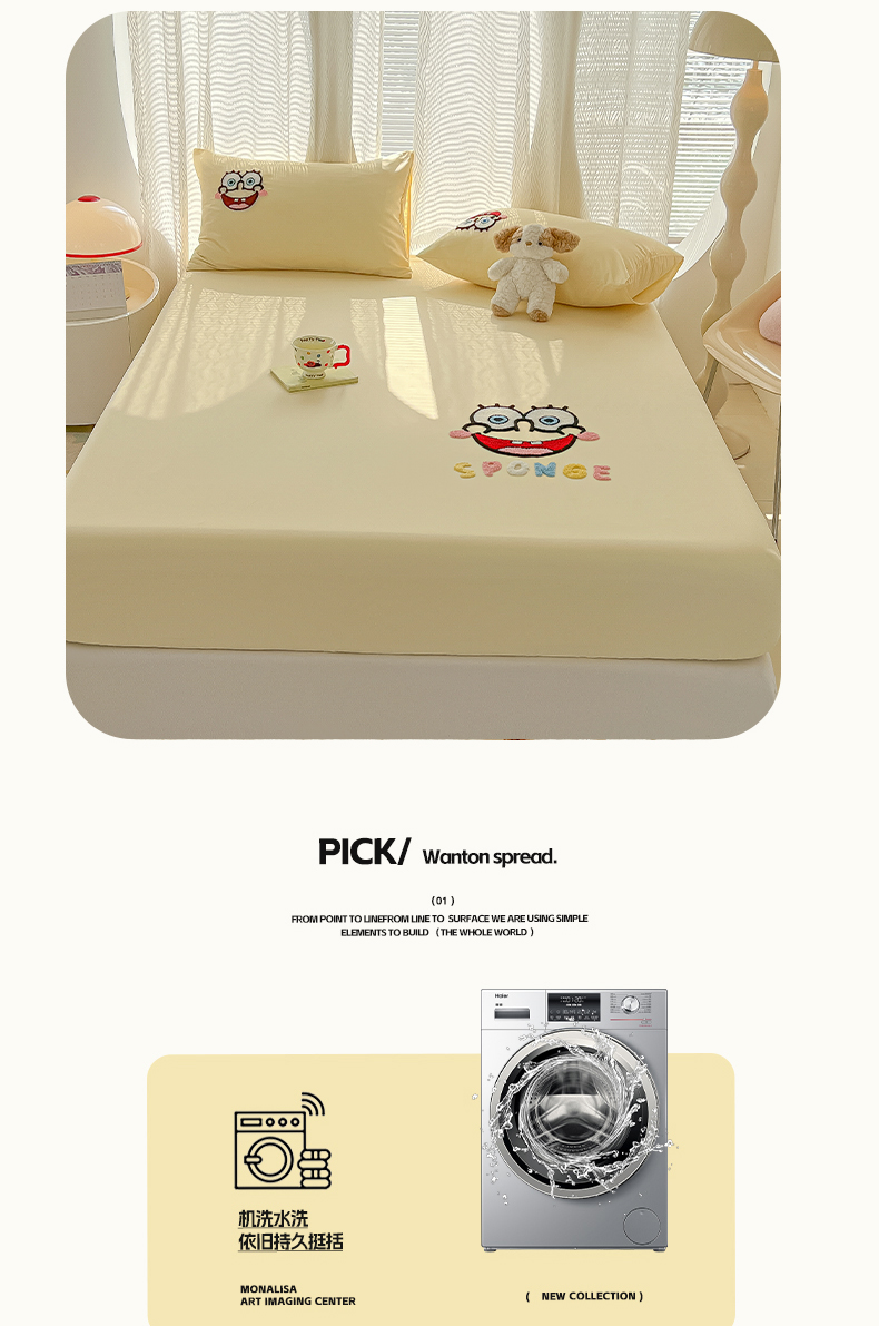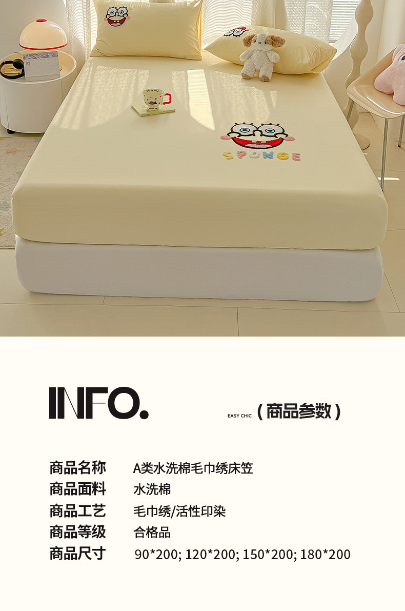 商品名称:(总)眠帛家居 2025新款A类水洗棉卡通毛巾绣单床笠