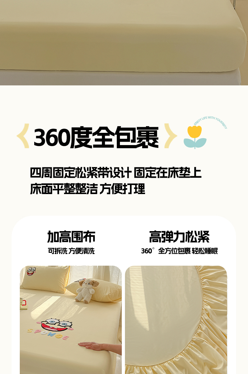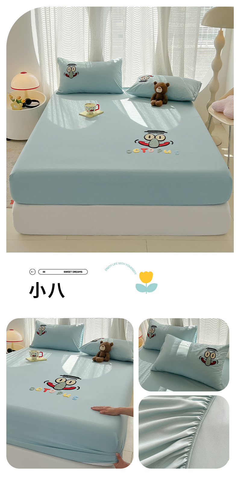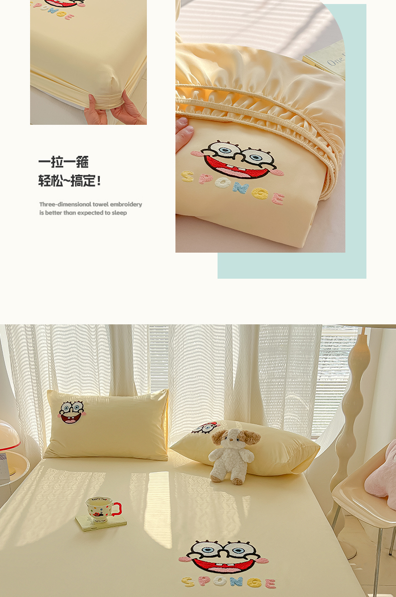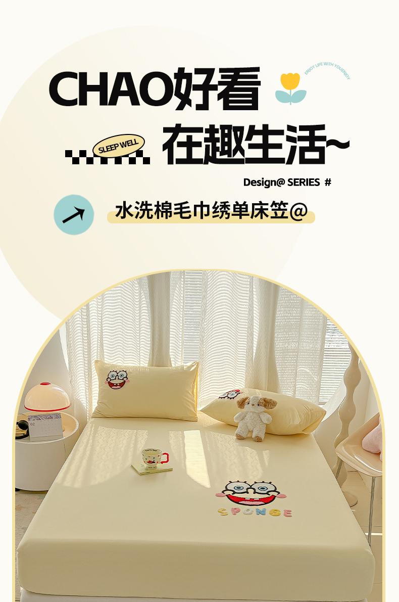 (总)眠帛家居 2025新款A类水洗棉卡通毛巾绣单床笠