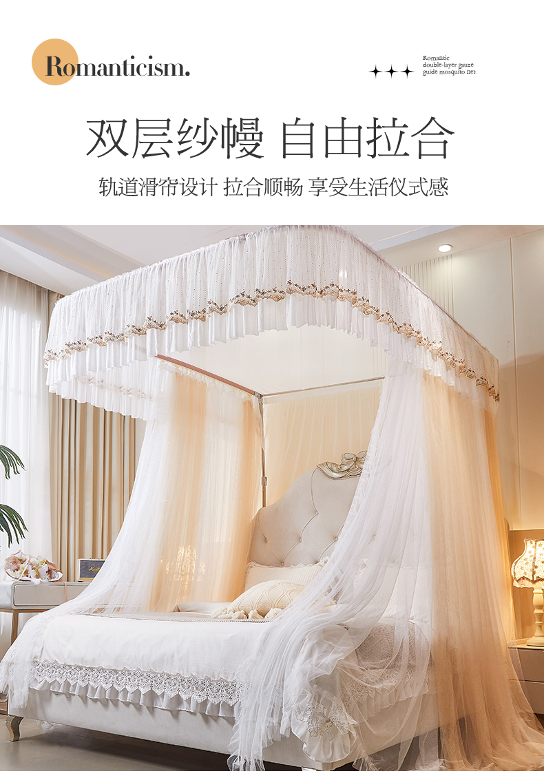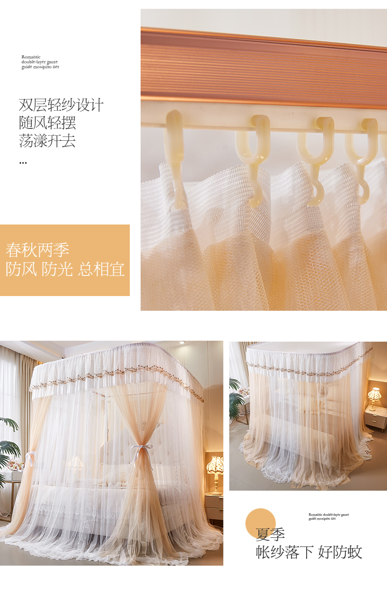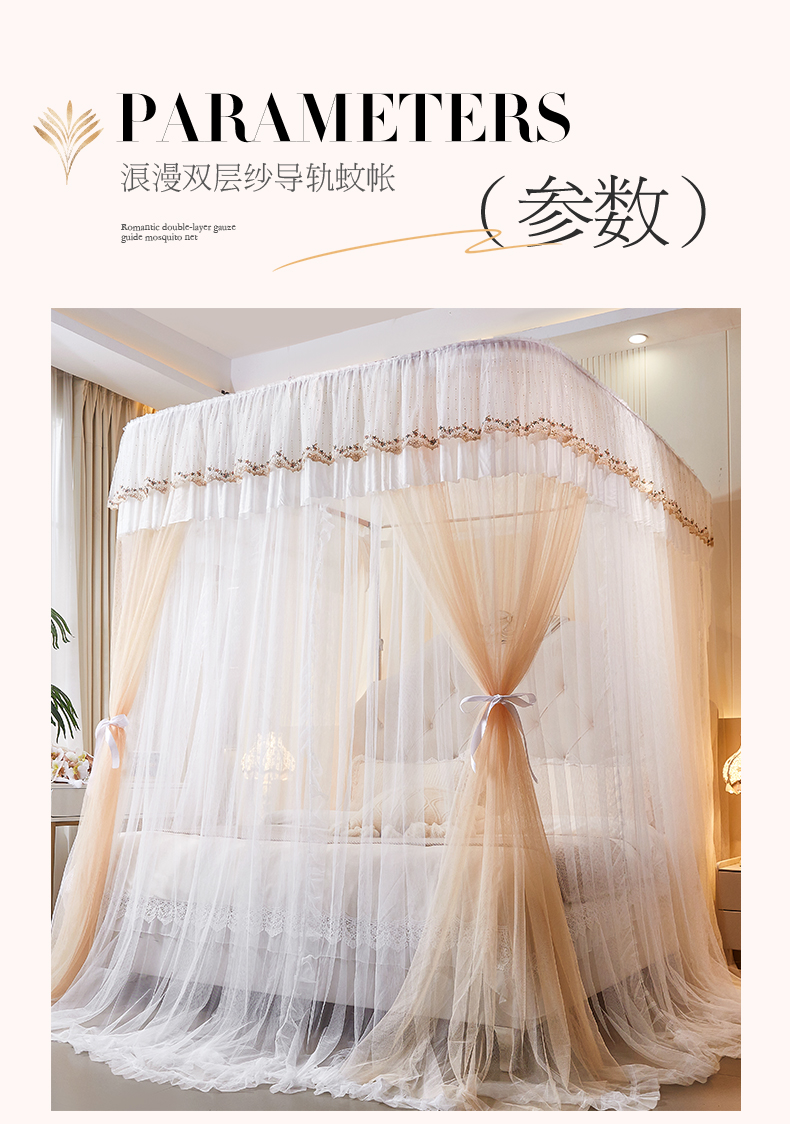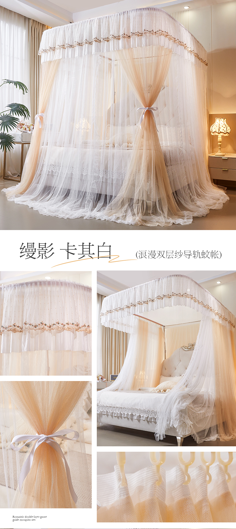 商品名称:艺利轩 2025新款双层纱导轨蚊帐 缦影 卡其白