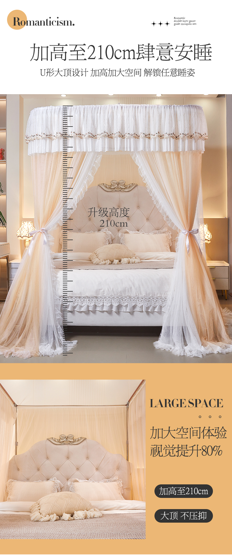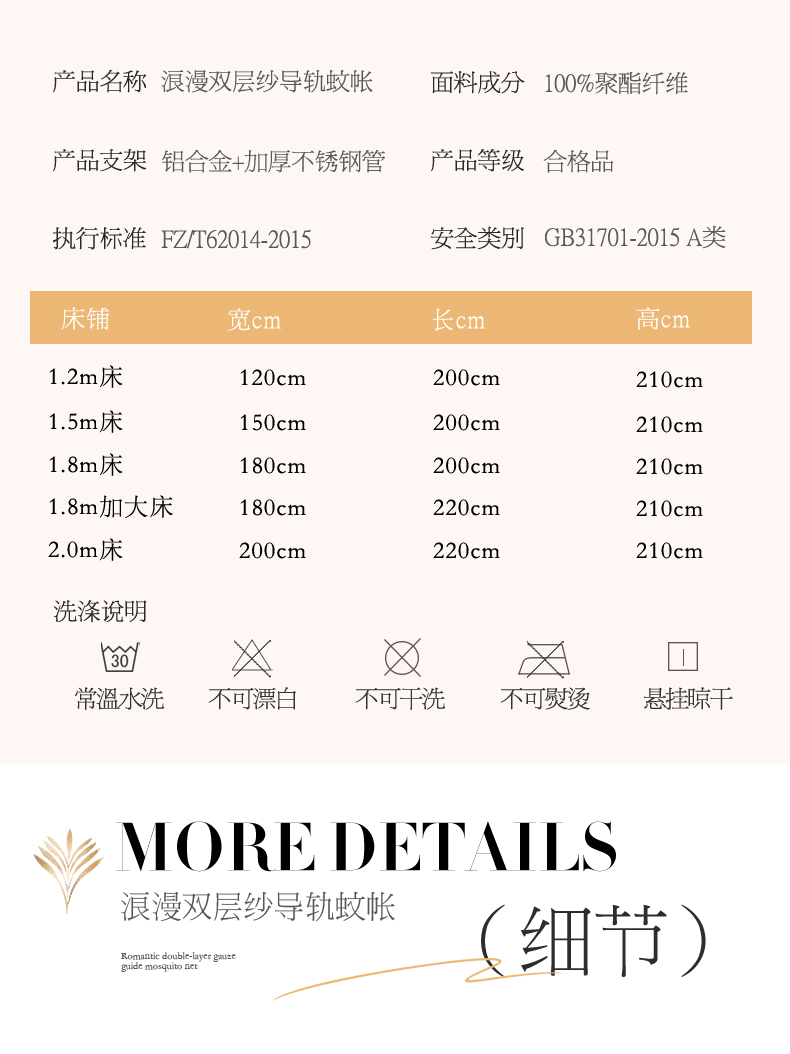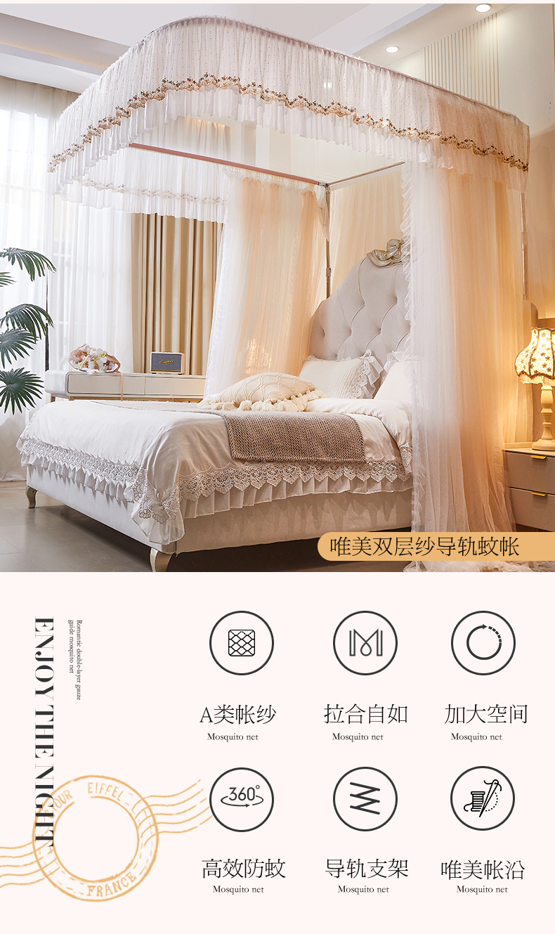 商品名称:艺利轩 2025新款双层纱导轨蚊帐 缦影 卡其白