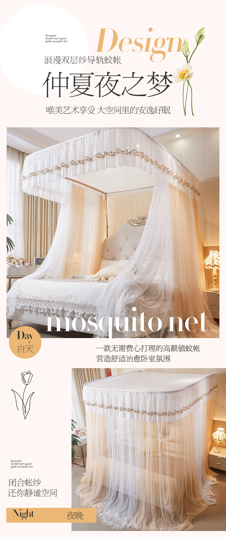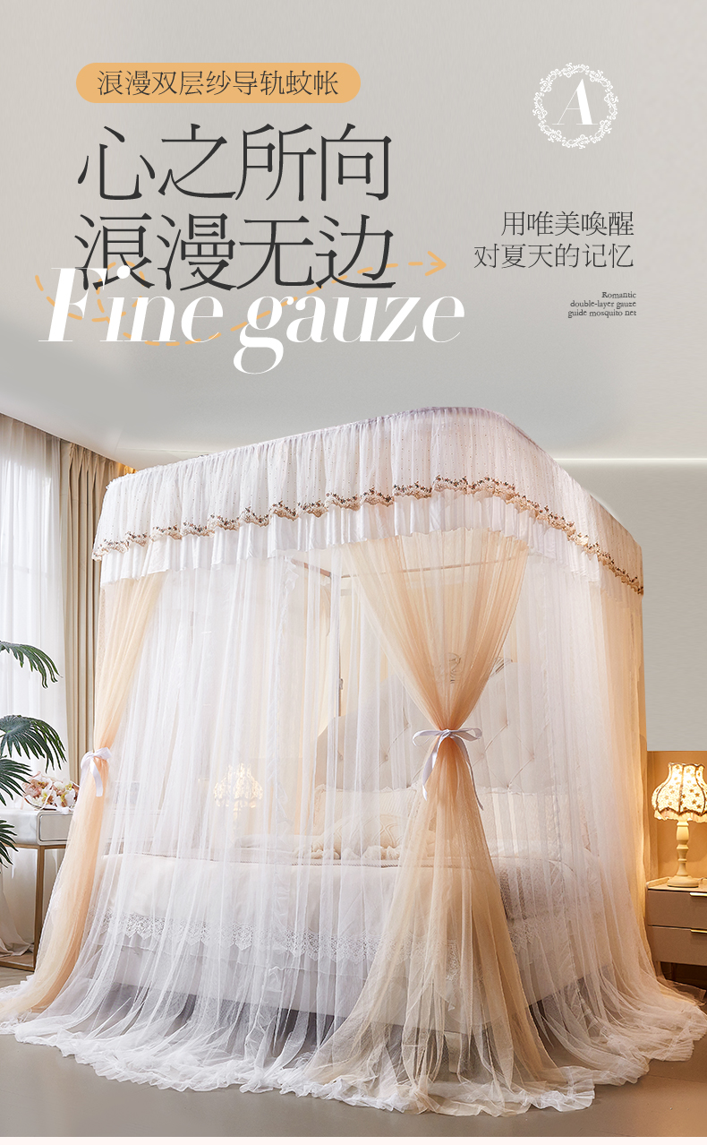 (总)艺利轩 2025新款双层纱导轨蚊帐,缦影 卡其白,缦影 抹茶白,缦影 雾蓝白,缦影 樱花粉白,缦影 云朵白