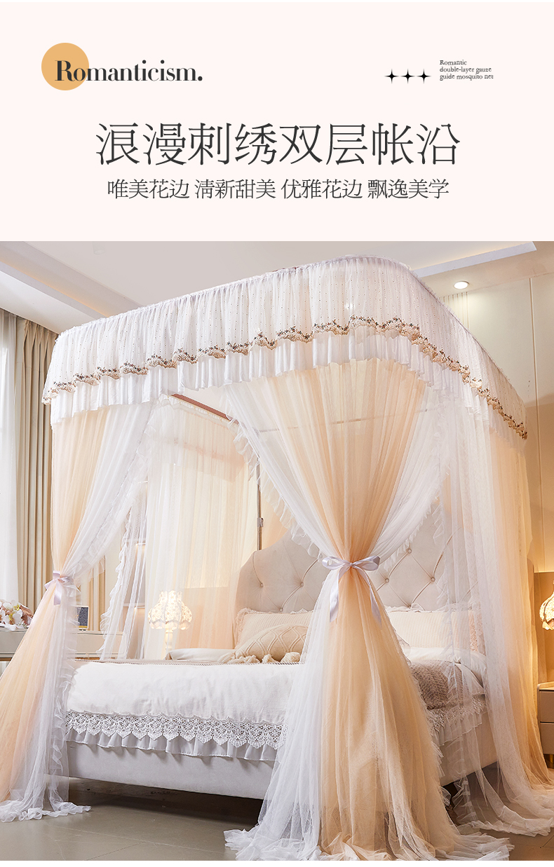 (总)艺利轩蚊帐 2025新款刺绣加柔加密可升降升级轨道蚊帐-烤漆铁接口轨道支架,罗曼 暖肤,罗曼 果绿,罗曼 洁白,罗曼 浅黄,罗曼 雅兰,罗曼 香玉