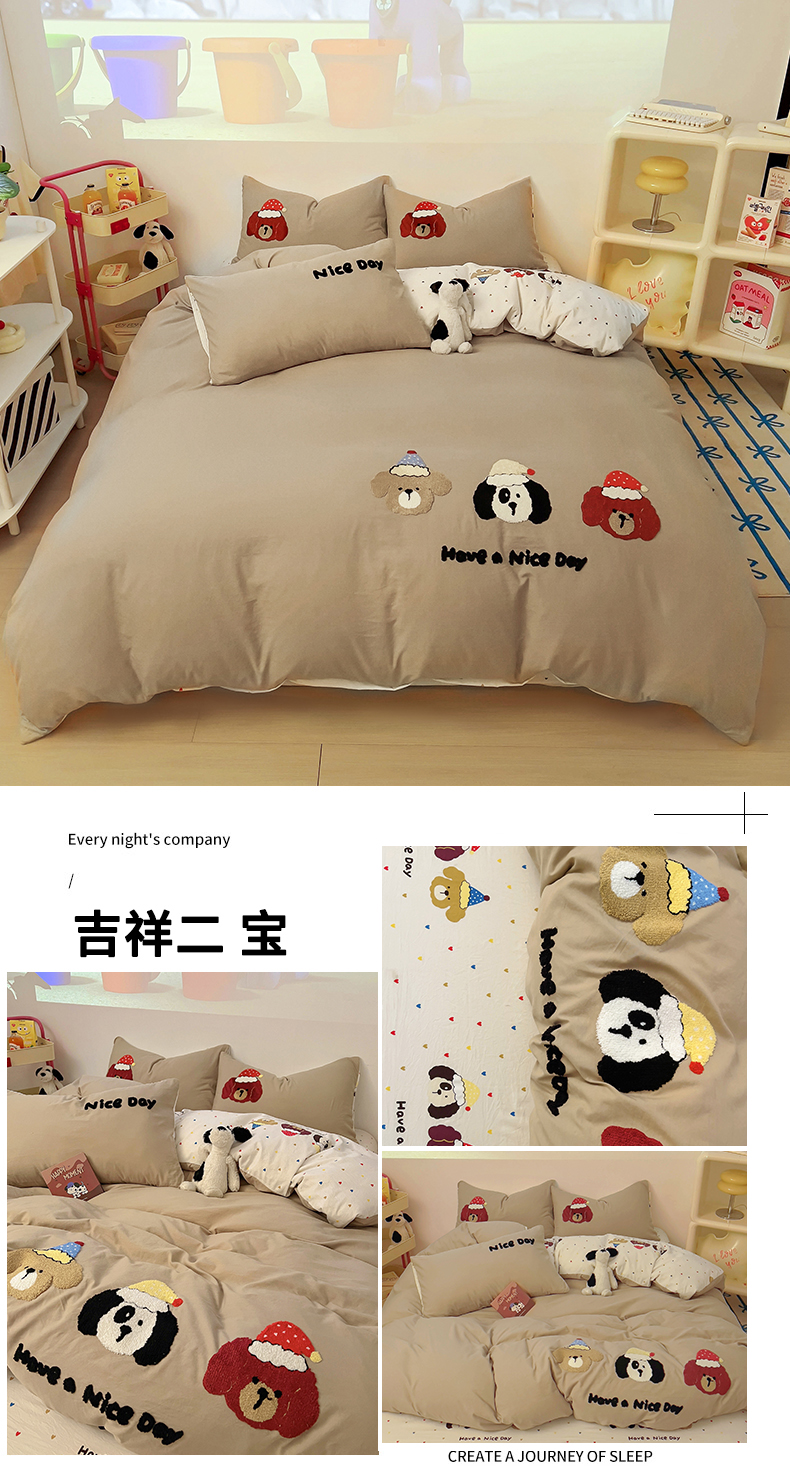 当前位置: 91家纺网 > 商品网购 > 床品套件 > 四件套 > 毛巾绣四件套 > 易辰美家纺2025新款超柔水洗棉印花毛巾绣四件套 吉祥三宝