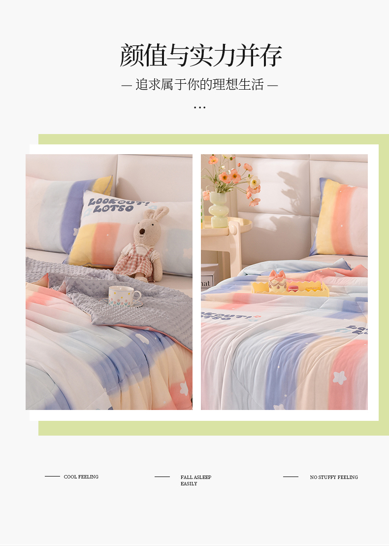 商品名称:经年 2025新款A类凉感丝豆豆夏被 彩虹语
