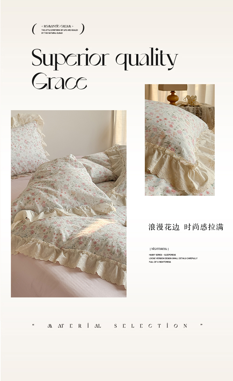 (总)塔塔 2025新款法式田园全棉针织棉花边印花夏被,花奈,假日,洛可可,漫恋,木槿,浅汐,小樱桃,洋兰