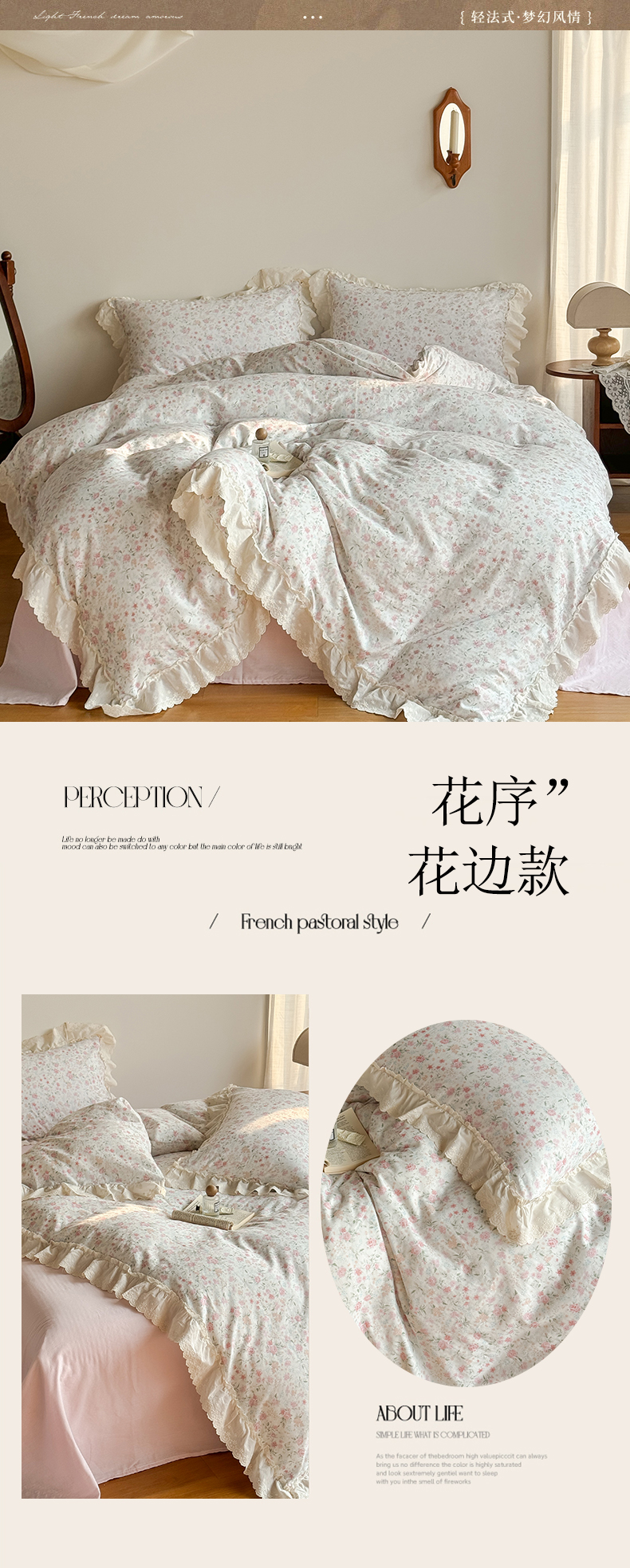 商品名称:TT.one 塔塔家居 2025新款全棉双层纱镂空立体花边系列 花边款·花序
