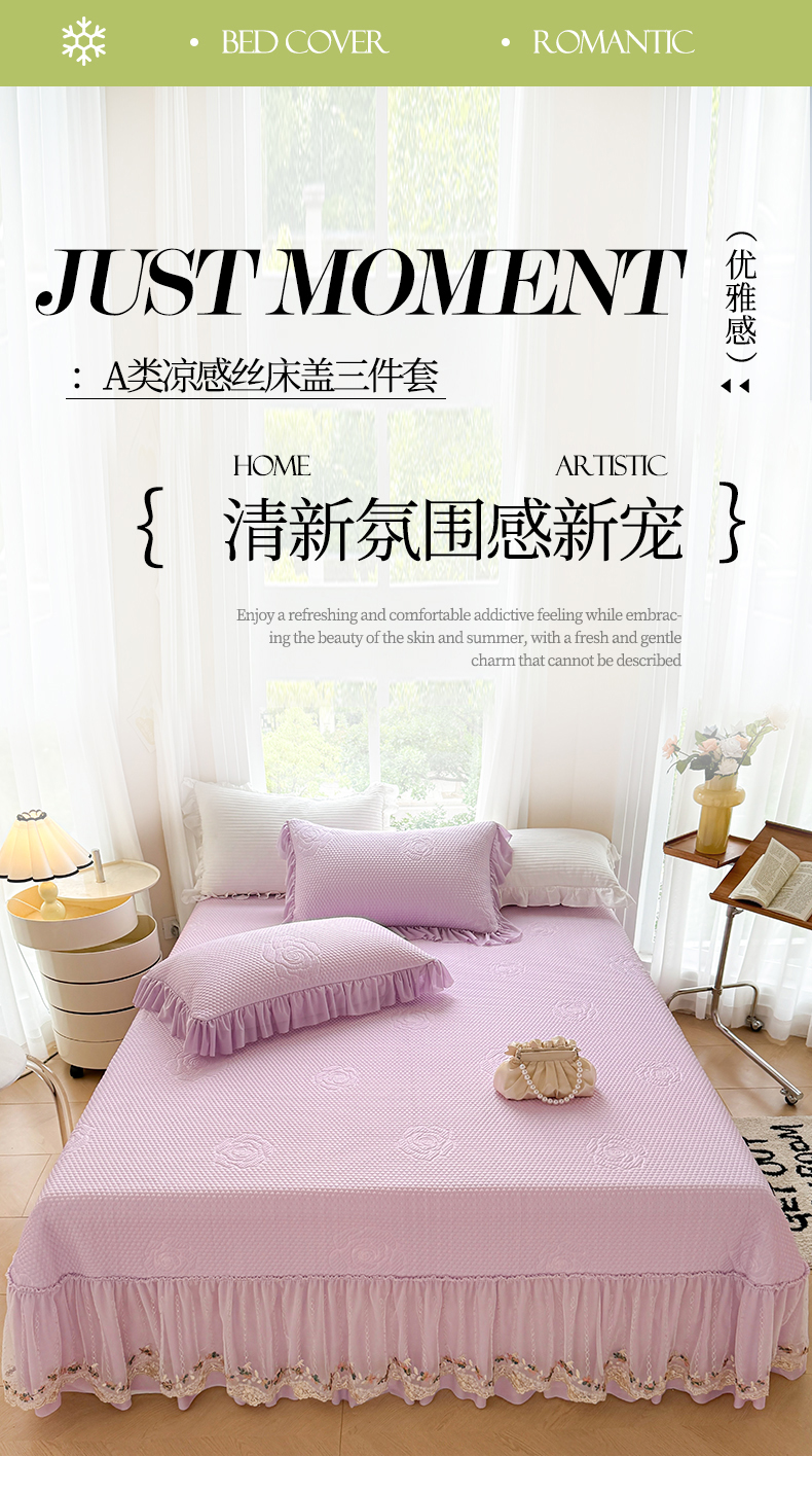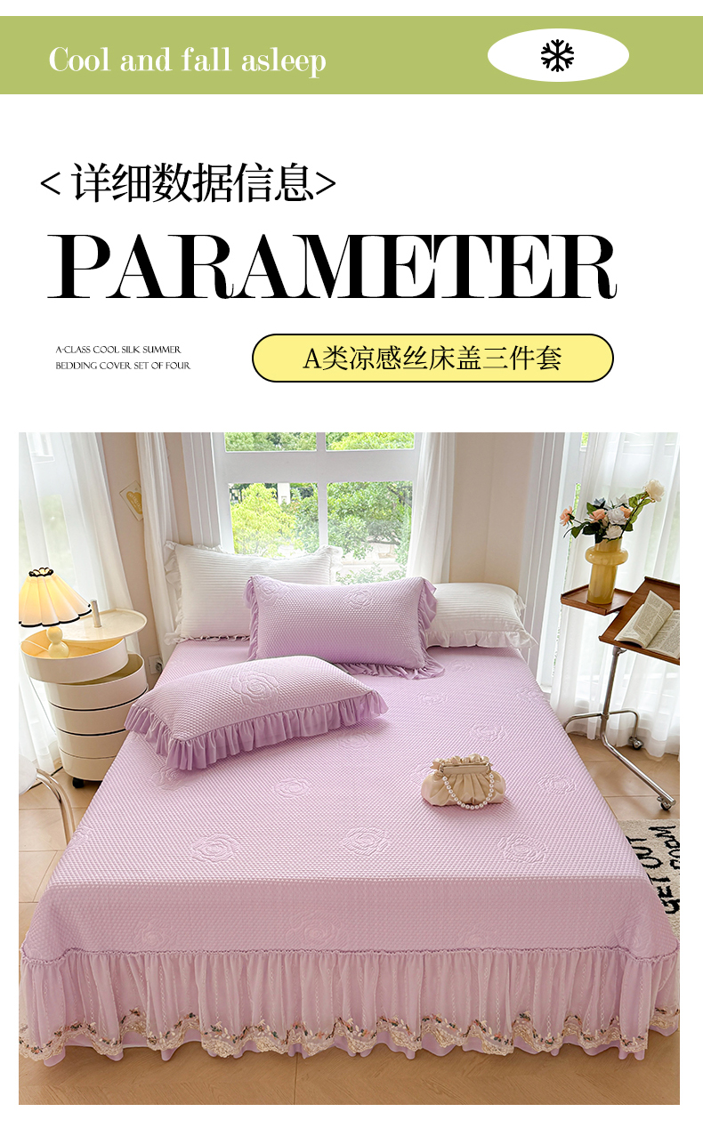 商品名称:恒爱家纺 2025新款冰丝国色天香床盖三件套 优雅紫